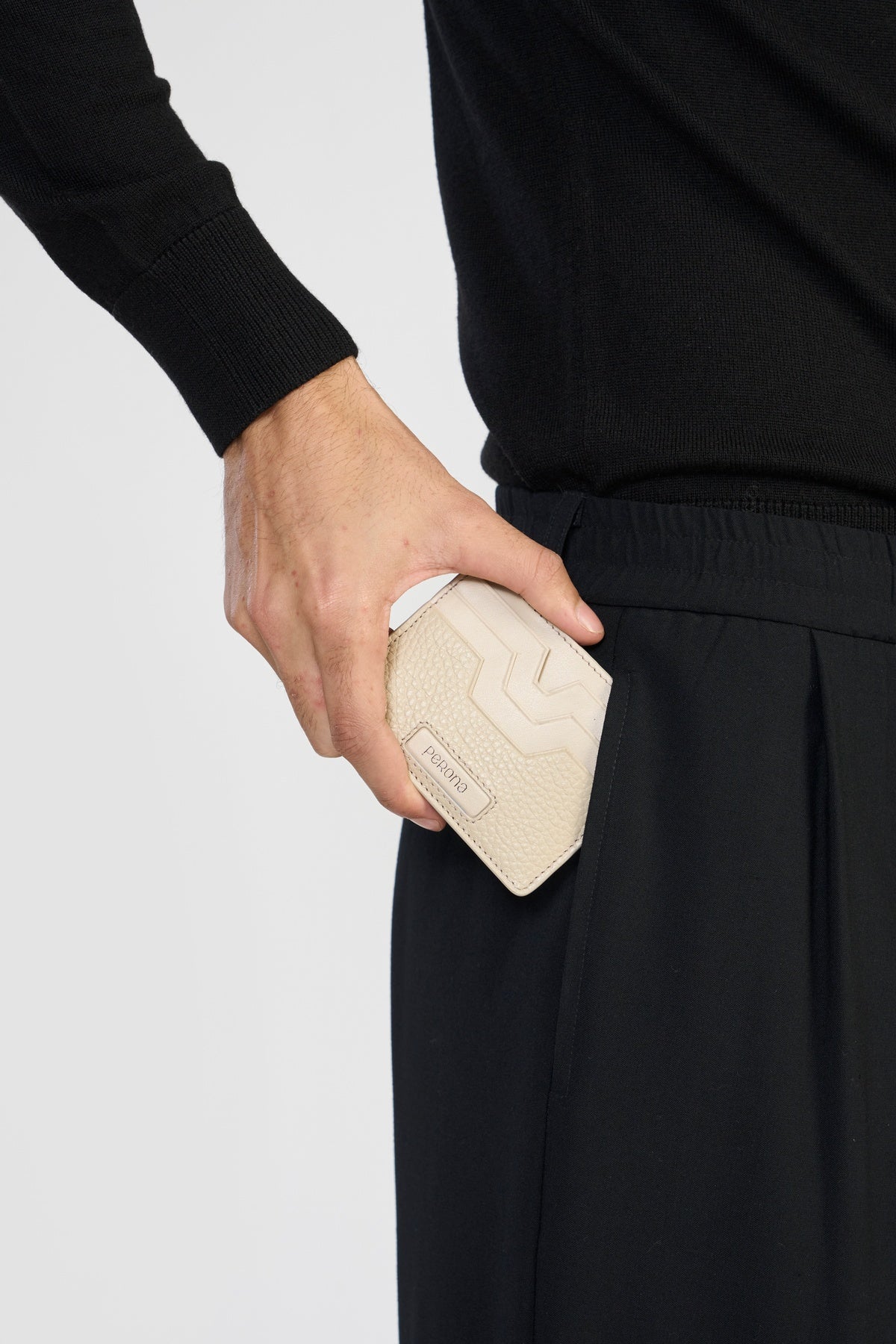 Crafted from premium textured leather, this compact card holder combines elegance with everyday functionality. The modern beige tone, enhanced with sleek geometric embossing, makes it a refined choice for professionals. Designed with multiple card slots, it keeps your essentials organized while maintaining a slim silhouette. Finished with a polished Perona metal logo plate, it’s the perfect blend of sophistication and practicality.