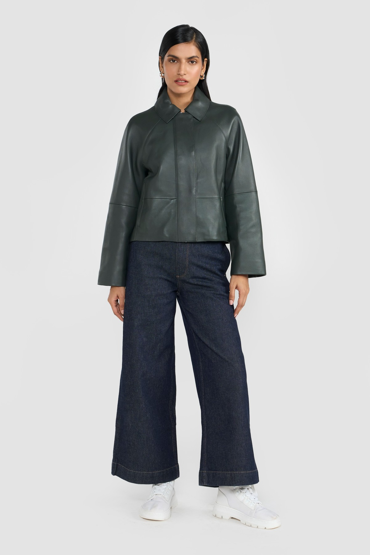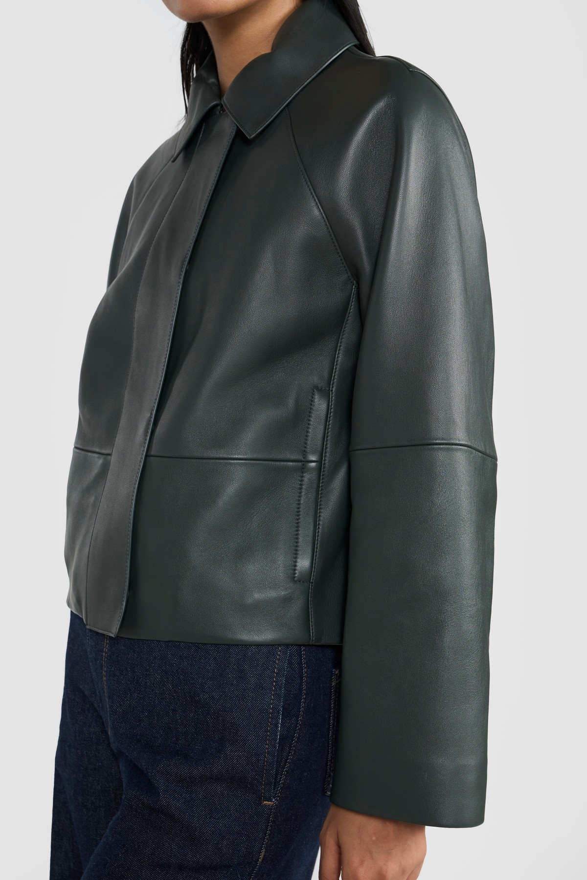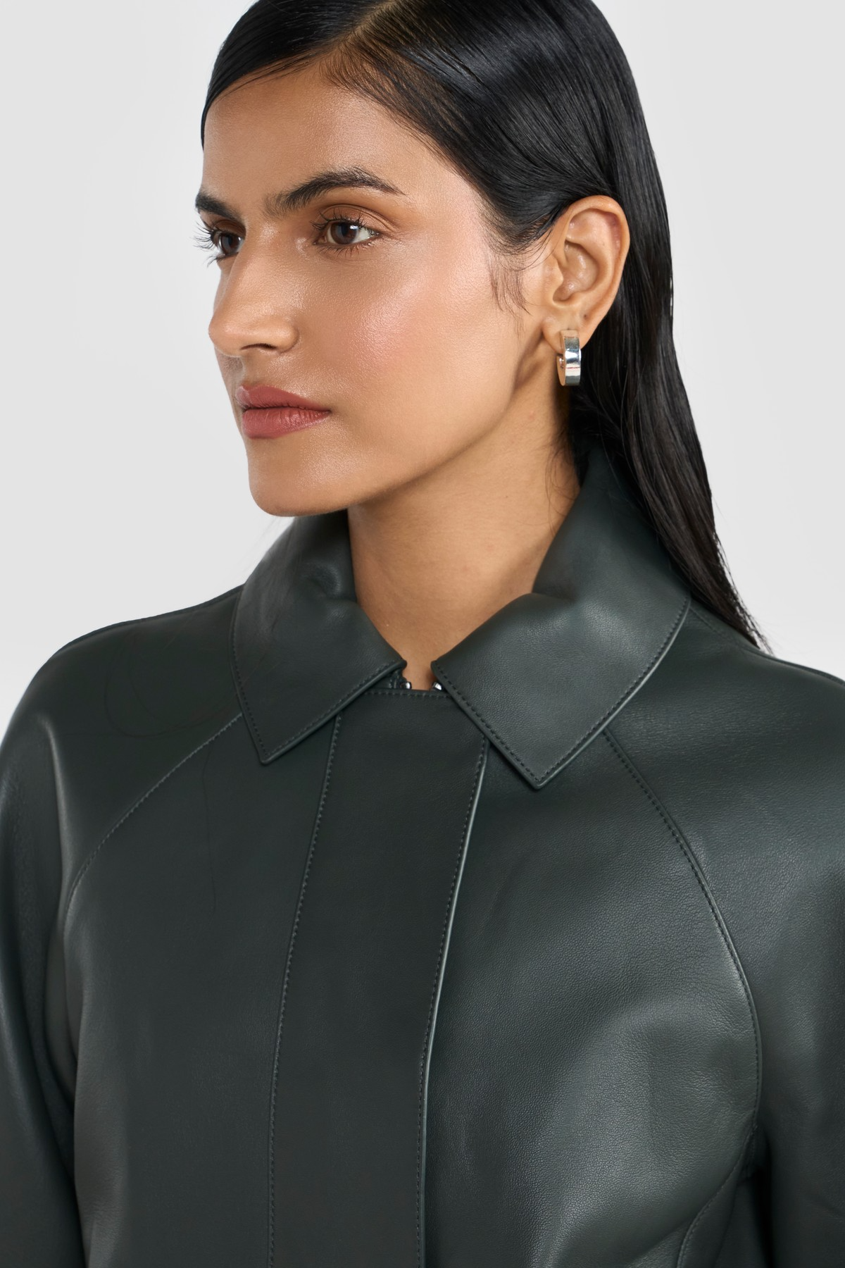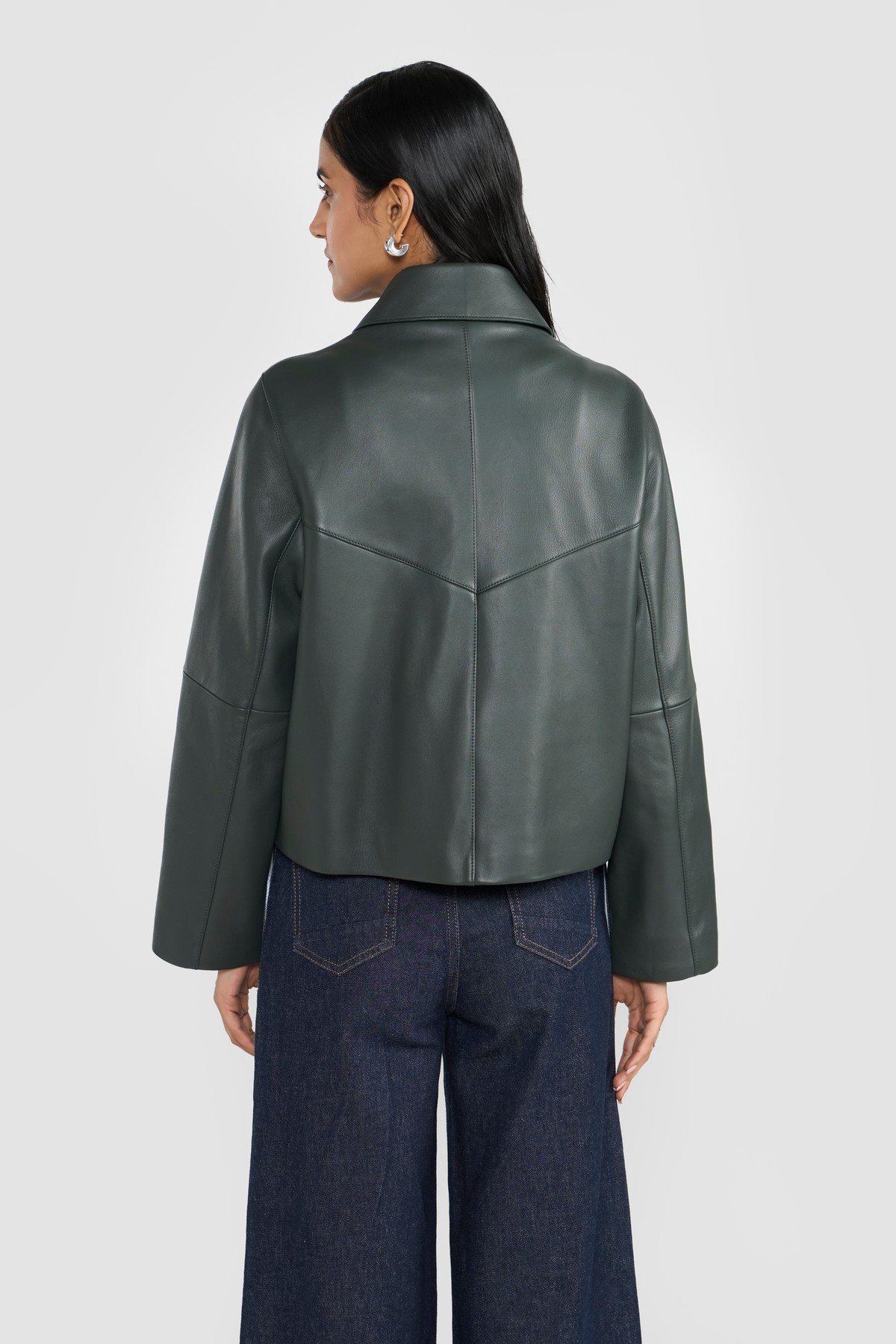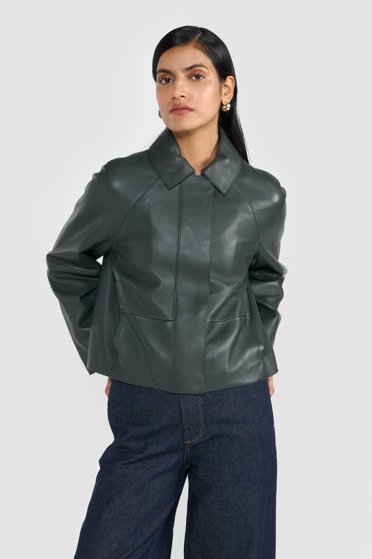 This statementjacket is elevated with fine grain exclusive leather, tailored silhouette, functional slip in pockets and zipper closure secured with snap buttons. The ingenious construction lends lightness and elegance to the style and maximizes comfort. Crafted from LWG certified premium nappa leather.