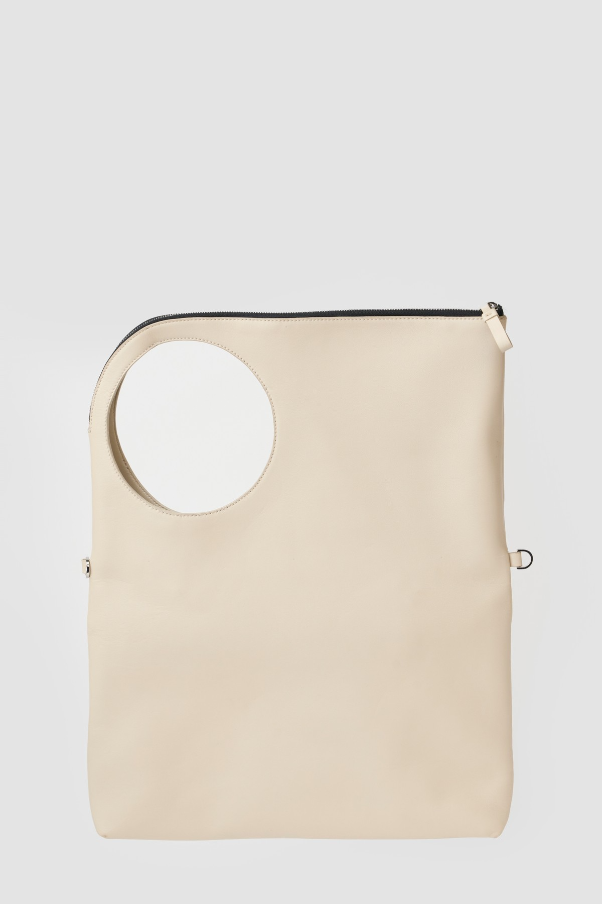 Defined by sculpted circular handles carved from the body and a clean, minimalist silhouette, this design reimagines modern versatility. Both statement and essential, the bag transitions effortlessly across occasions — with extra room for essential, it transforms from a tote, to cross-body bag into a clutch, from refined evenings to casual moments. Designed for daily ease, the spacious main compartment accommodates all your necessities, while the signature dual straps allow for multiple carry options — by hand, over the shoulder, or slipped over your luggage handle.