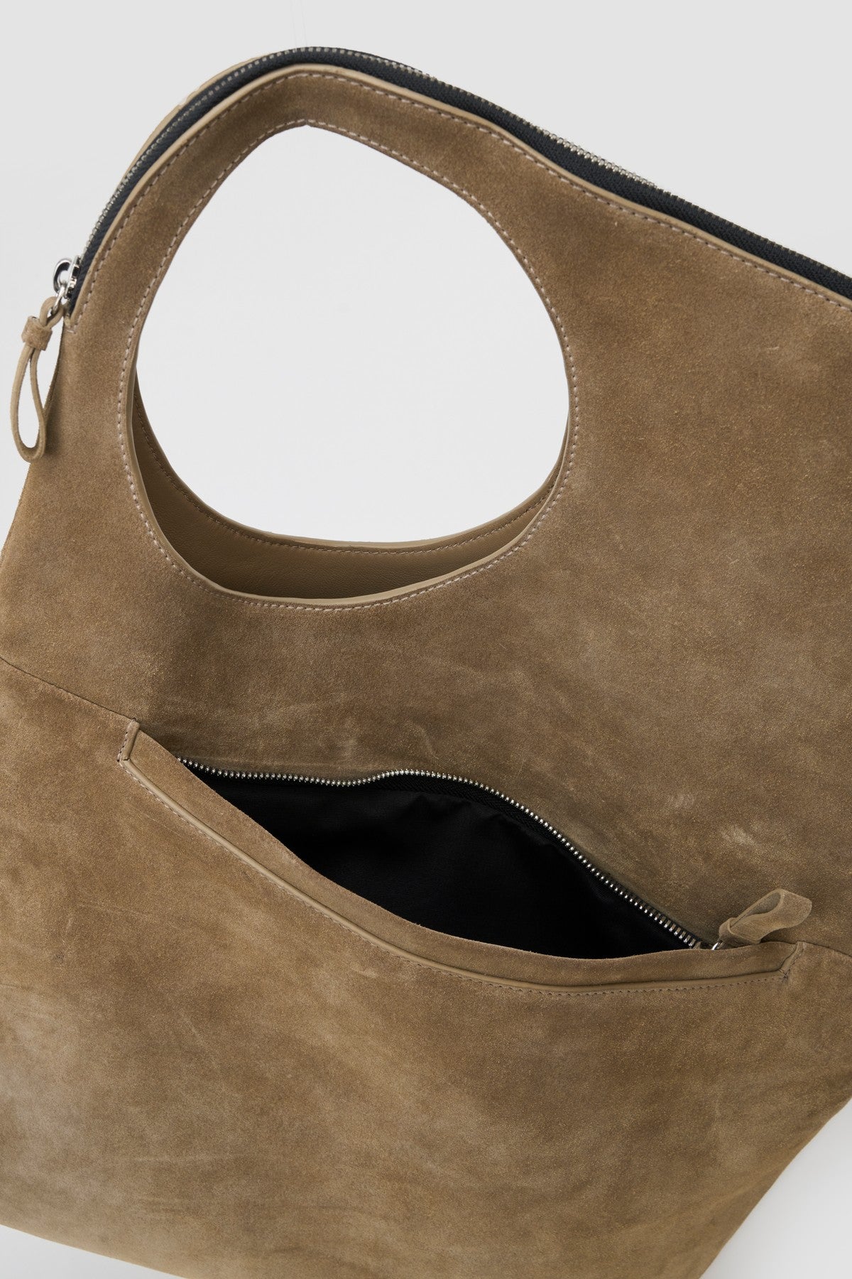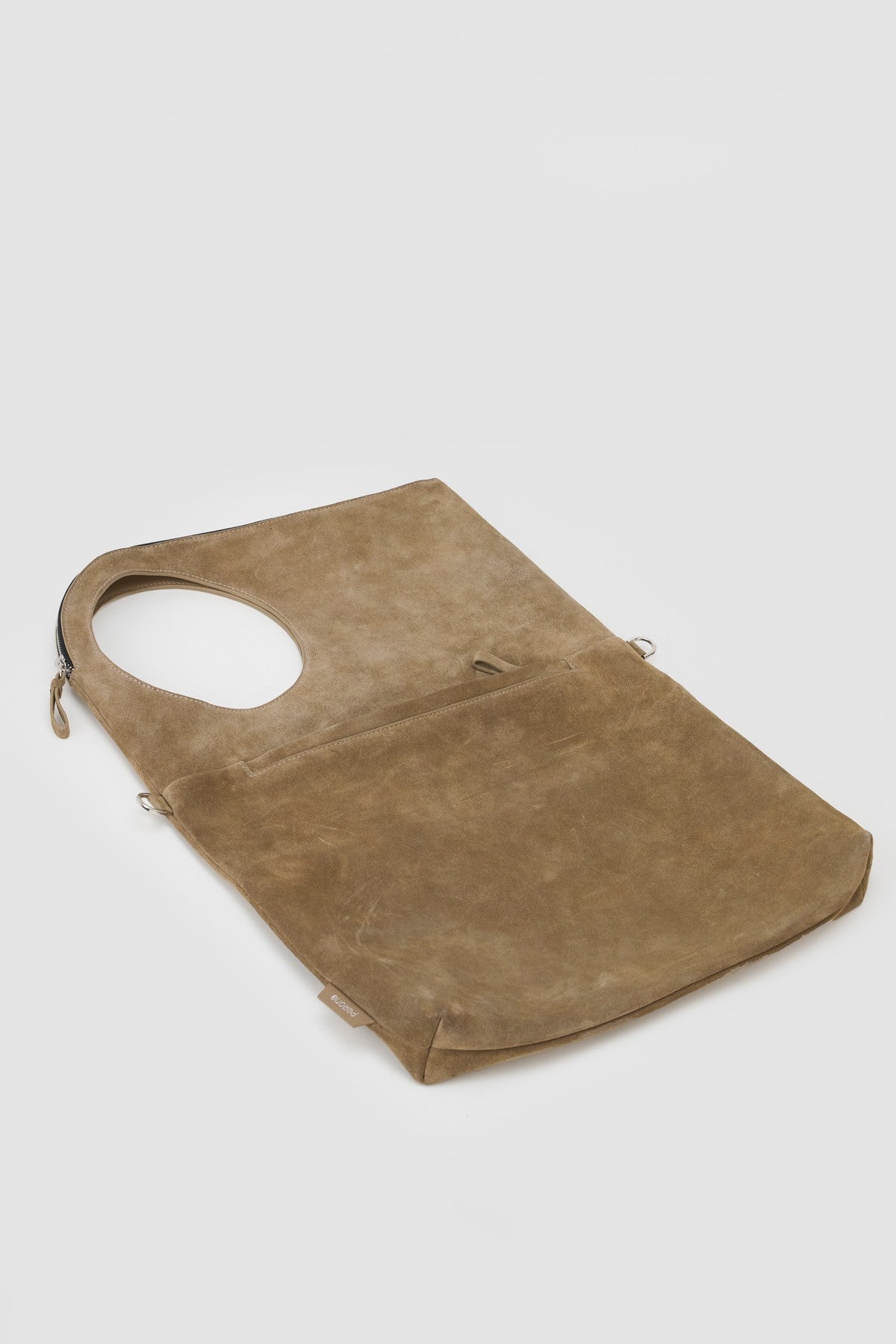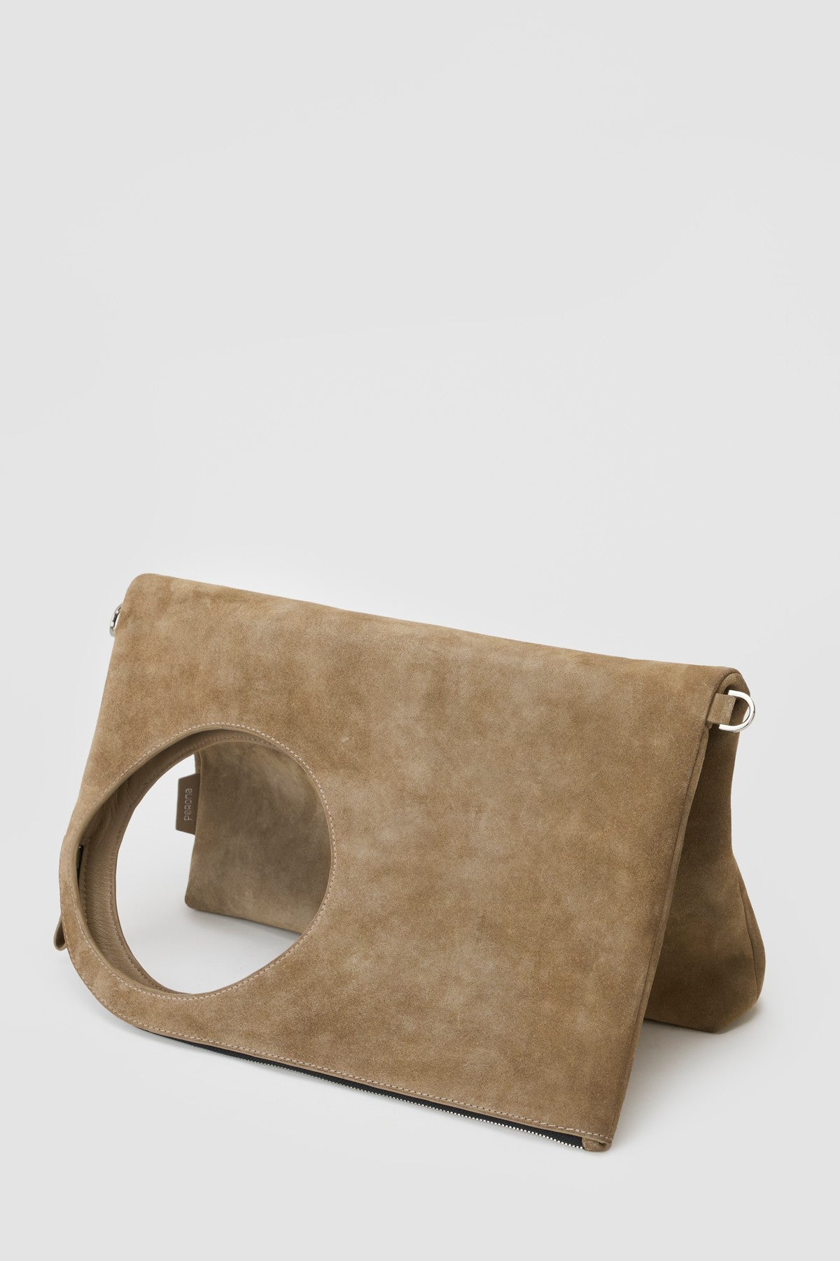 Defined by sculpted circular handles carved from the body and a clean, minimalist silhouette, this design reimagines modern versatility. Both statement and essential, the bag transitions effortlessly across occasions—with extra room for essentials, it transforms from a shoulder bag to a crossbody bag into a clutch, from refined evenings to casual moments. Designed for daily ease, the spacious main compartment accommodates all your necessities, while the signature dual straps allow for multiple carry options—by hand, over the shoulder, or slipped over your luggage handle.