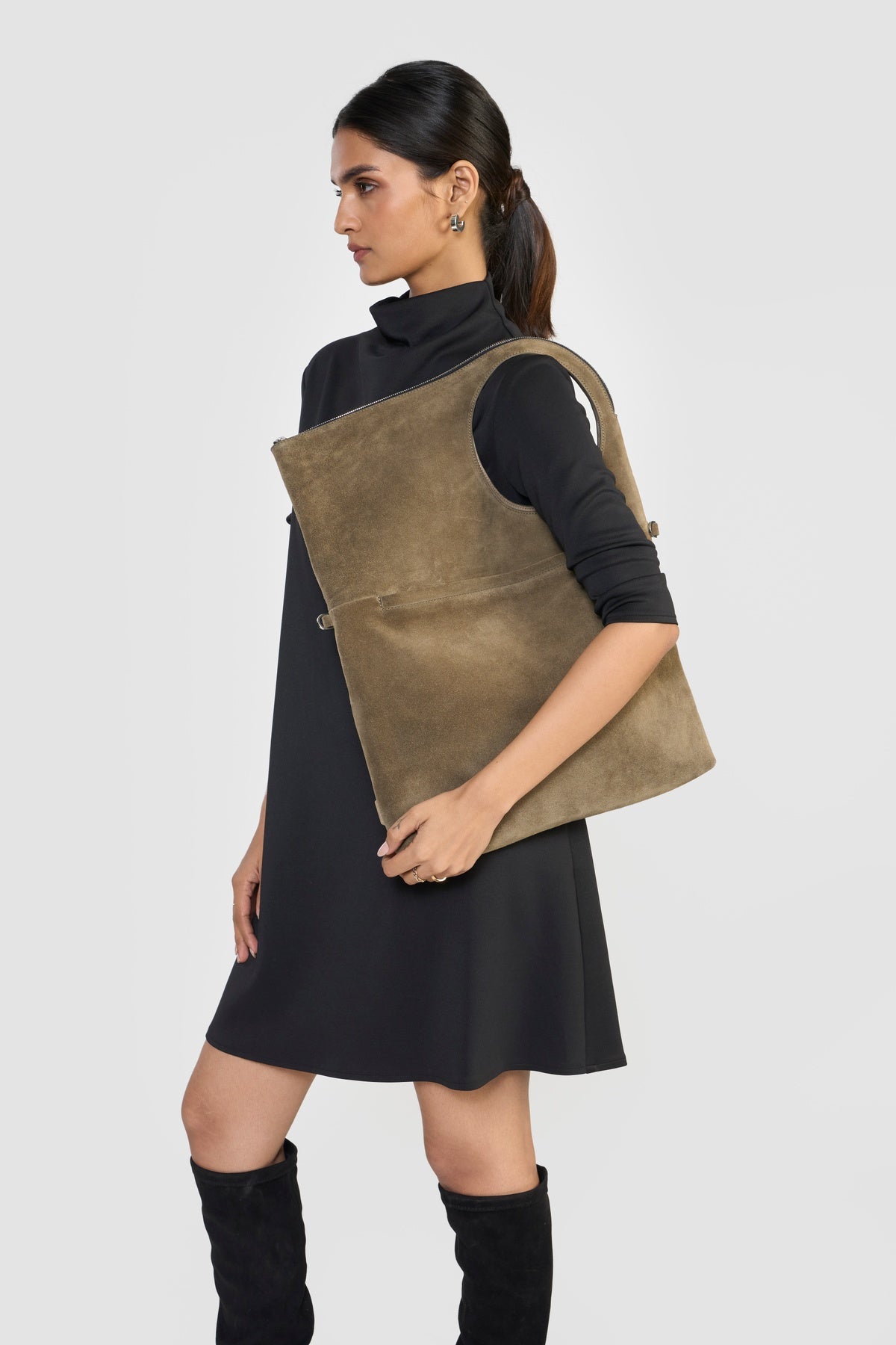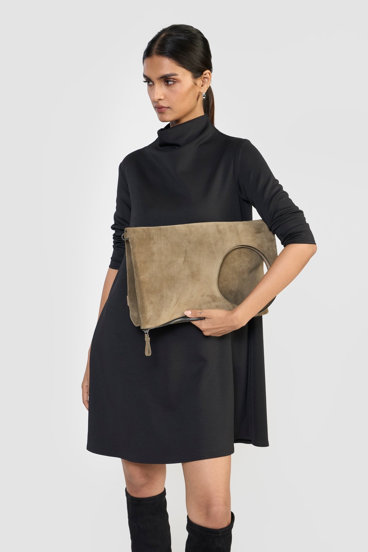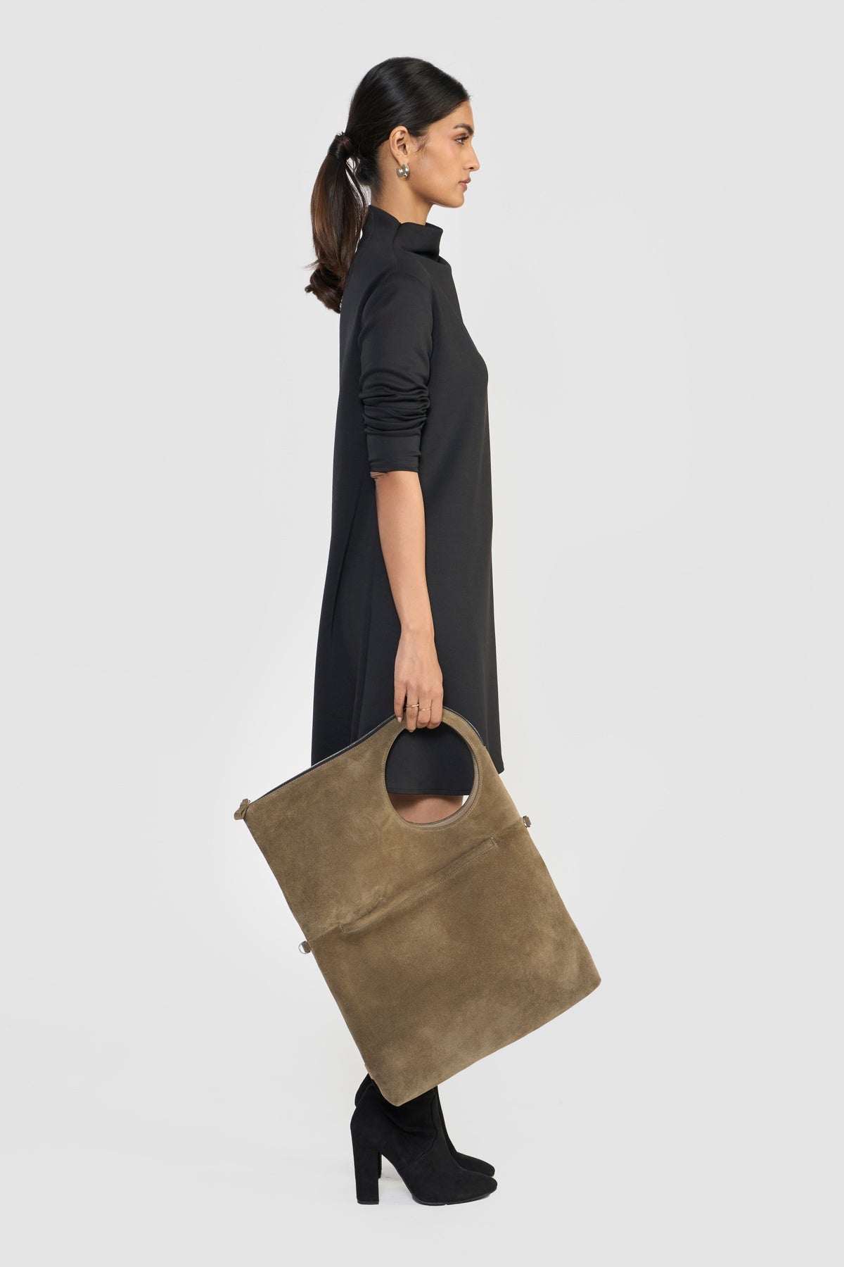 Defined by sculpted circular handles carved from the body and a clean, minimalist silhouette, this design reimagines modern versatility. Both statement and essential, the bag transitions effortlessly across occasions—with extra room for essentials, it transforms from a shoulder bag to a crossbody bag into a clutch, from refined evenings to casual moments. Designed for daily ease, the spacious main compartment accommodates all your necessities, while the signature dual straps allow for multiple carry options—by hand, over the shoulder, or slipped over your luggage handle.