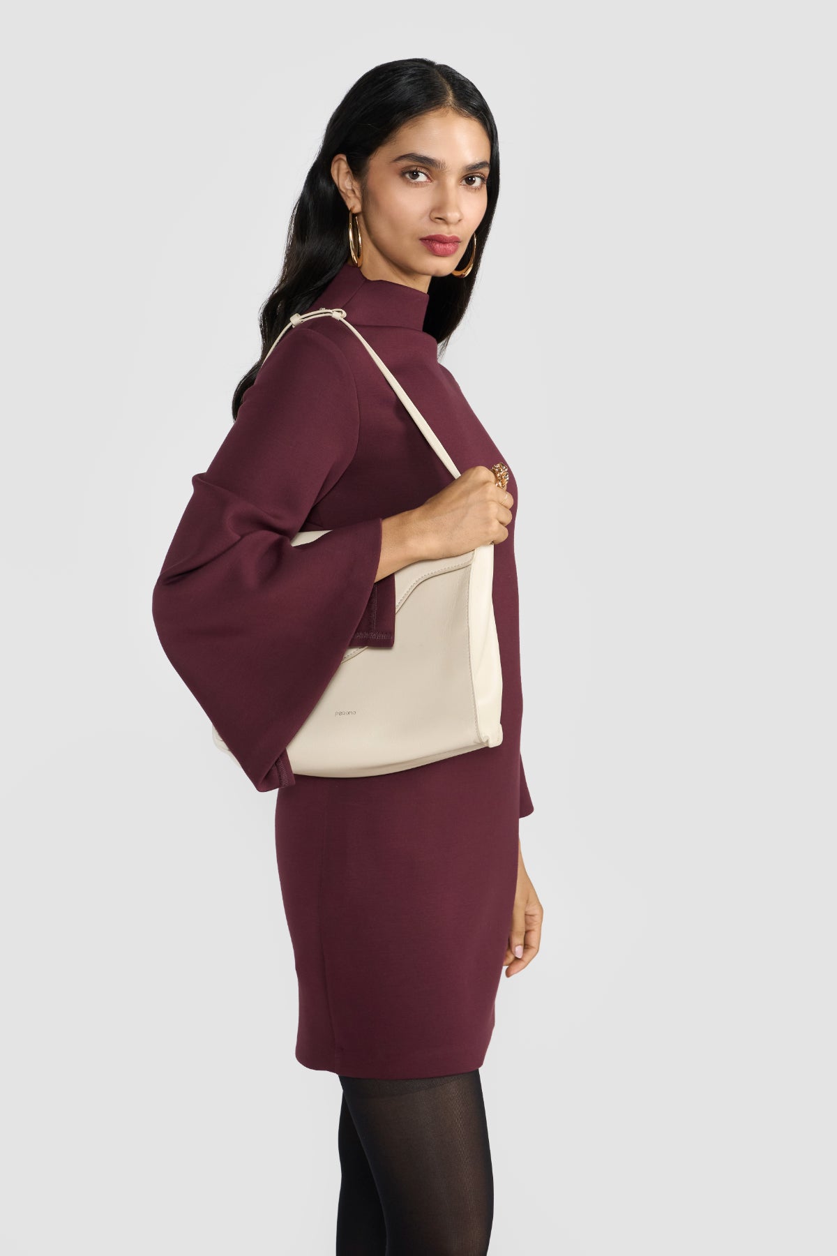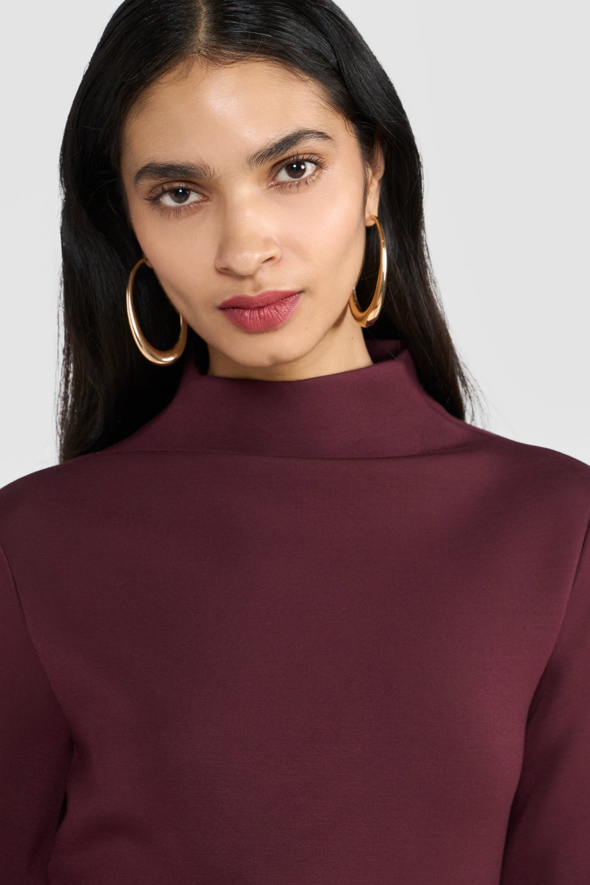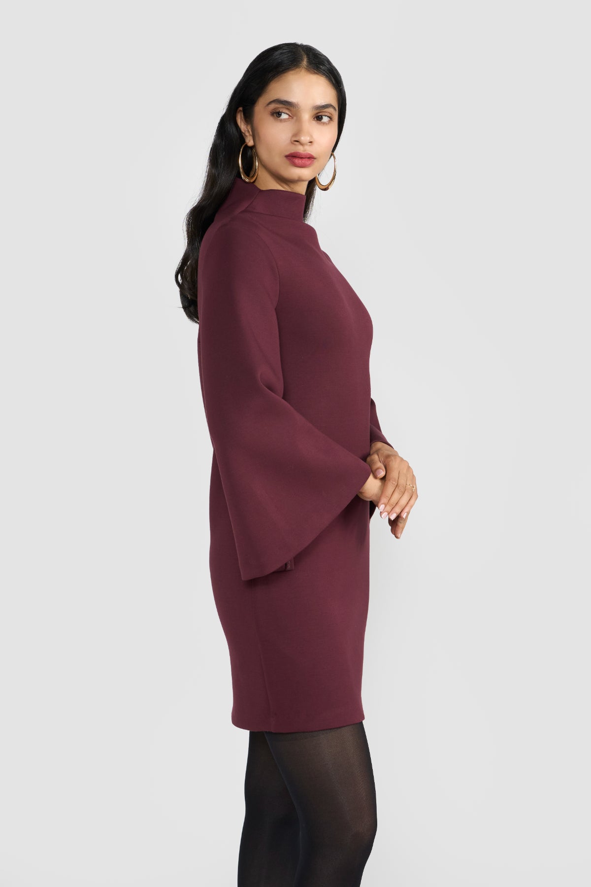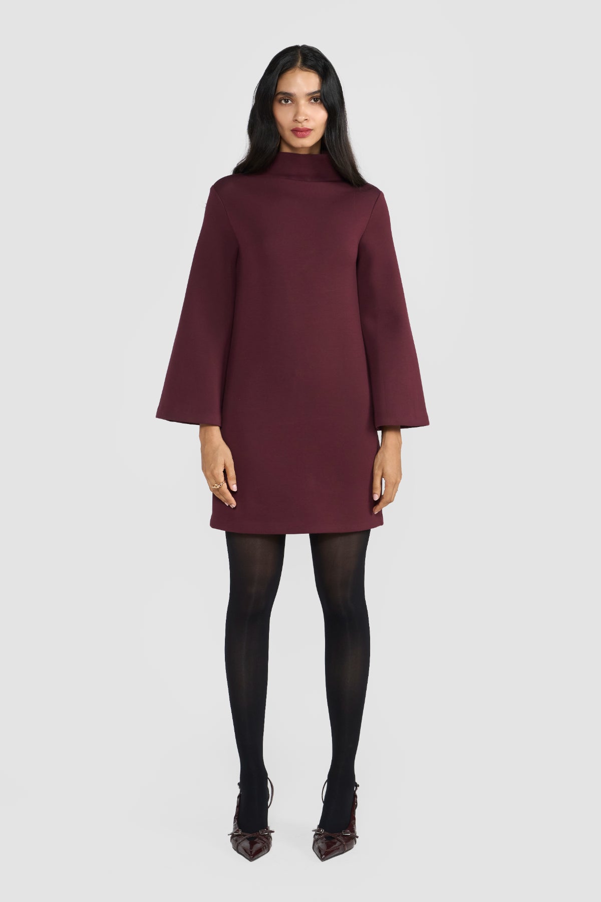 This eco-friendly rayon blend scuba dress is a cosy weekday staple. This draped funnel-neck dress with bell sleeves is crafted using a premium scuba to create a sculpted yet soft shape. It’s a futuristic take on knitwear and a key piece for comfort. Rayon is a plant based material which consists of cellulose fibre, made from dissolving pulp along with high absorbent and breathability features.