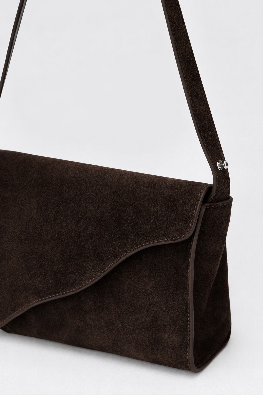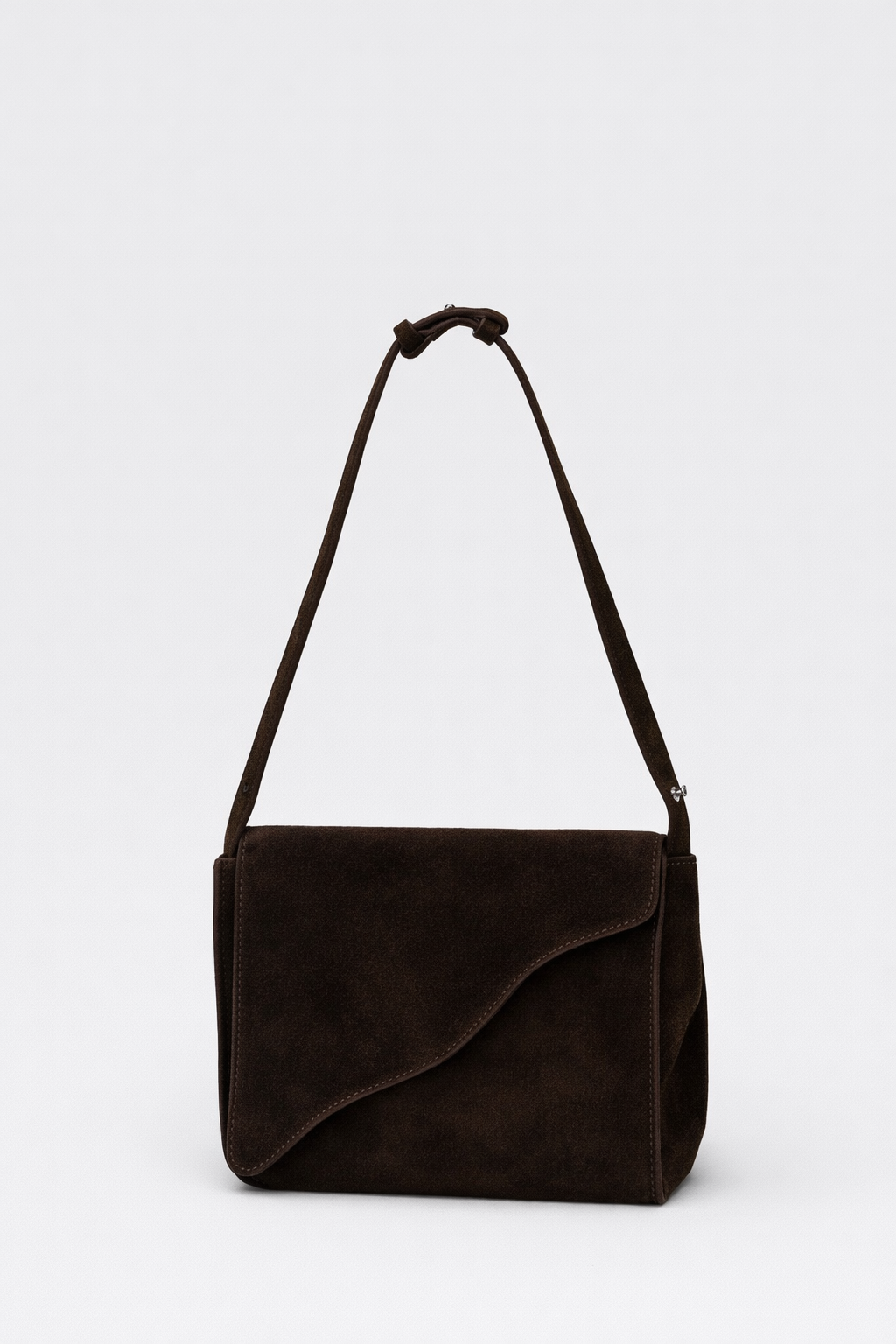 A chic blend of texture and modern design, this Handbag stands out with its distinctive asymmetrical flap and rich suede-finish material. Compact yet practical, it is crafted for effortless day-to-night styling. Whether for casual outings or elevated ensembles, this piece adds a refined touch to any look.