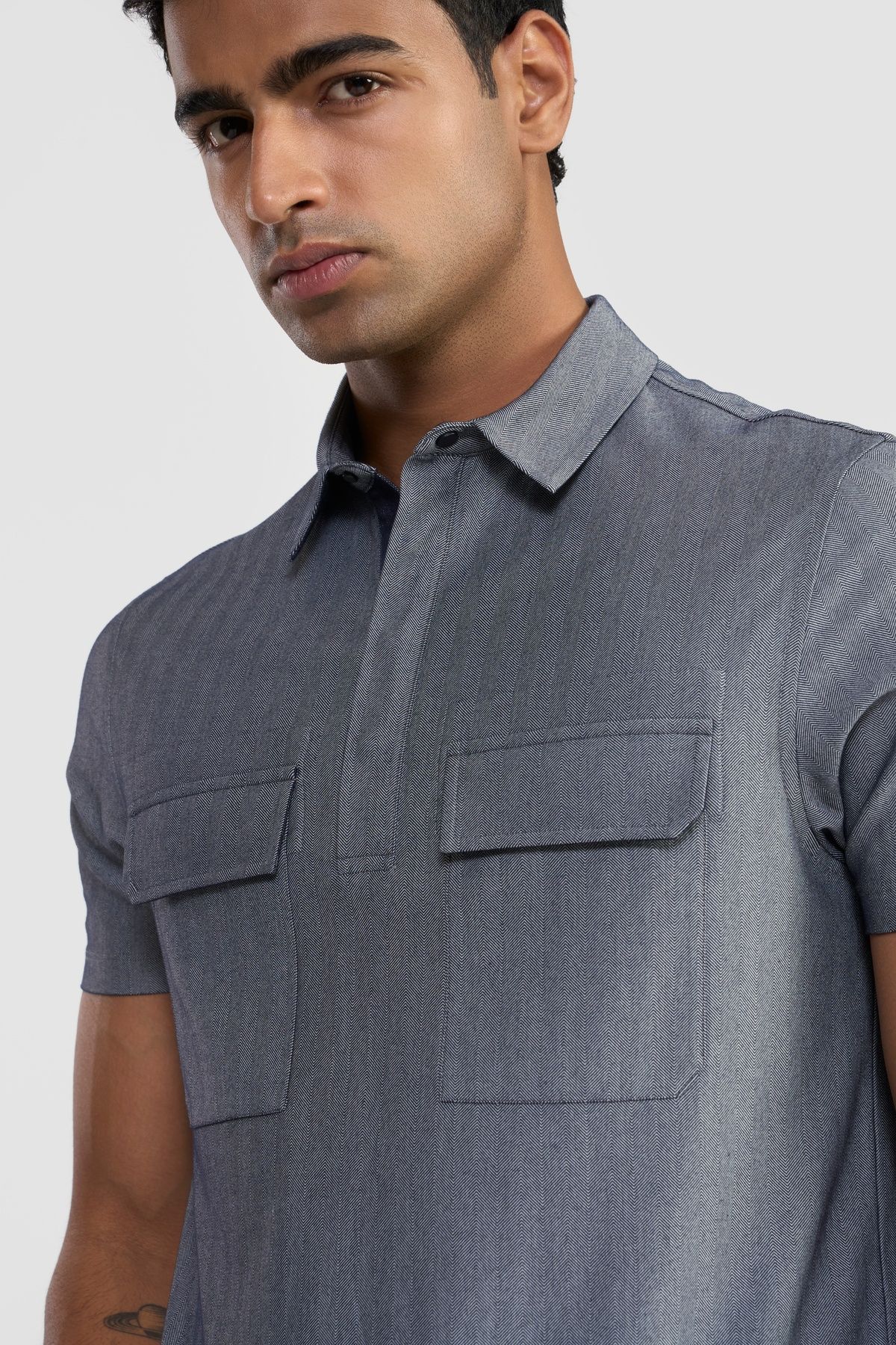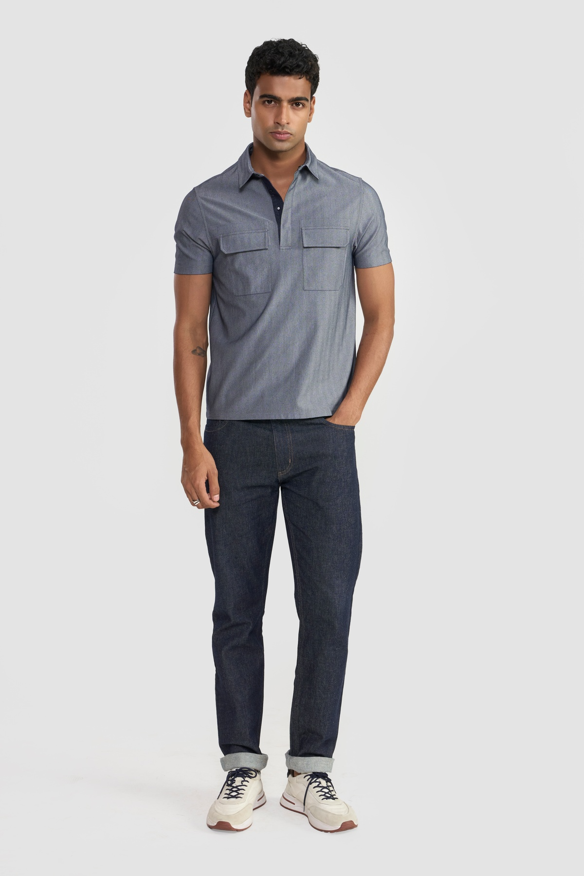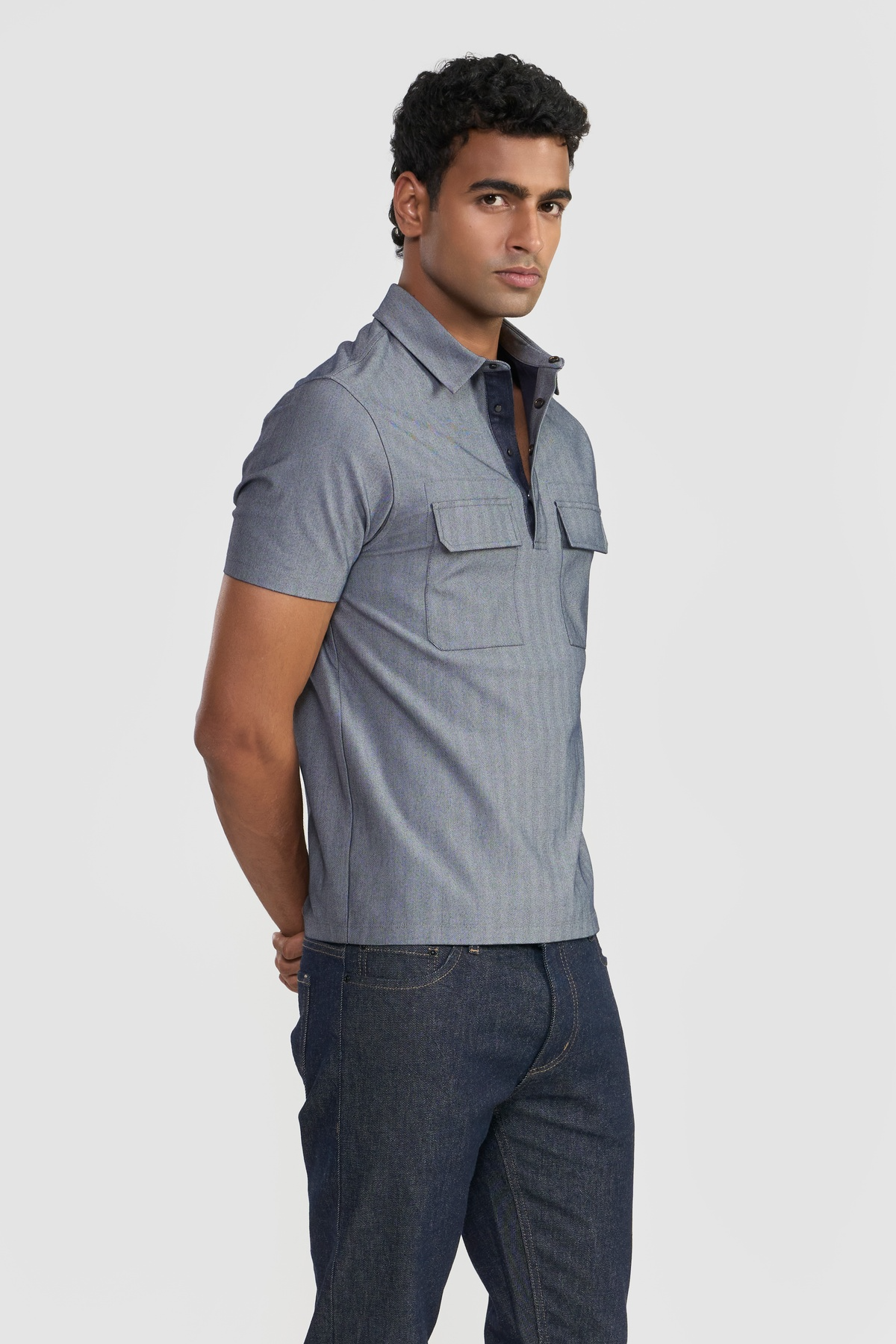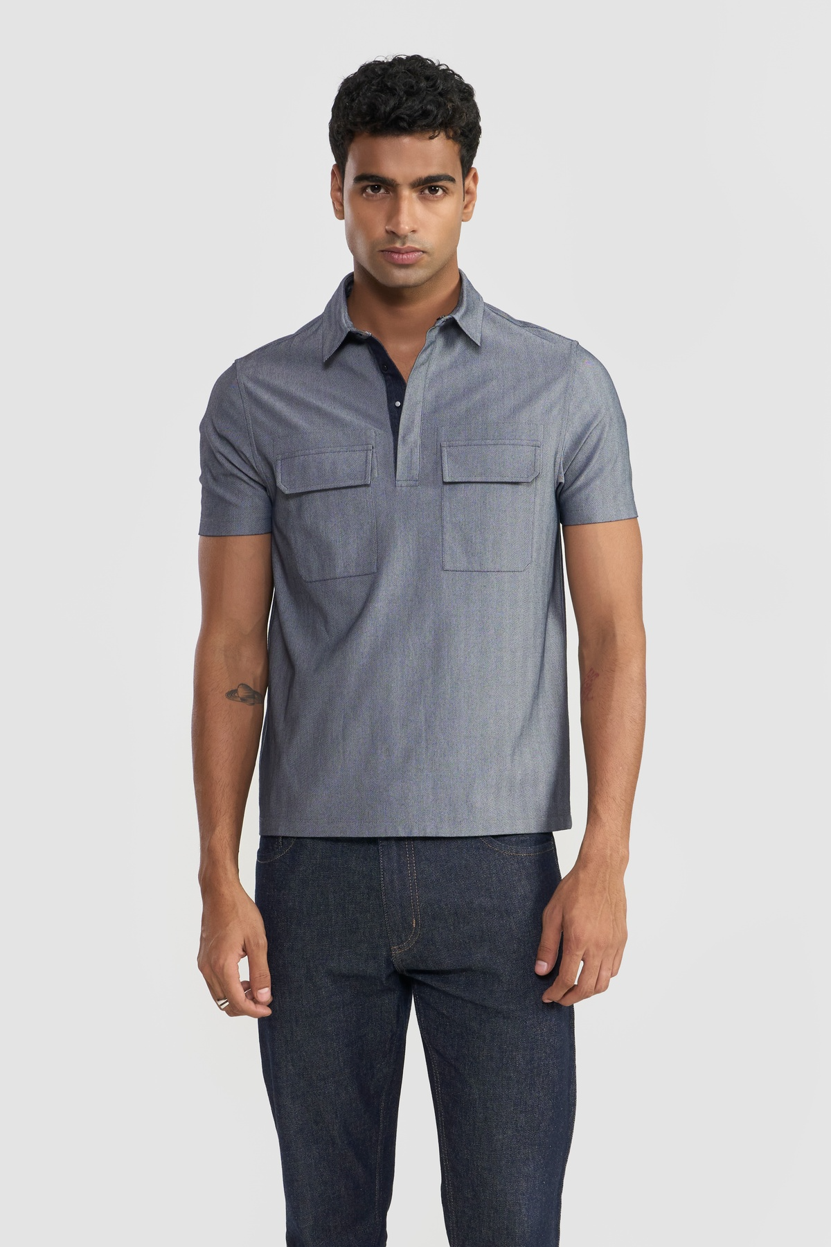 Crafted from a cotton-polyester blend, this polo is designed with a structured yet comfortable fit. It features a quarter placket with a pointed collar. Two front flap pockets add a functional detail, while the fabric remains lightweight and suitable for everyday wear.Model is 6'1 and wearing size M.