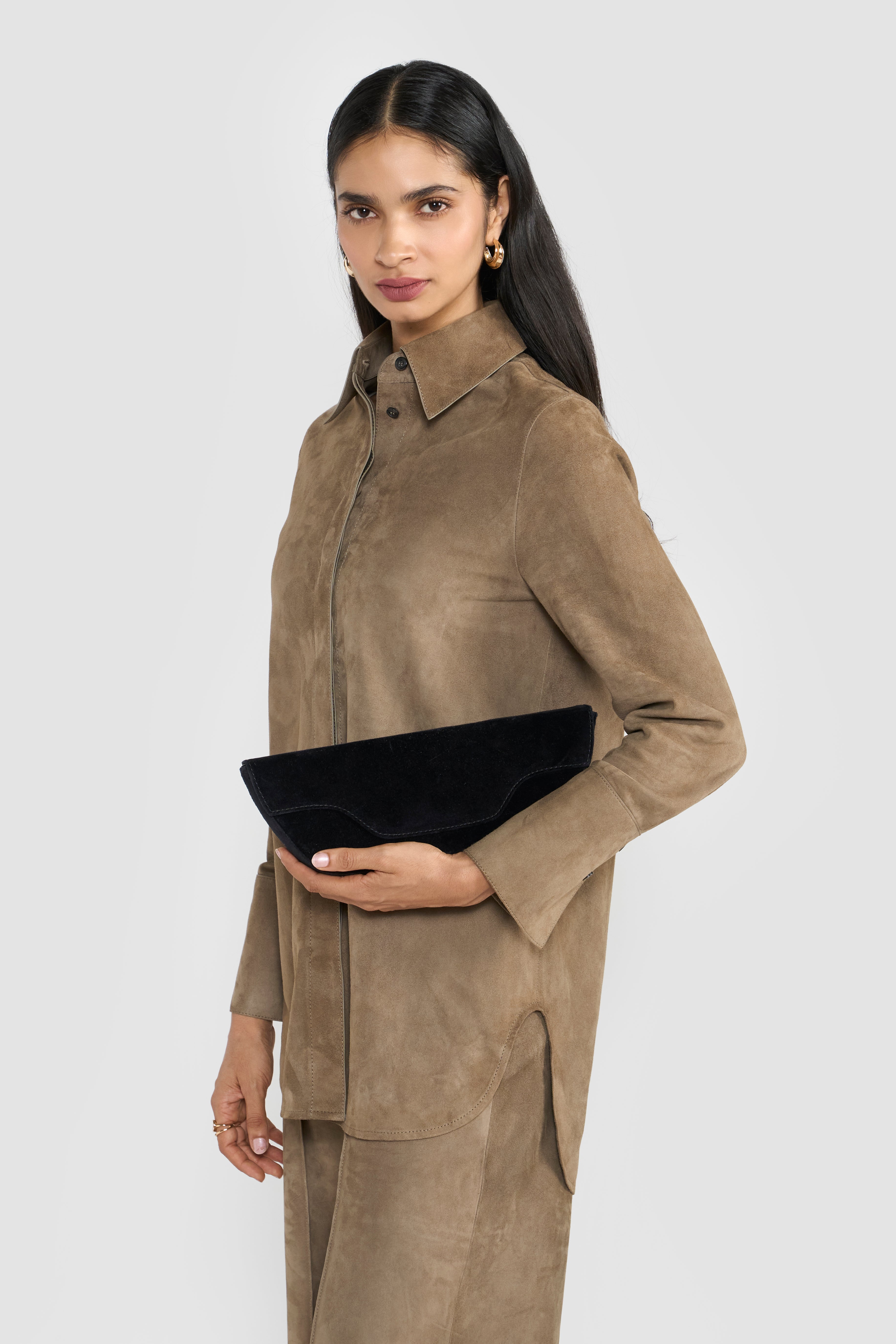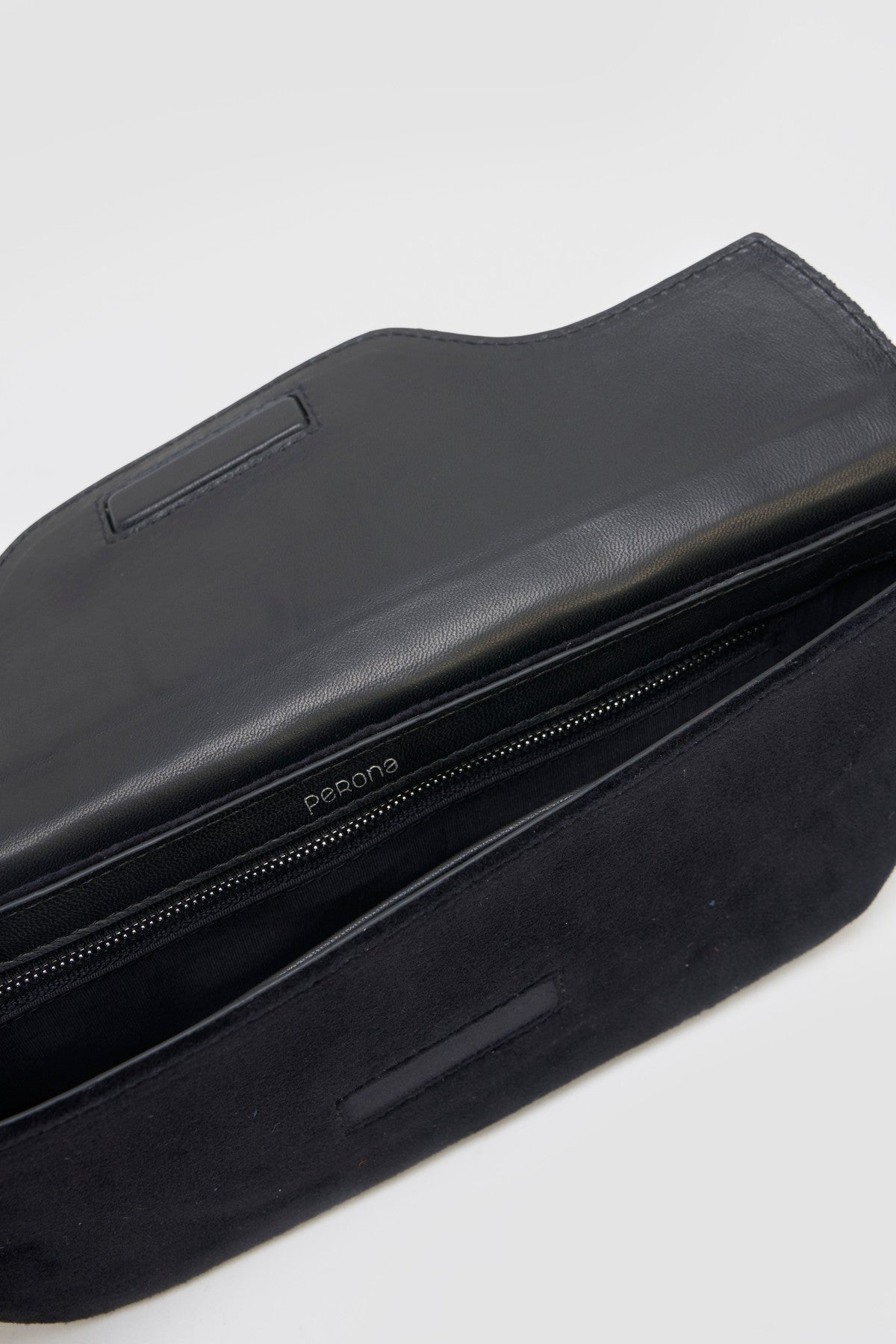 The DAISY evening clutch embodies Perona’s understated elegance, crafted in premium velvet with a sumptuous texture and soft lustre. Defined by its compact, structured silhouette and seamless construction, the design balances fine lines with functional precision. Thoughtfully detailed with an interior zipper compartment and an open slip-in pocket, it offers practical sophistication. Finished with LWG-certified premium leather trims on the inside, the clutch reflects a refined sensibility and a forward-leaning aesthetic.