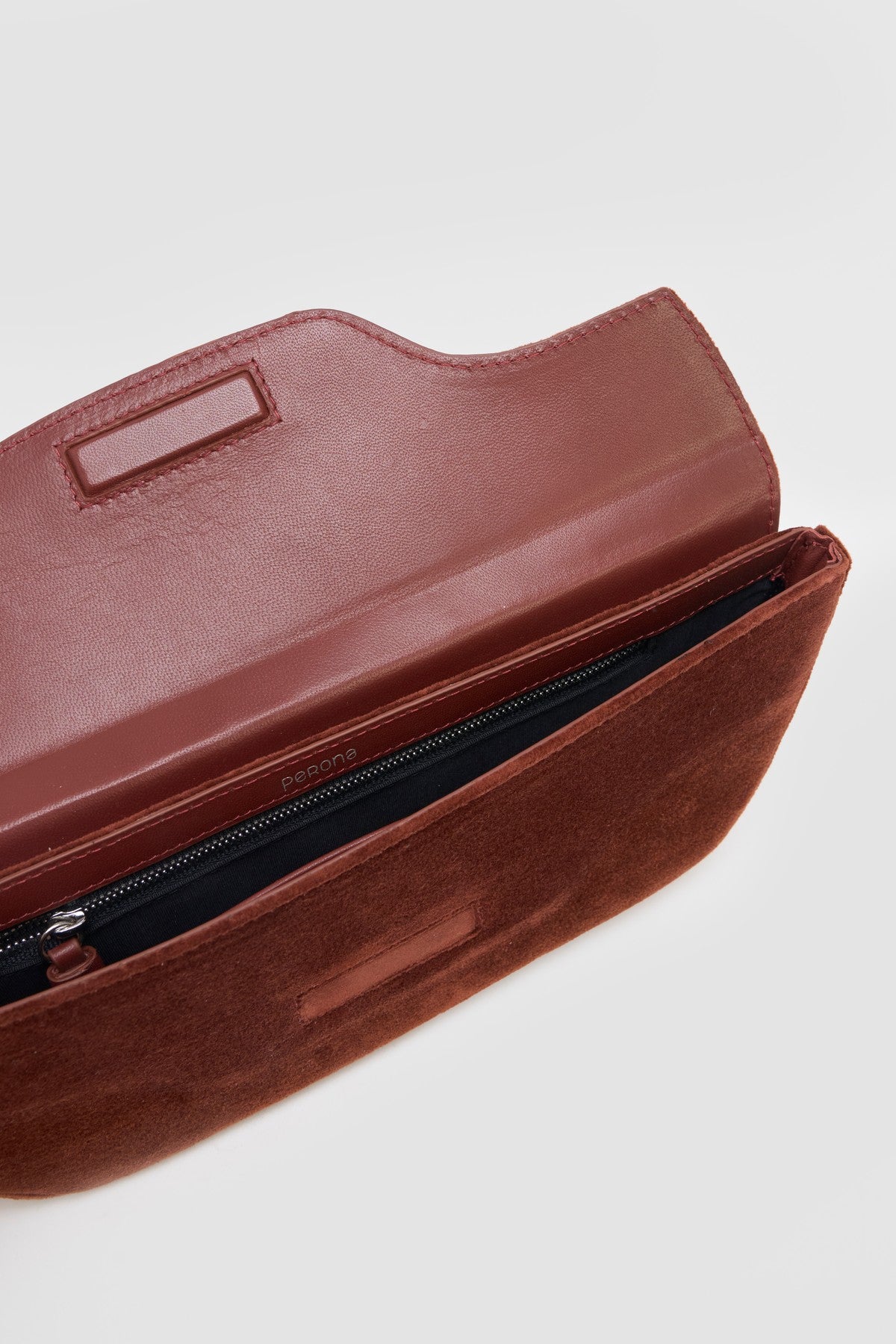 The DAISY evening clutch embodies Perona’s understated elegance, crafted in premium velvet with a sumptuous texture and soft lustre. Defined by its compact, structured silhouette and seamless construction, the design balances fine lines with functional precision. Thoughtfully detailed with an interior zipper compartment and an open slip-in pocket, it offers practical sophistication. Finished with LWG-certified premium leather trims on the inside, the clutch reflects a refined sensibility and a forward-leaning aesthetic.