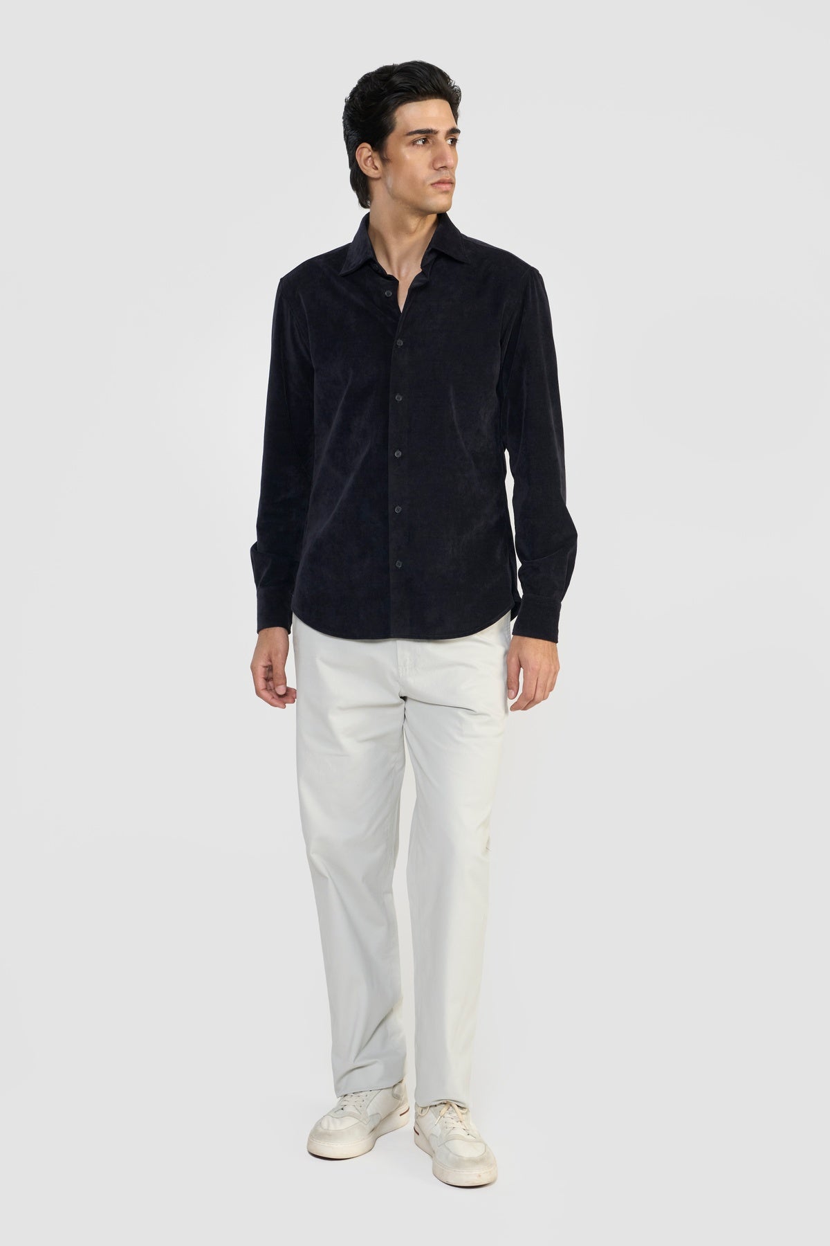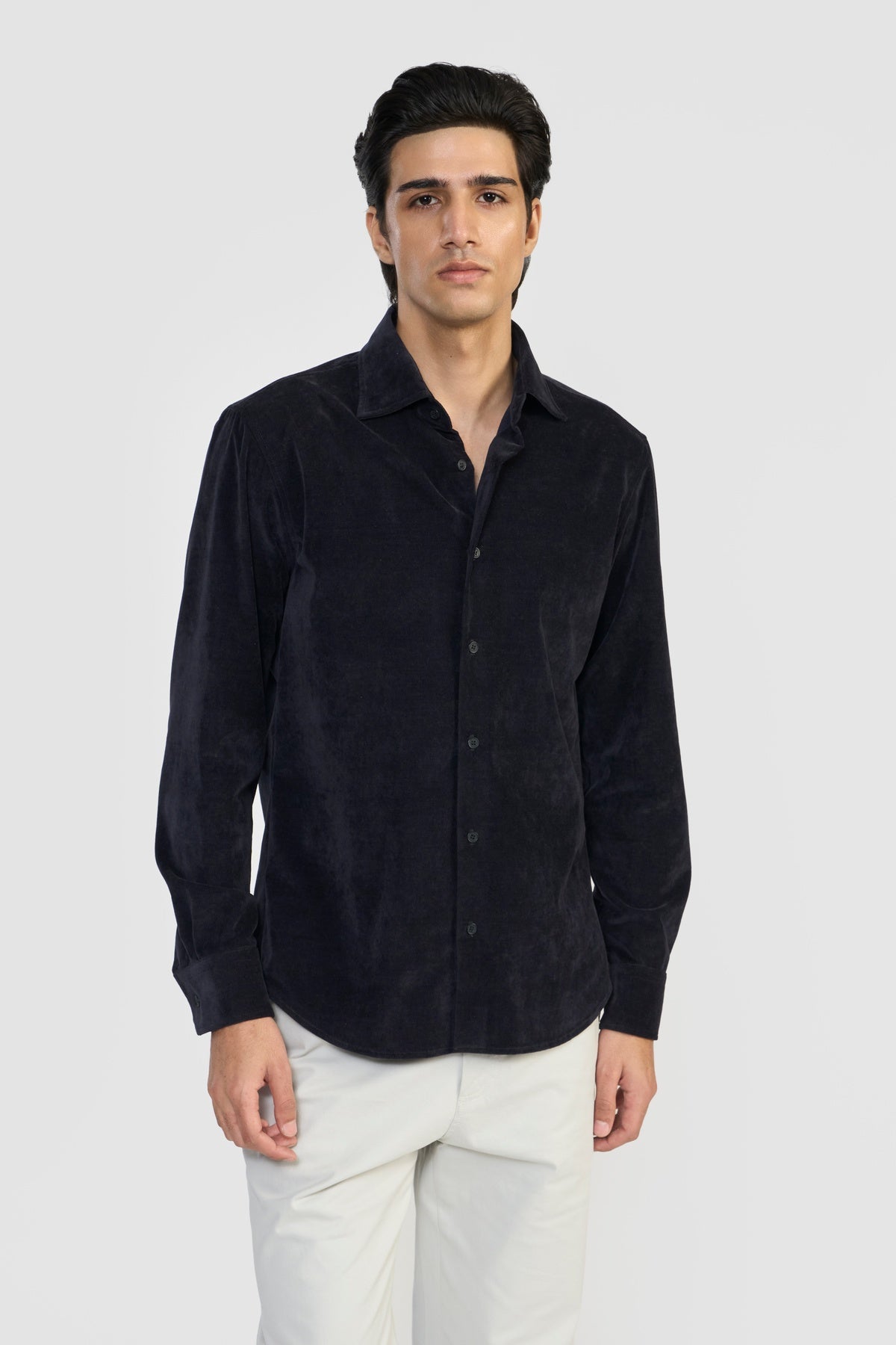 Tailored from premium Japanese corduroy, this shirt combines classic texture with refined structure. The soft, mid-weight fabric is woven with a touch of elastane, offering gentle stretch for all-day comfort. Cut in a relaxed fit, it features a spread collar, full-length sleeves, and a clean button-front closure. Elevated yet understated, this piece transitions seamlessly from day to evening—making it a sophisticated choice for casual dinners or dressed-down evening occasions.