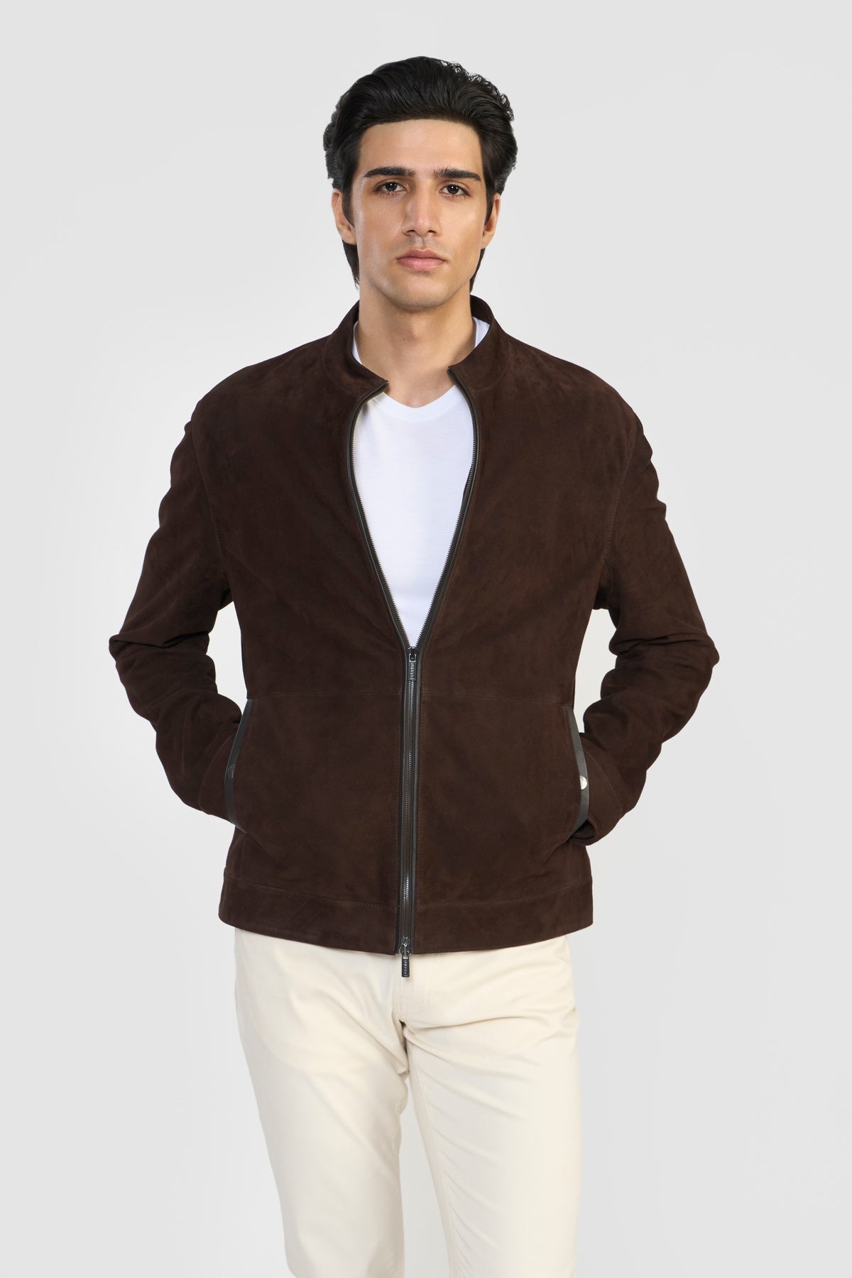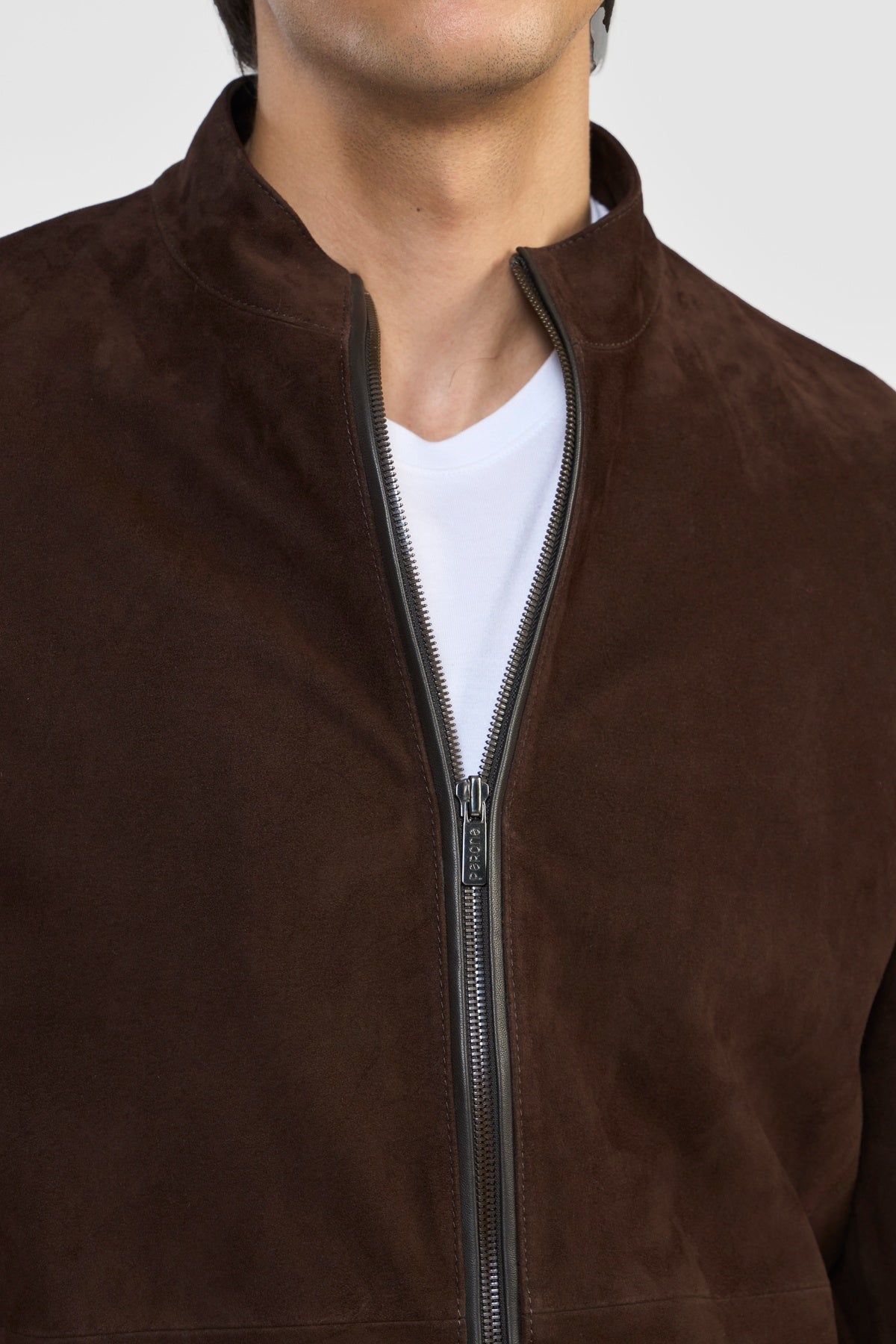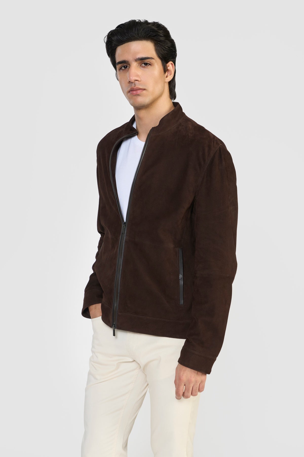This stand collar jacket is designed with two functional bone pockets and button down cuff opening. Sleek design and relaxed fit through the body with plenty of room for underlayers. Accentuated with tonal leather trims. Crafted from premium LWG certified leather. A stylish yet practical addition to your winter outfits.