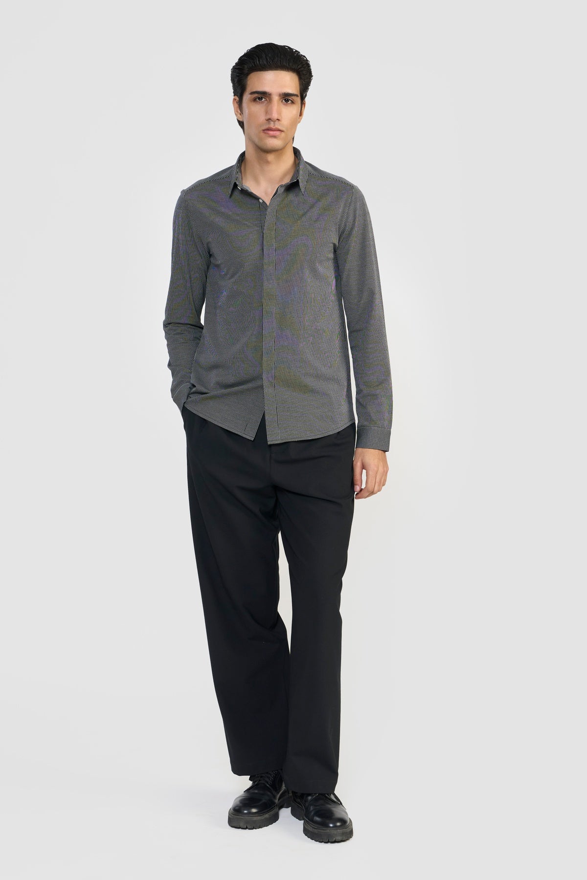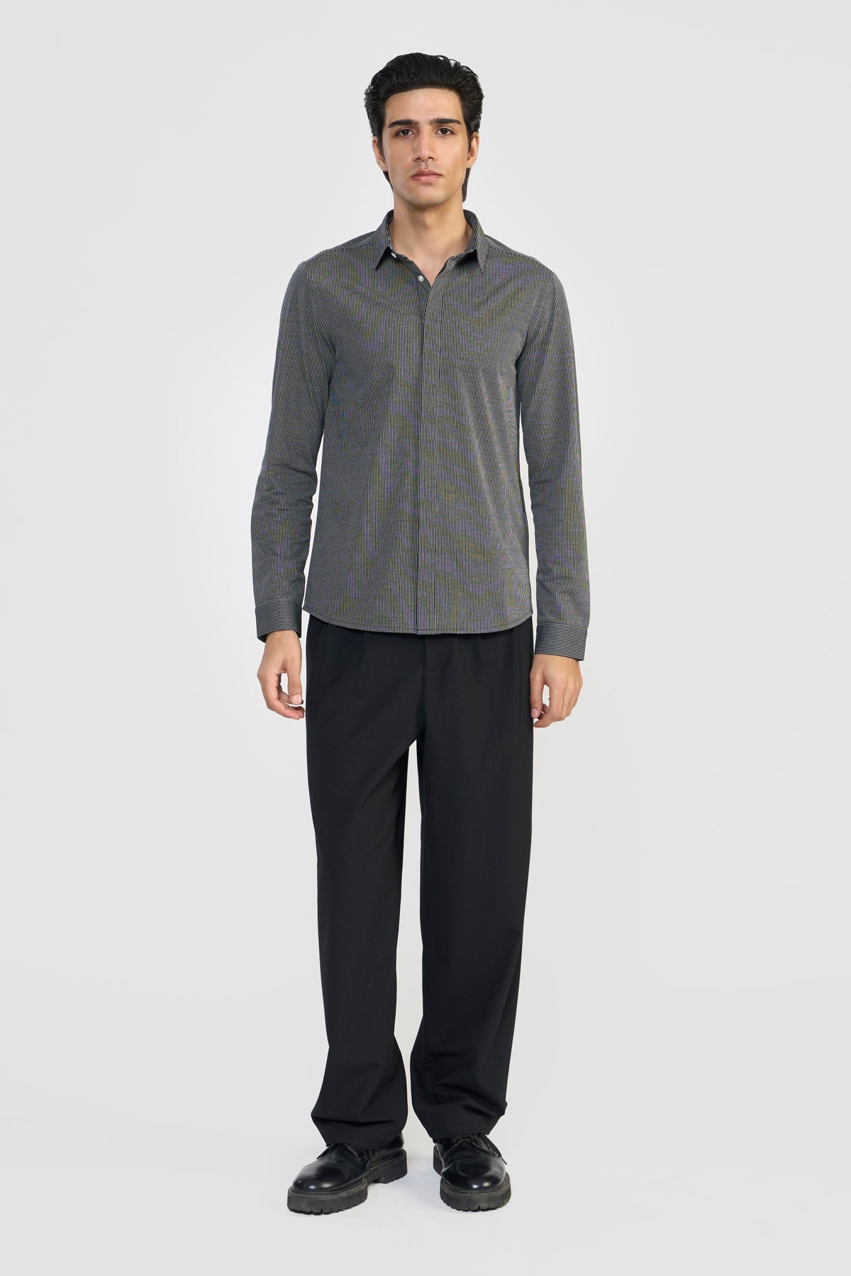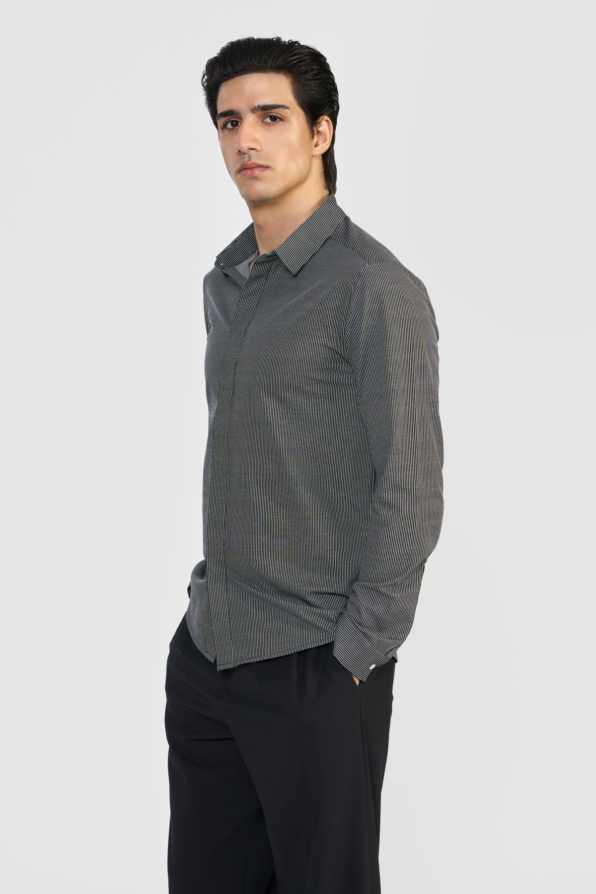 In warmer weather, the full-sleeve shirt with white stripe on black background in cotton polyester blend looks fresh and effortless. Features shirt collar, contrast button closure and full sleeves. Regular yet close fitting lines to the body through the chest and shoulder add contemporary edge to this iconic essential. This airy, inherently breathable fabric seamlessly bridges casual styles with timeless classics. The crisp natural material and elegant stripe pattern in shades of blue set the tone for the rest of your look. A spread collar tops off the full-sleeve shirt.