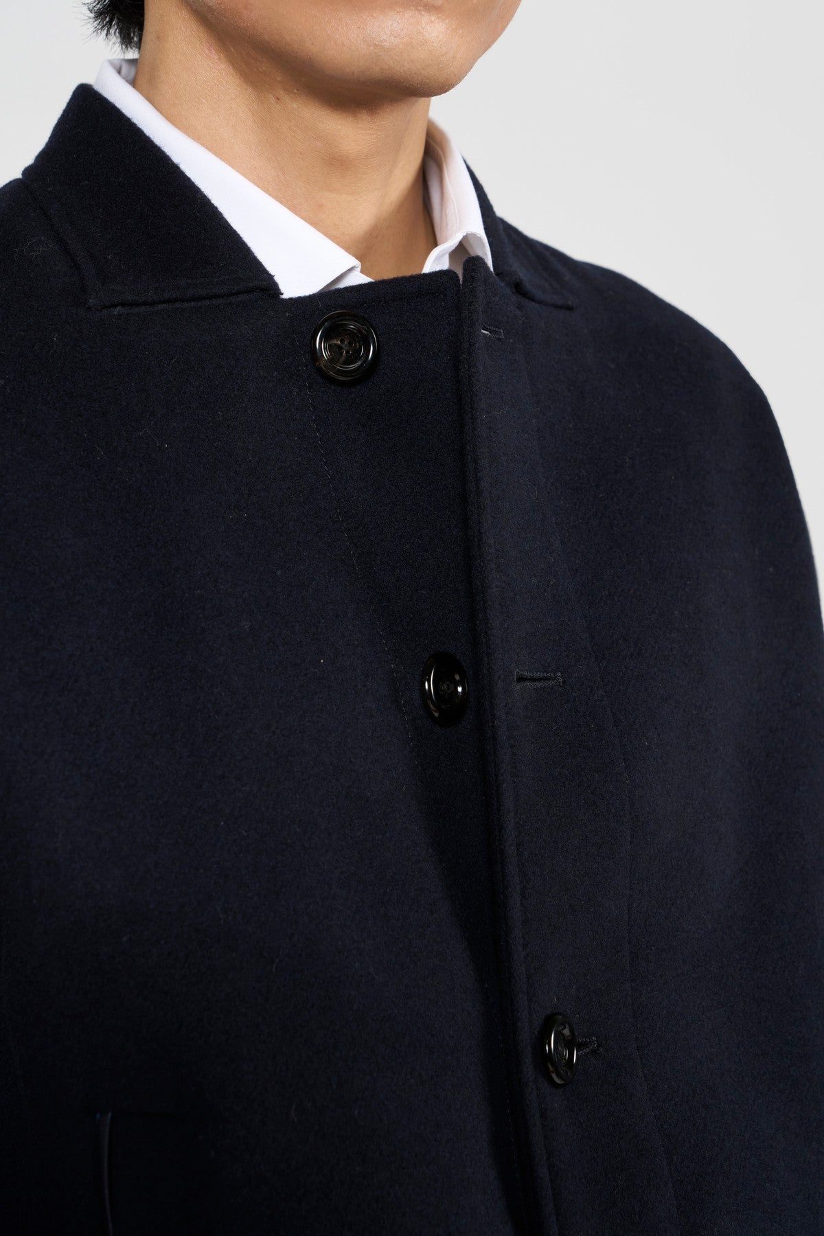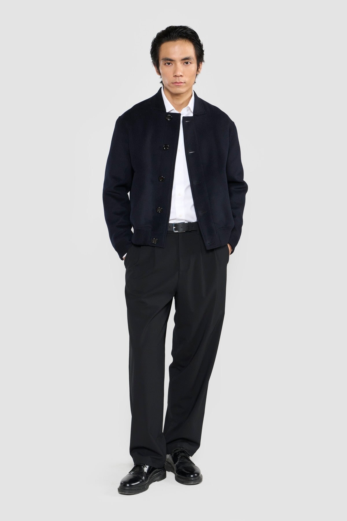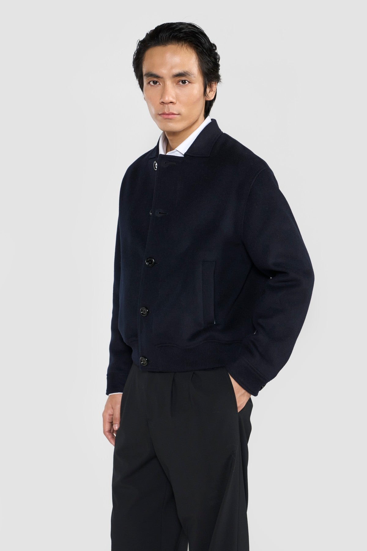 Cut in a relaxed silhouette, the jacket features LWG-certified leather trims for a sophisticated contrast. Thoughtful details include a grown-on slant collar, button-front closure, and bone double welt pockets highlighted with slim leather piping. Finished with an exclusive wool ribbed hem and adjustable cuffs, this modern essential offers timeless style, conscious craftsmanship, and everyday versatility.Relaxed Fit
