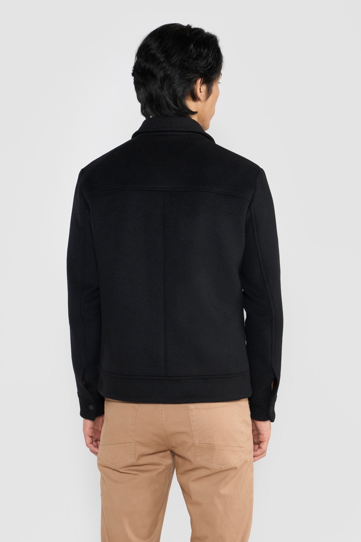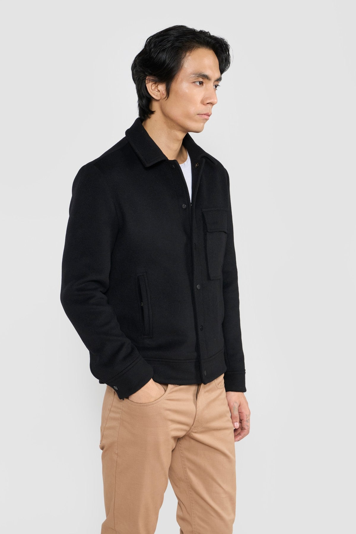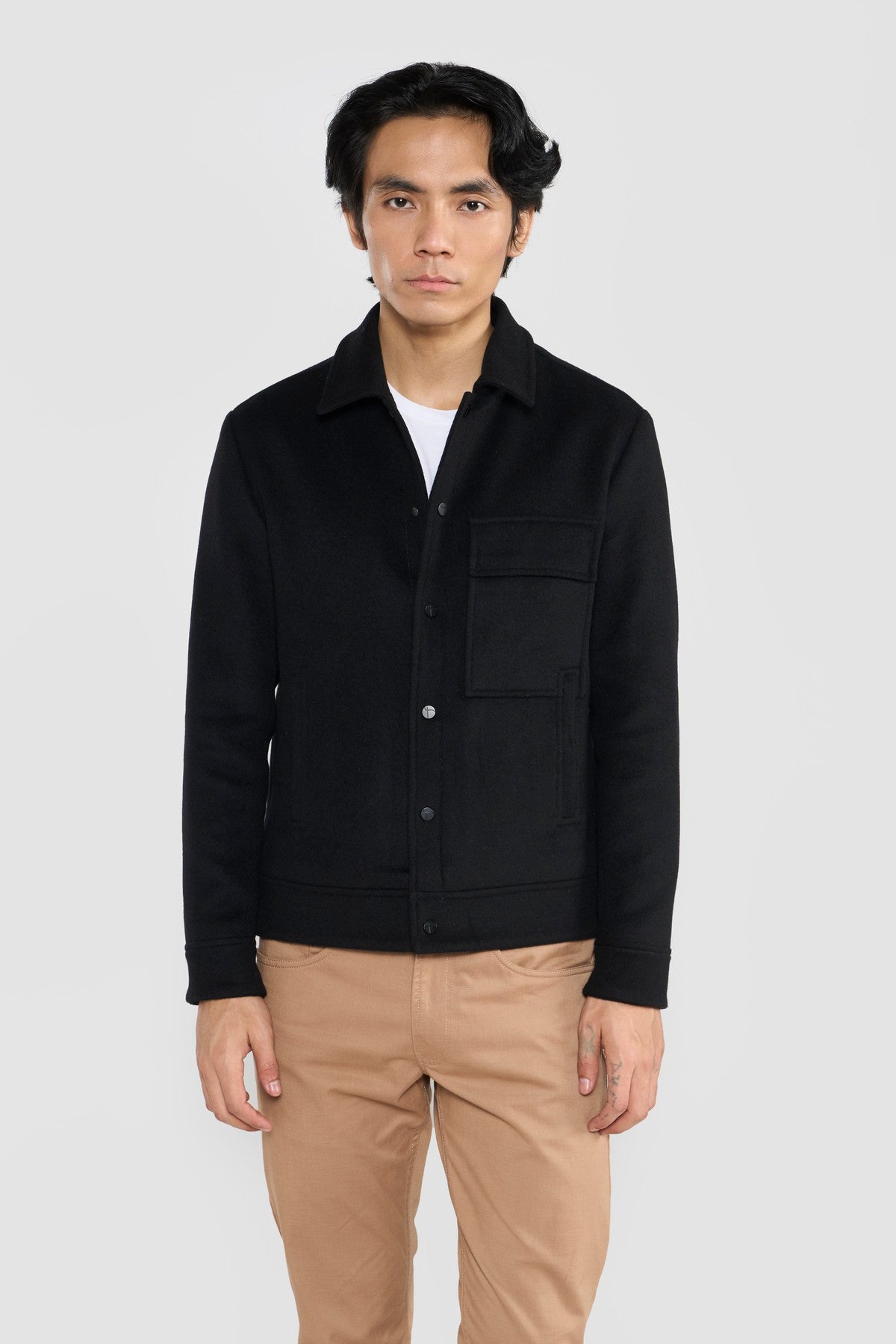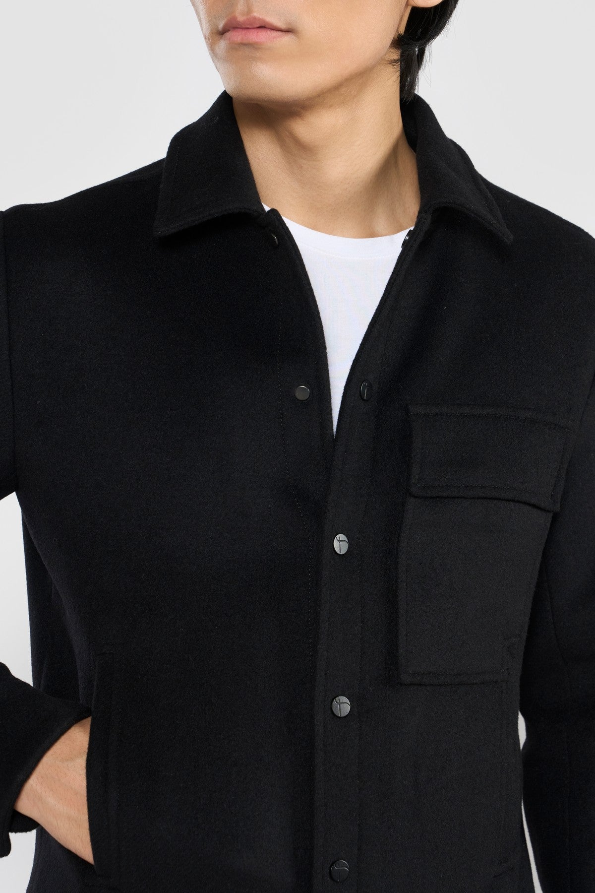 Crafted in luxurious Italian MWool® certified by the Global Recycled Standard (GRS). This limited edition shacket is curated in black colour with defining shirt collar. The statement piece ensures comfortable fit, premium pearl gunmetal button closure, chest pocket, side functional pockets and adjustable cuff opening.A premium, low-impact fiber that redefines sustainability. Our commitment to quality begins with a meticulous selection and thorough testing of the finest raw materials. Utilizing an innovative mechanical recycling process, we transform pre- and post-consumer garments and scraps into new textiles, all while minimizing environmental impact. Our innovative Recype® process creates vibrant, dye-free colors, enhancing our eco-friendly production.Certified by the Global Recycled Standard (GRS), MWool® ensures traceability and compliance with social and environmental standards at every production stage. By using recycled materials, MWool® eliminates the need for new wool, promoting a circular economy.Compared to virgin wool, MWool® reduces climate change impact by 99.2%, water use by 99.9%, and energy consumption by 93.3%, based on a life cycle assessment in line with international standards. MWool® fibers are also biodegradable and safe for marine environments, as confirmed by studies with the Bioscience Research Center and the University of Trieste. Experience the future of sustainable fashion with MWool®.