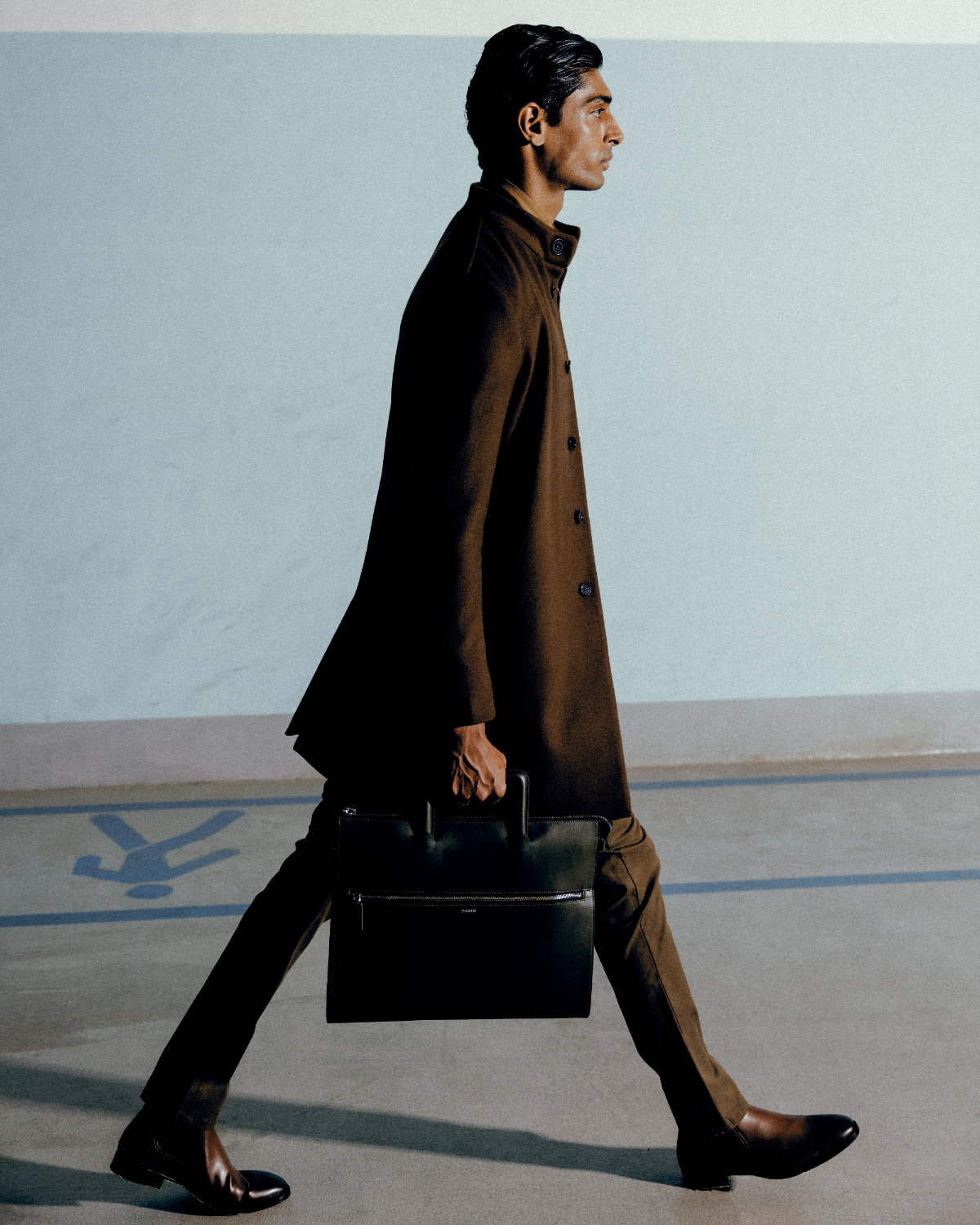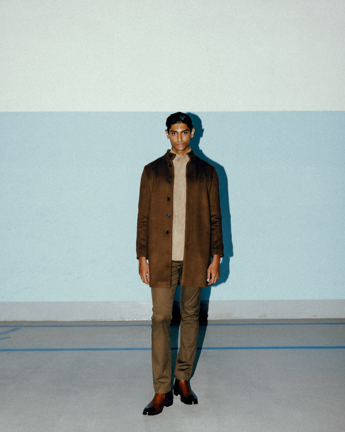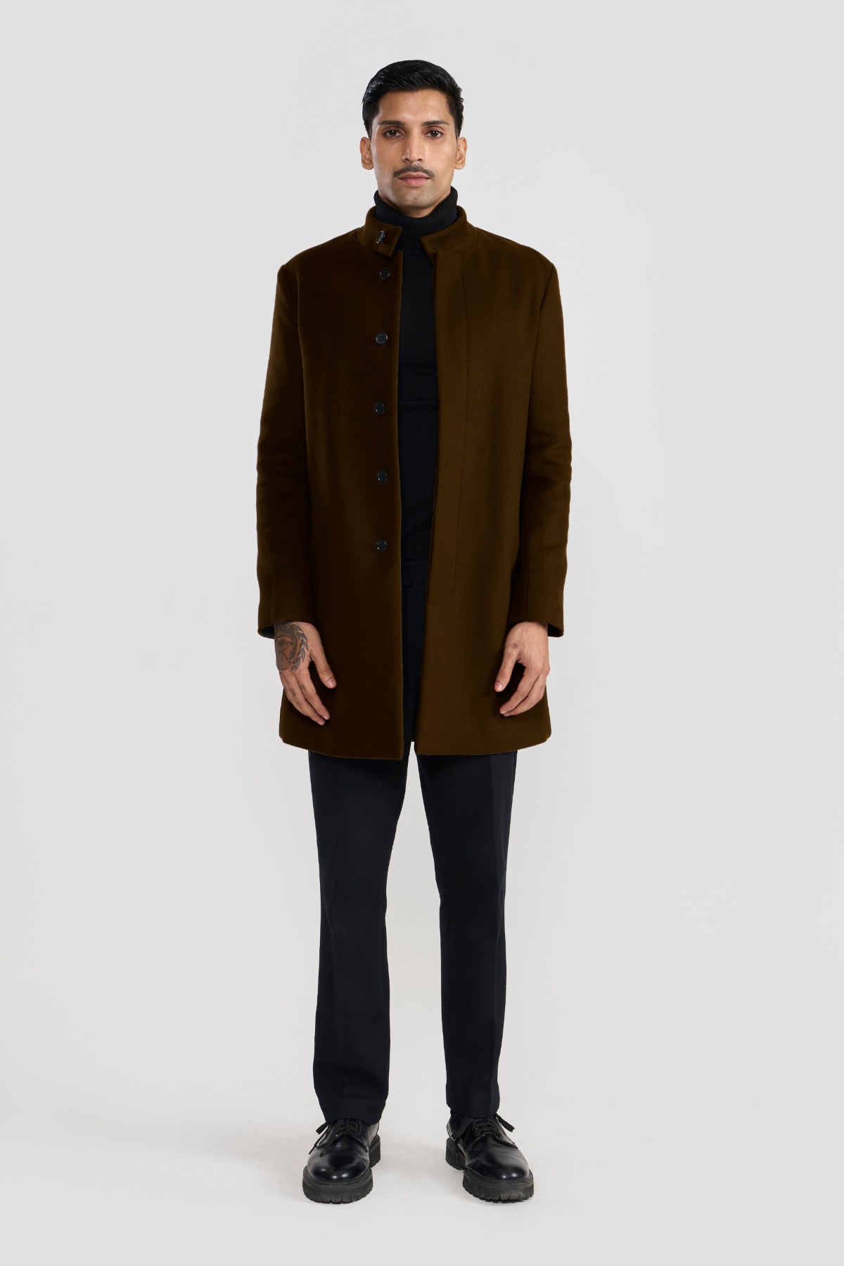 Crafted in luxurious Italian Wool certified by the Global Recycled Standard (GRS). Perona's iconic tailored long coat updated with modern proportions and stand collar. A timeless piece, crafted from ultralight and soft wool. Designed with a regular fit, this long coat features a hidden button-down placket, stand collar, discreet slanted pockets and is finished with Perona's modern minimal aesthetic.