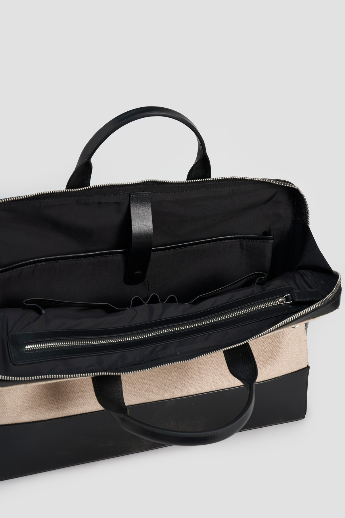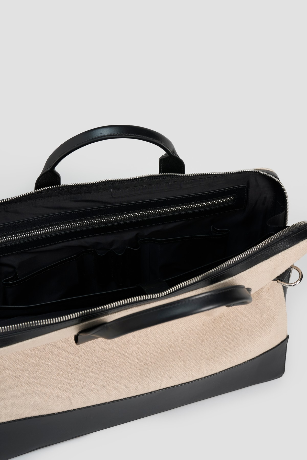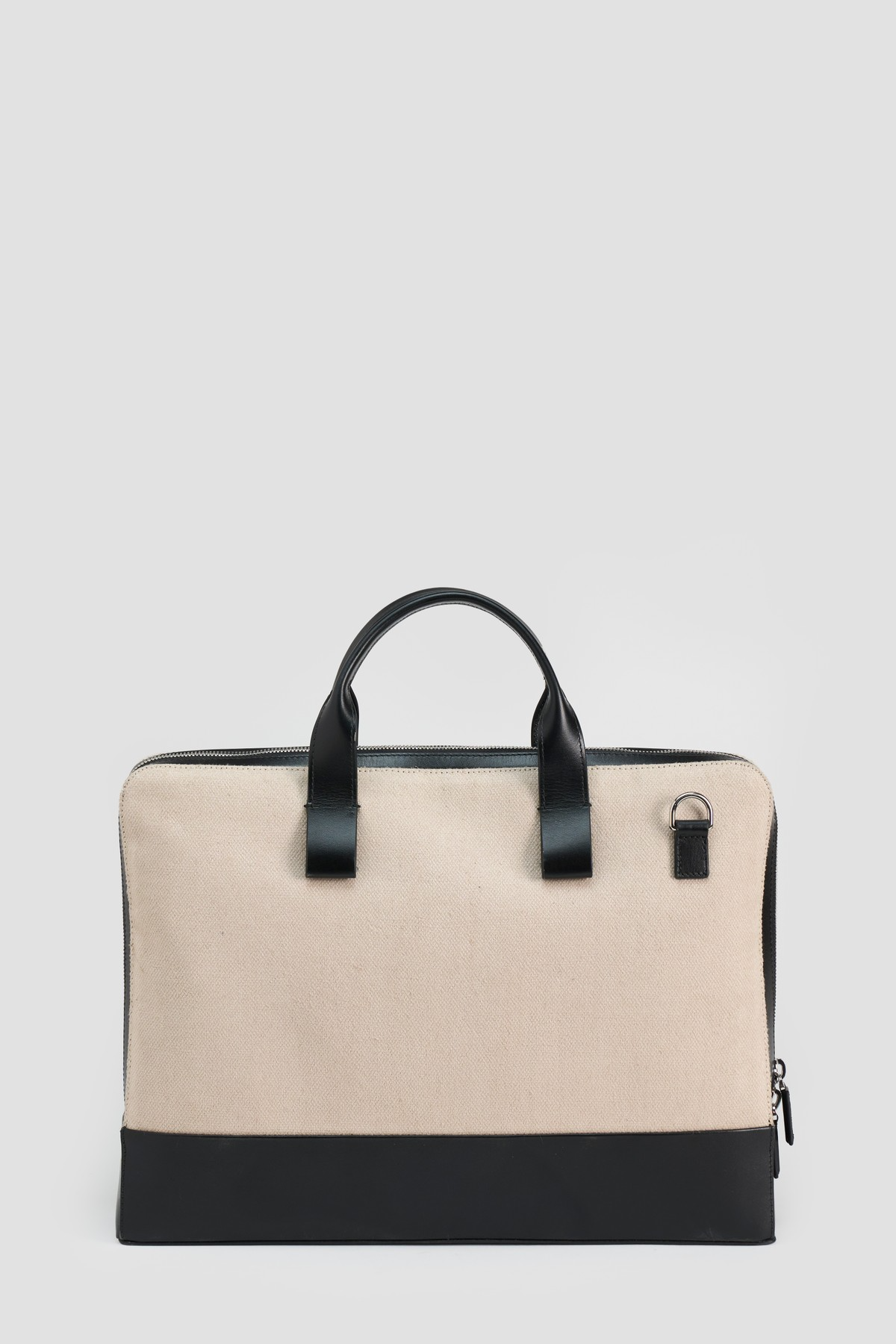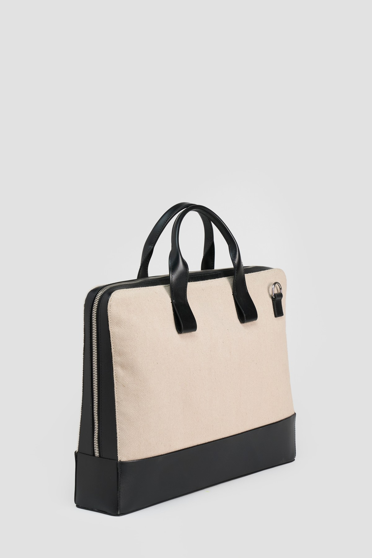 Engineered for durability and elevated style, this men's laptop bag is crafted from a resilient blend of linen and premium Italian leather. Designed to withstand daily wear, its shock-resistant structure ensures your tech stays protected without compromising on aesthetics. Featuring adjustable shoulder straps and sturdy handheld handles, it offers versatile carrying options to suit your routine. The sleek, functional silhouette includes a well-organized interior with dedicated compartments for your laptop, documents, and essentials — making it an ideal companion for work, travel, or everyday commutes.Dimensions- 42cm : 31cm : 8.5cm