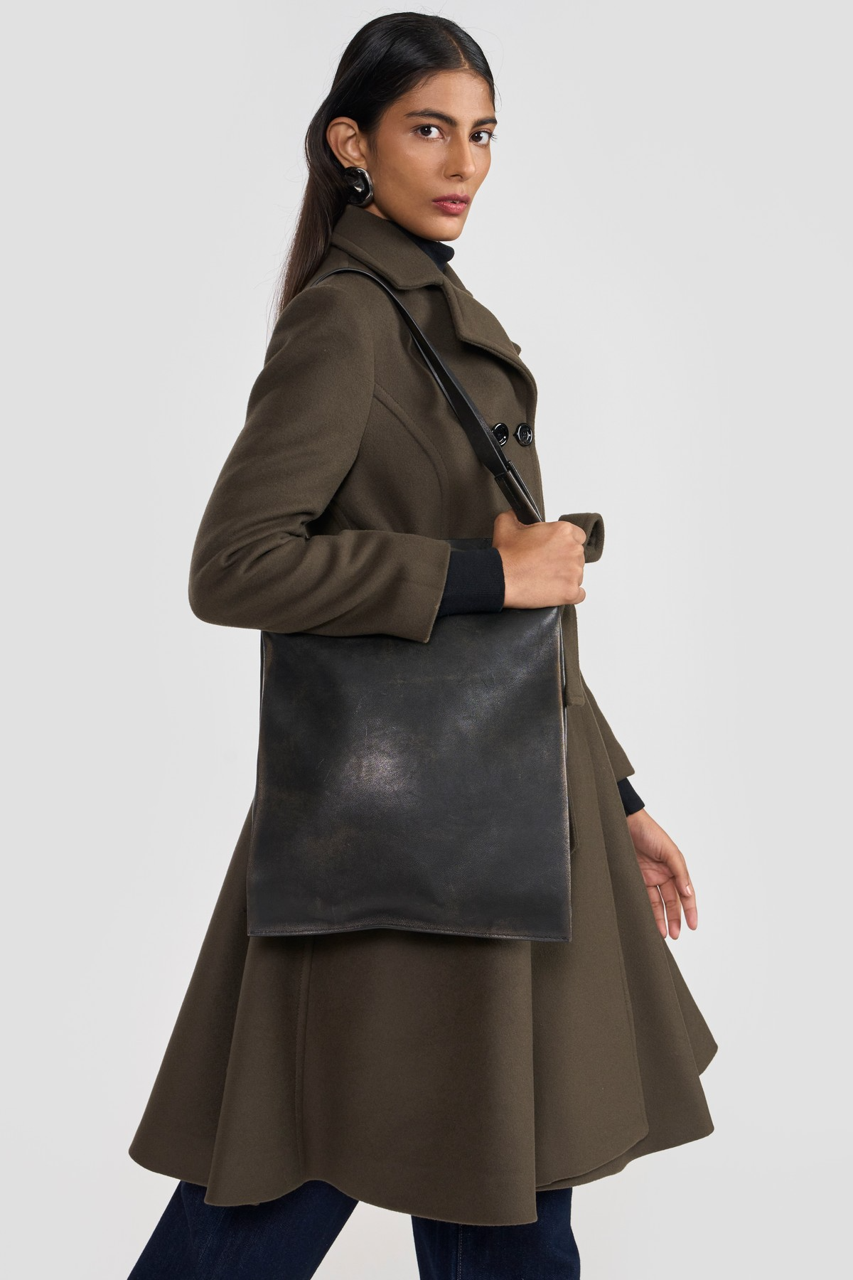 Crafted in luxurious Italian MWool® certified by the Global Recycled Standard (GRS). A tailored classic coat, this handcrafted premium wool coat features button closure, high neck collar and side pockets. Simple and versatile, this elegant coat is designated for sophisticated winter look.Tailored fit