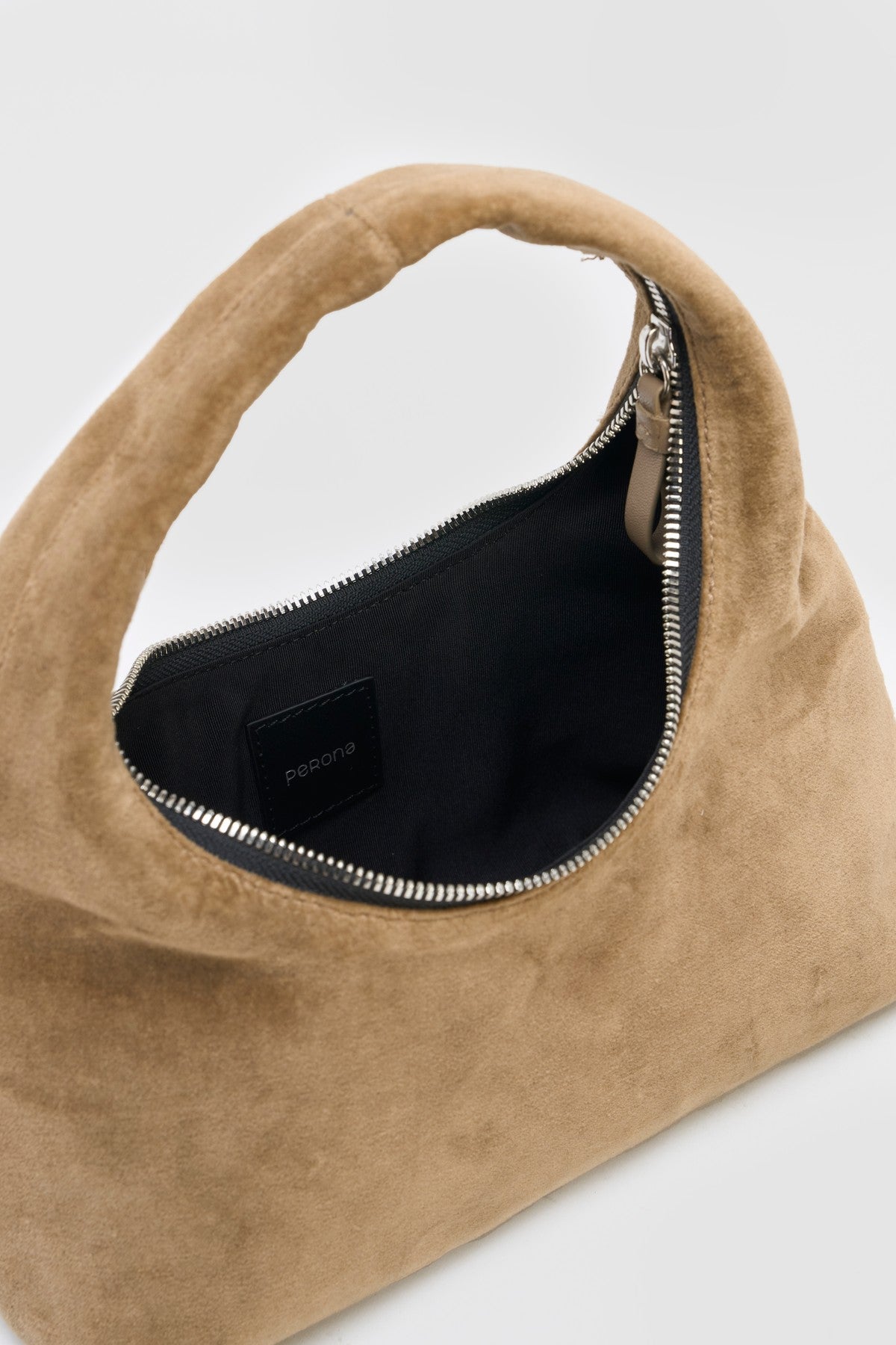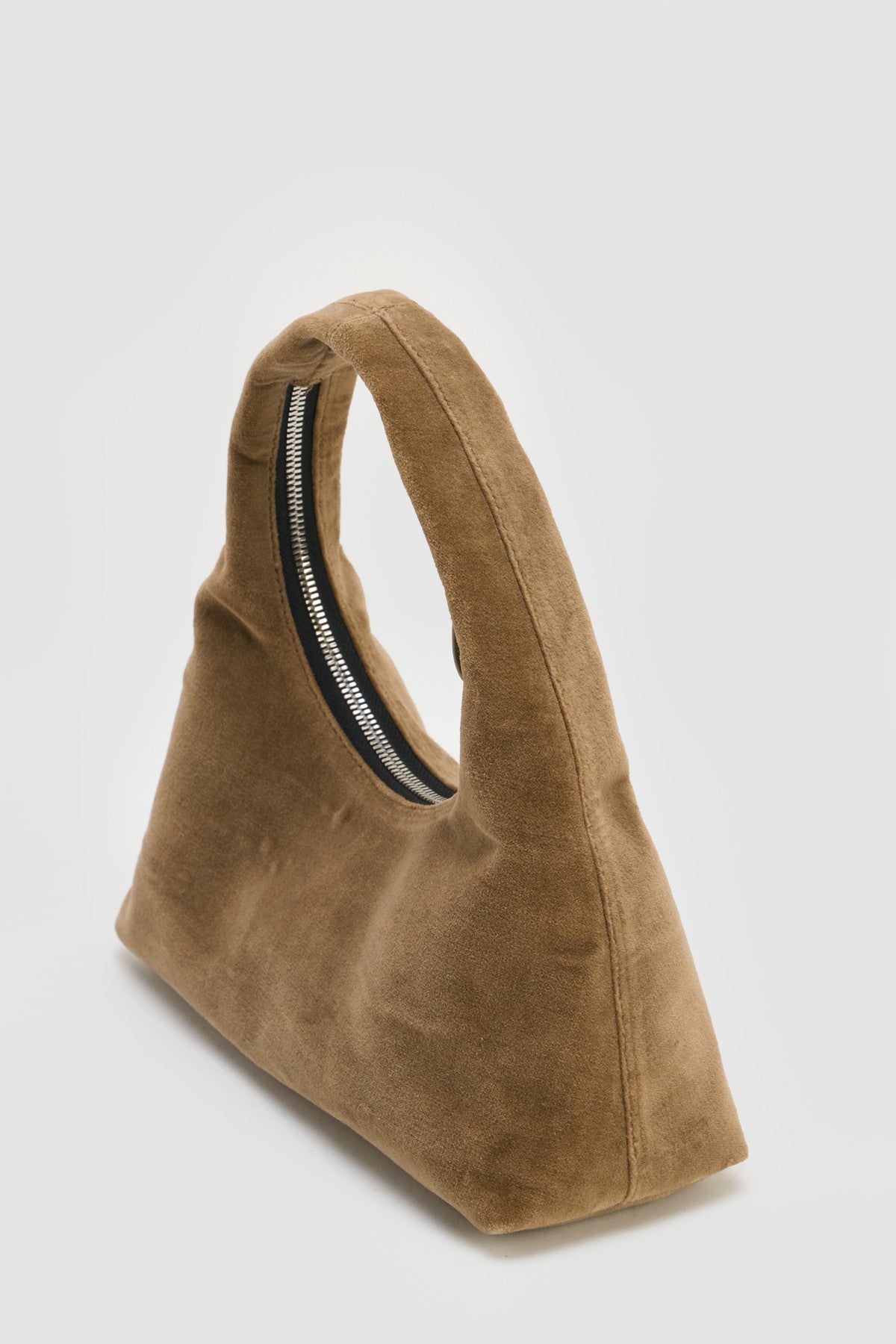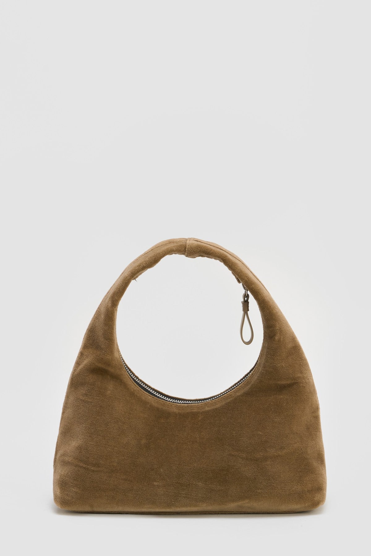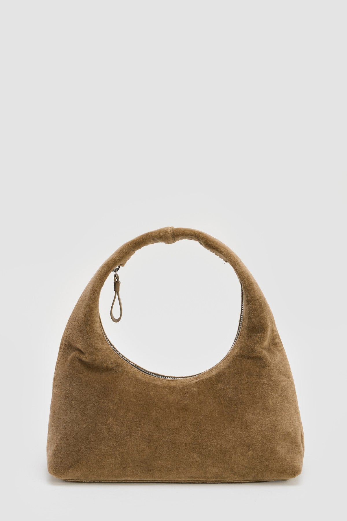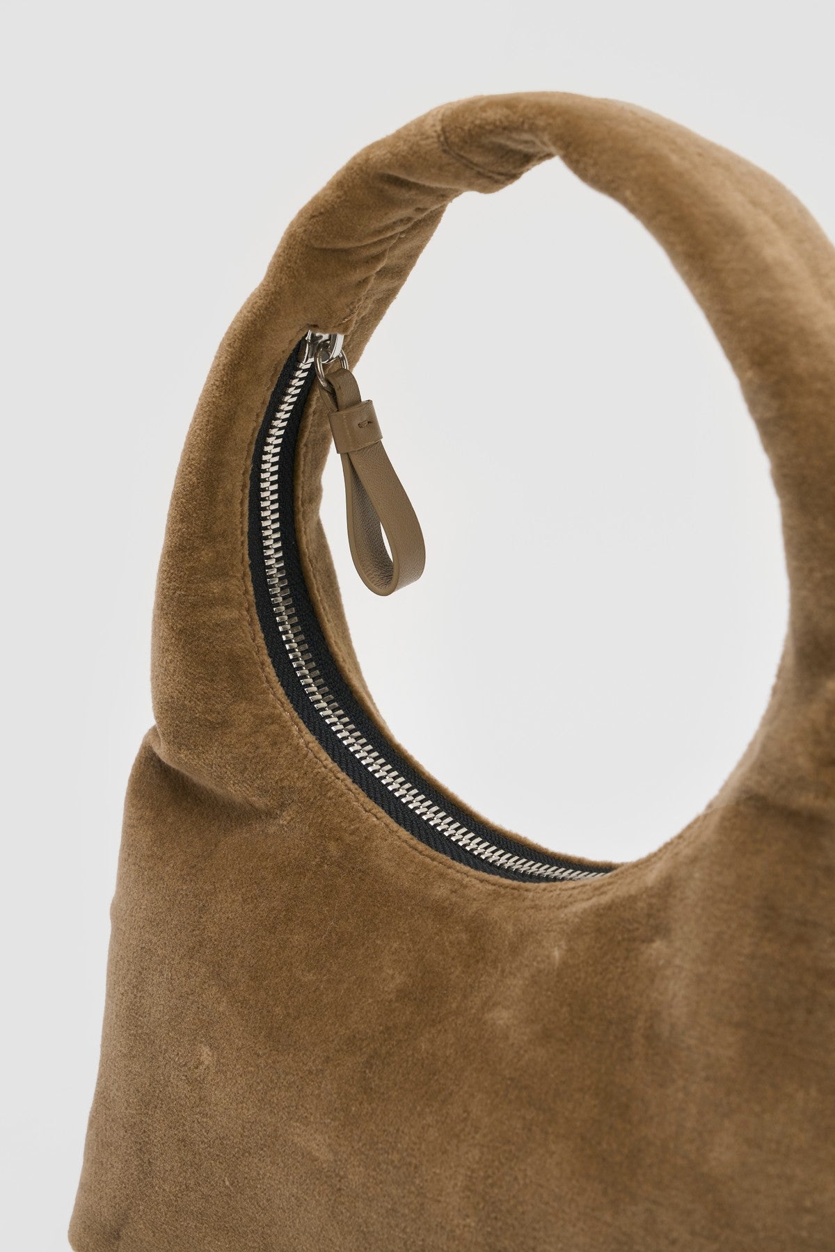 Effortlessly timeless. Crafted from fine ultra-soft velvet with a sumptuous texture and soft lustre. This generously sized handbag features an unconstructed shape with integrated handles together with hand-crafted elasticated velvet creating an innovative longitudinal quilt texture, giving it a statement look. Designed to nestle just under your arm and is adorned with spacious main compartment to carry all your essentials effortlessly. Featured with handle that continues as a gusset and adorned a seamless design. Its striking yet versatile form makes it an ideal day-to-night hand bag.