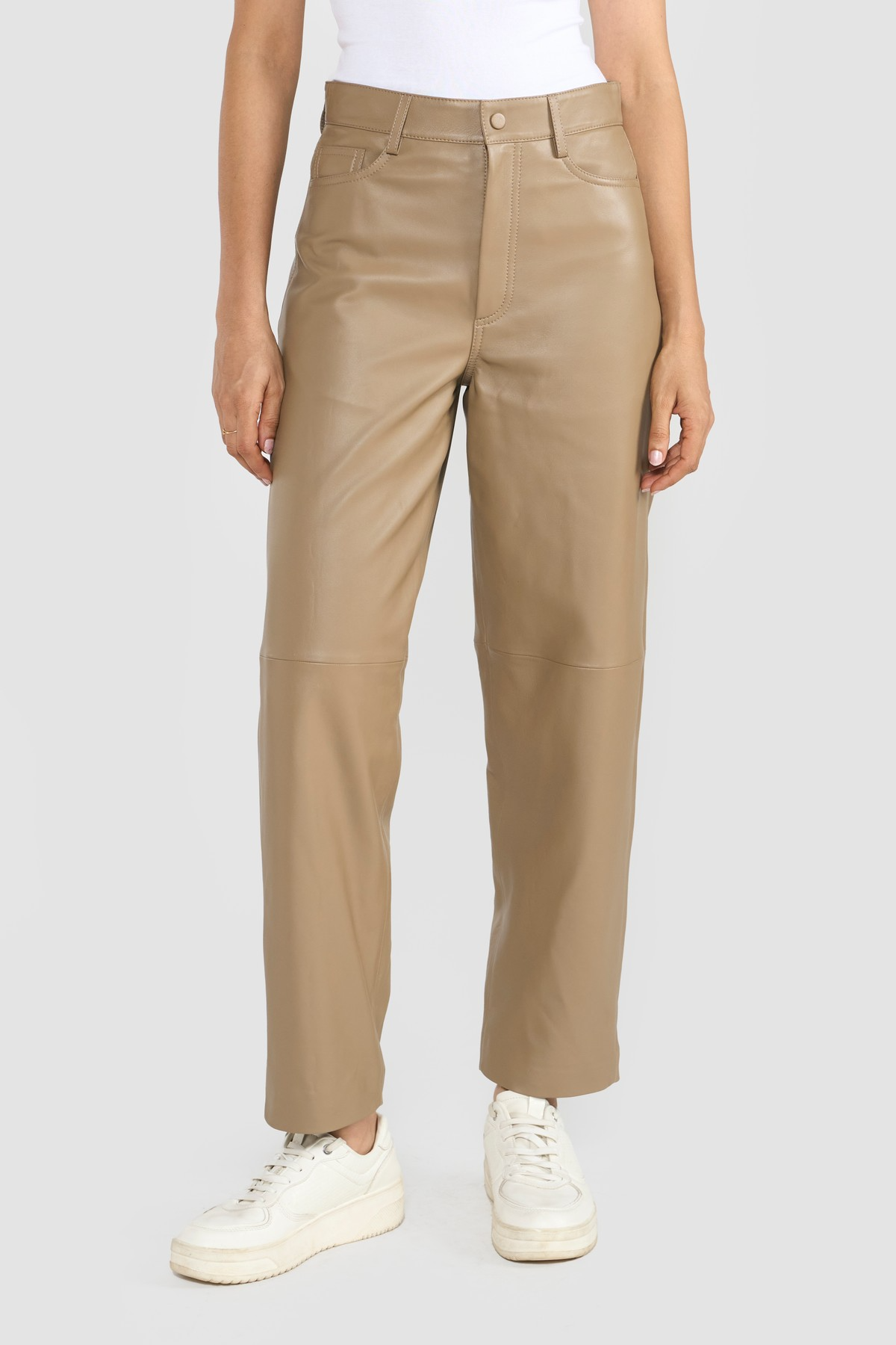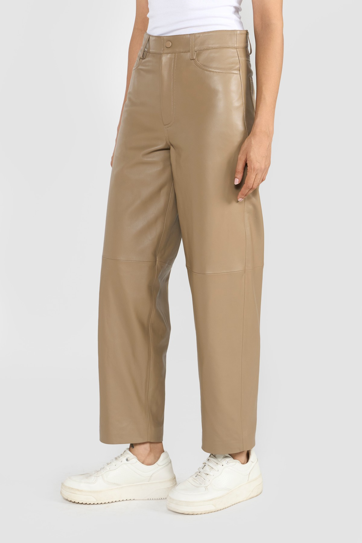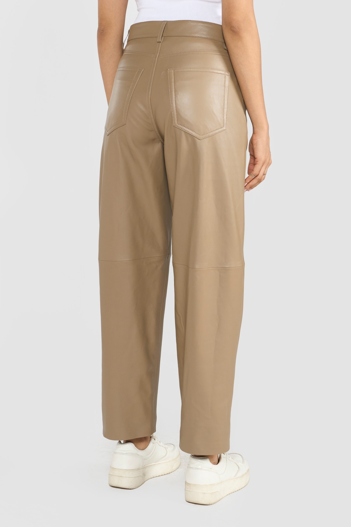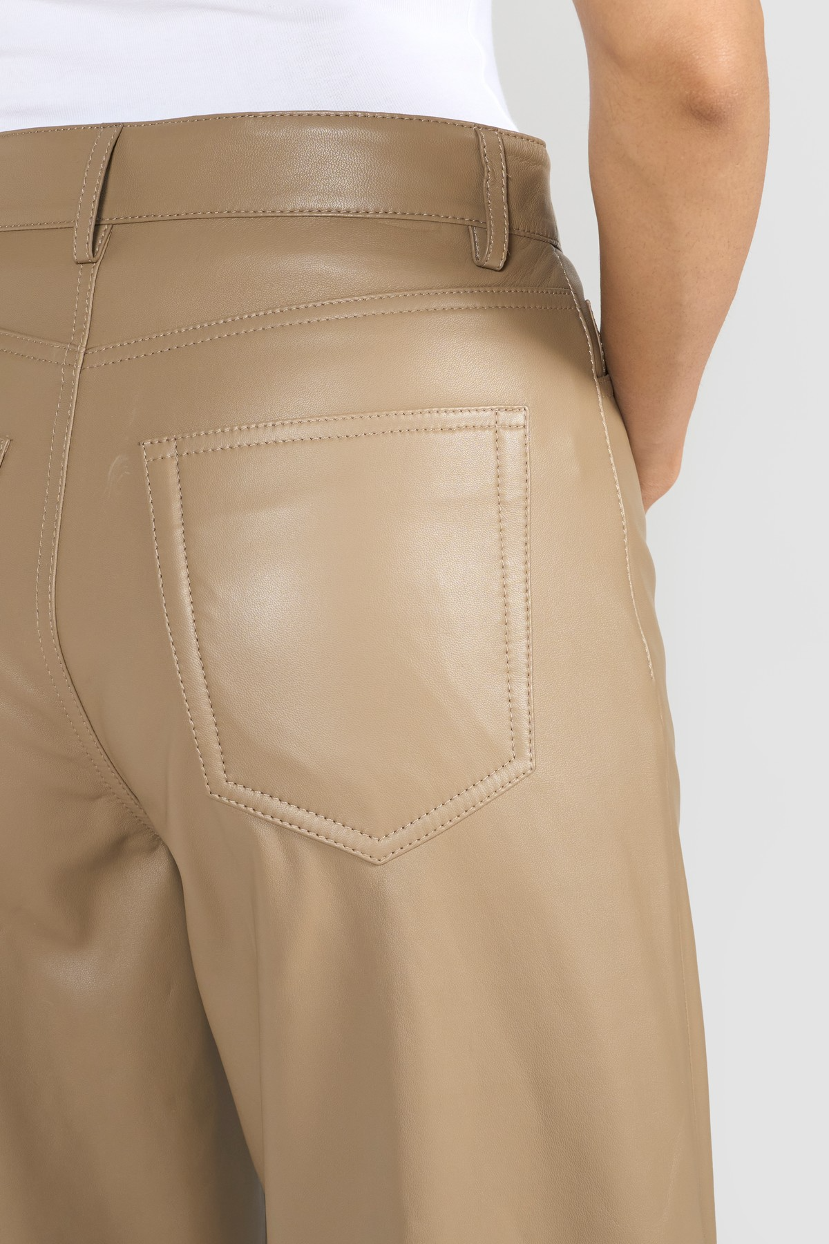 A tailored mid rise trouser with a flattering drape and functional side pockets accentuated with double ring buckel with functional belt closure. Crafted in LWG certified premium nappa leather.
