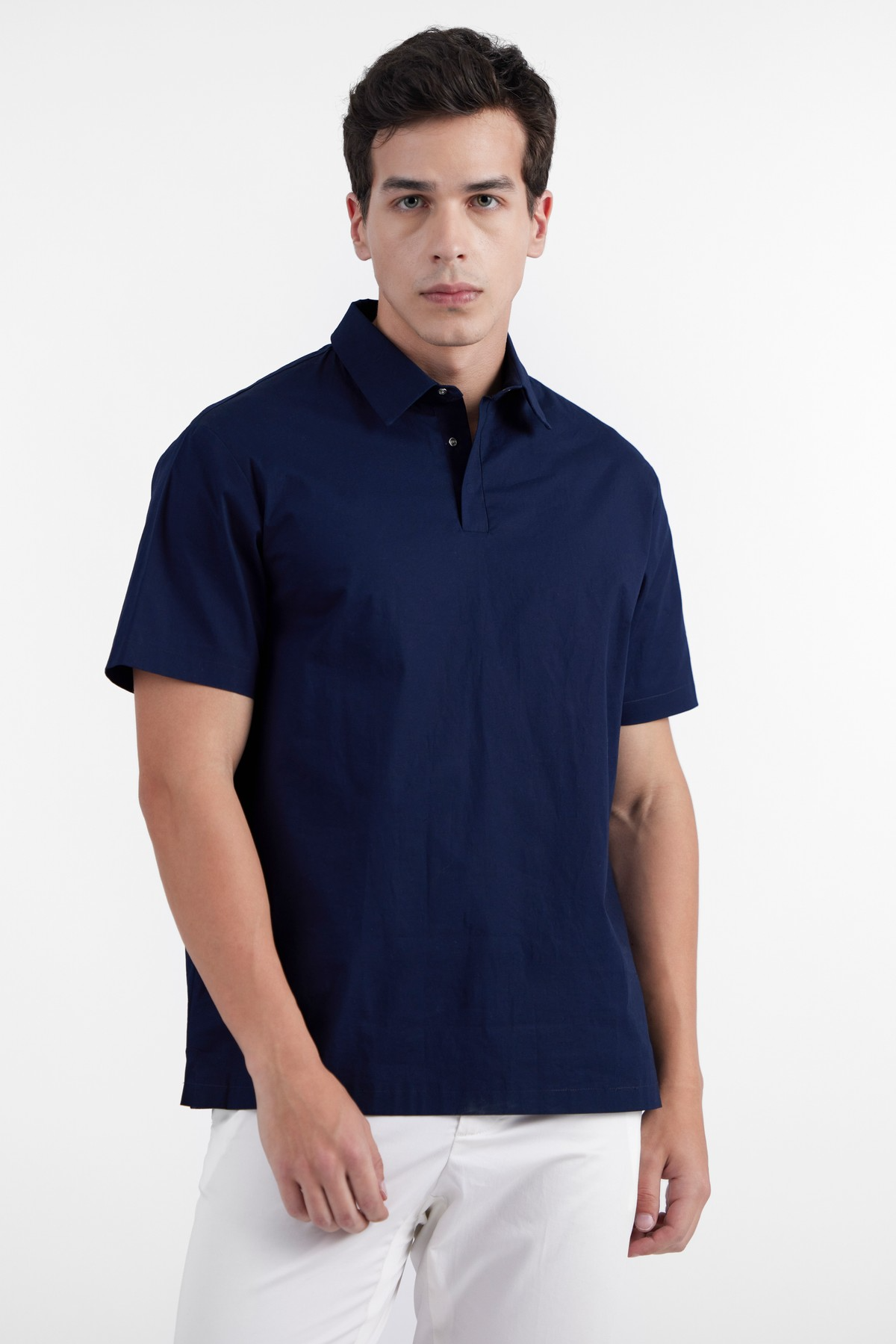 Crafted with responsibly sourced premium, light weight and highly breathable poplin which renders ultimate comfort. Enduring relaxed fit style featured with polo neck, chest pocket, short sleeves and straight hem. Relaxed yet close fitting lines to the body through the chest and shoulder add contemporary edge to this iconic essential.