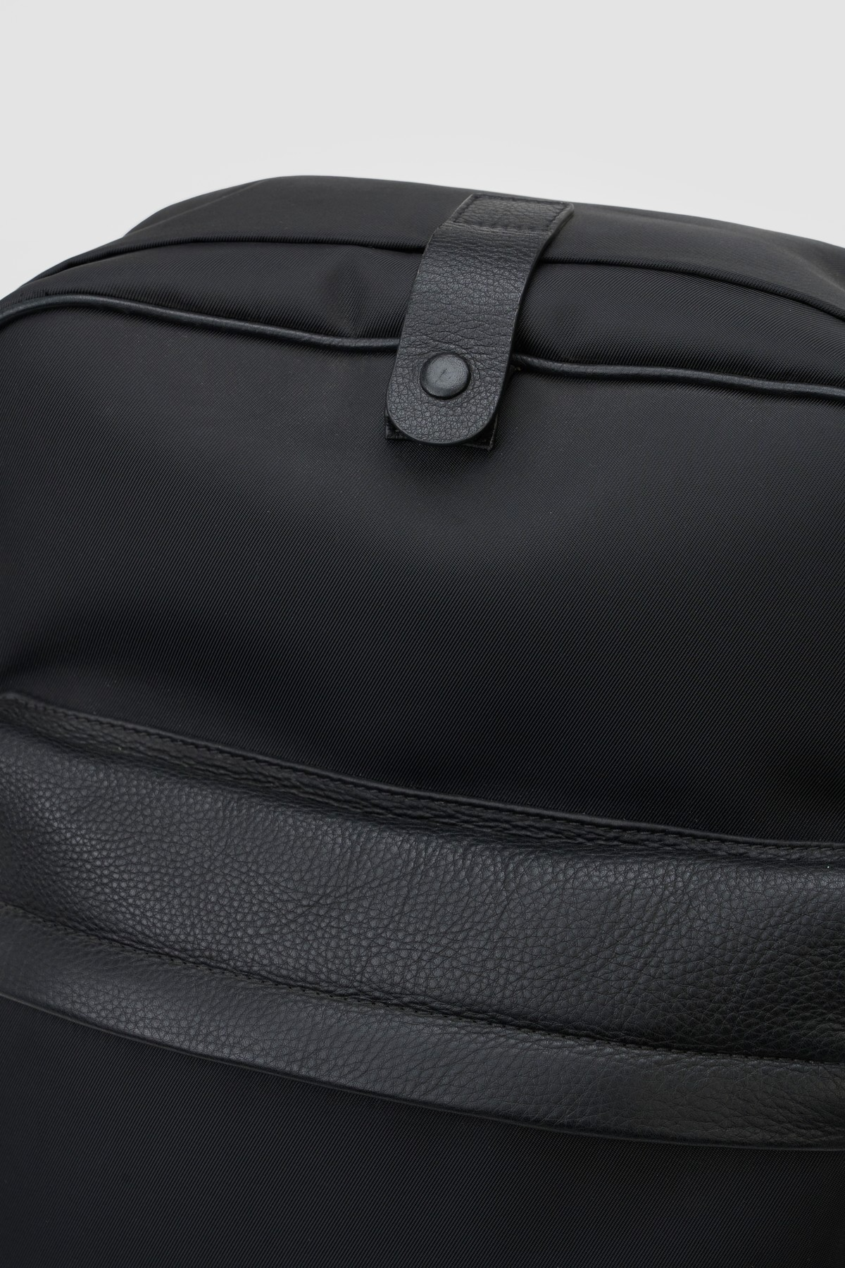 Perona exclusive- Sleek, versatile, and functional — this Black Structured Backpack is crafted for the modern lifestyle. Crafted from premium PU-coated nylon with a refined twill texture and smooth leather trims, it balances minimal aesthetics with practical utility.The spacious main compartment is designed with a dedicated laptop sleeve and secure zip pocket, ensuring organized storage for work or travel. A smooth zip-top fastening, reinforced with a snap-tab detail, keeps belongings protected. At the front, roomy GRS 4.0 certified zipper pockets with a flap closure offer quick access to essentials.For all-day comfort, the backpack is fitted with adjustable padded shoulder straps and a breathable back panel, while its slim, structured silhouette maintains a sharp, professional edge.