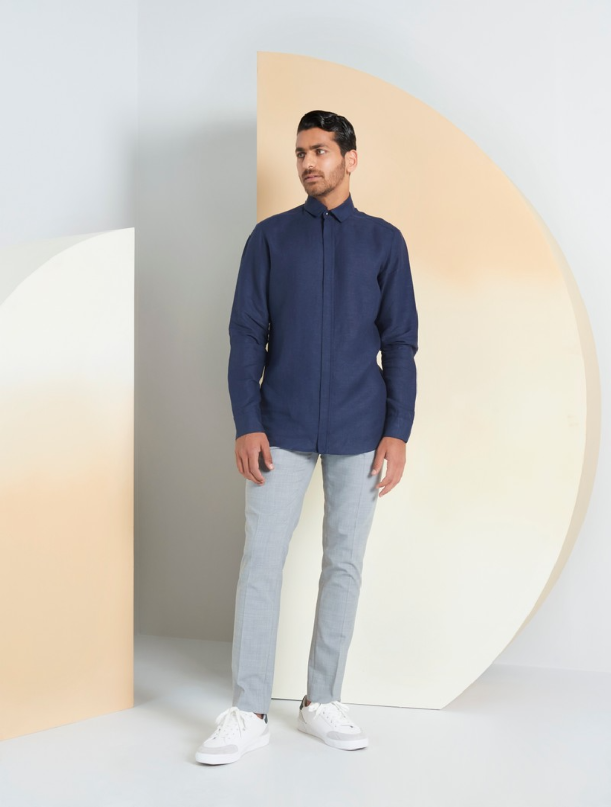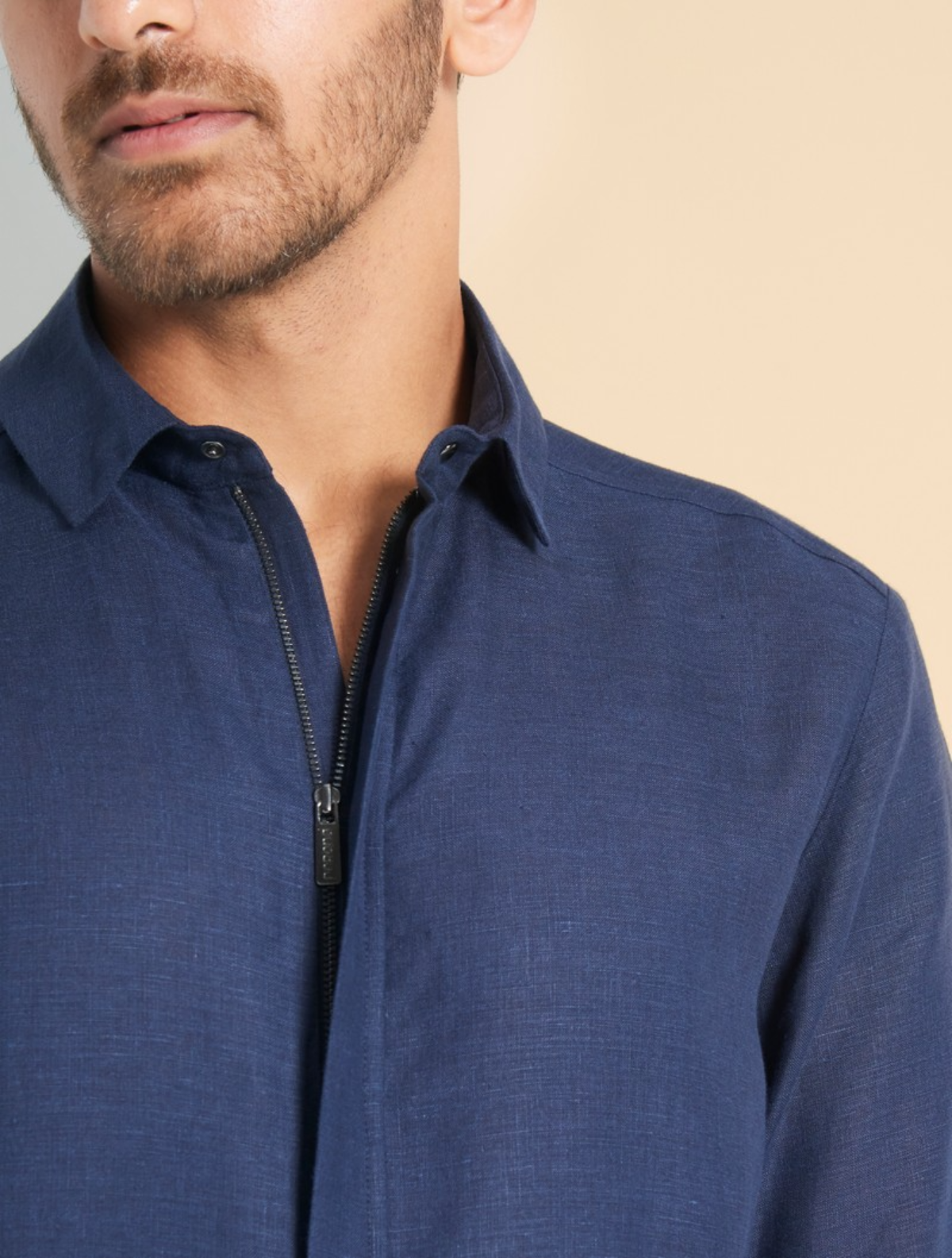 Linen season. Our signature straight shirt with zipper opening is updated in a soft, lightweight linen for the warmer months. This shirt is a mainstay for every contemporary wardrobe. Detailed with metal snaps and concealed placket making it versatile enough for layering as well as to wear on its own. For a look that exudes effortless confidence.Regular-fit