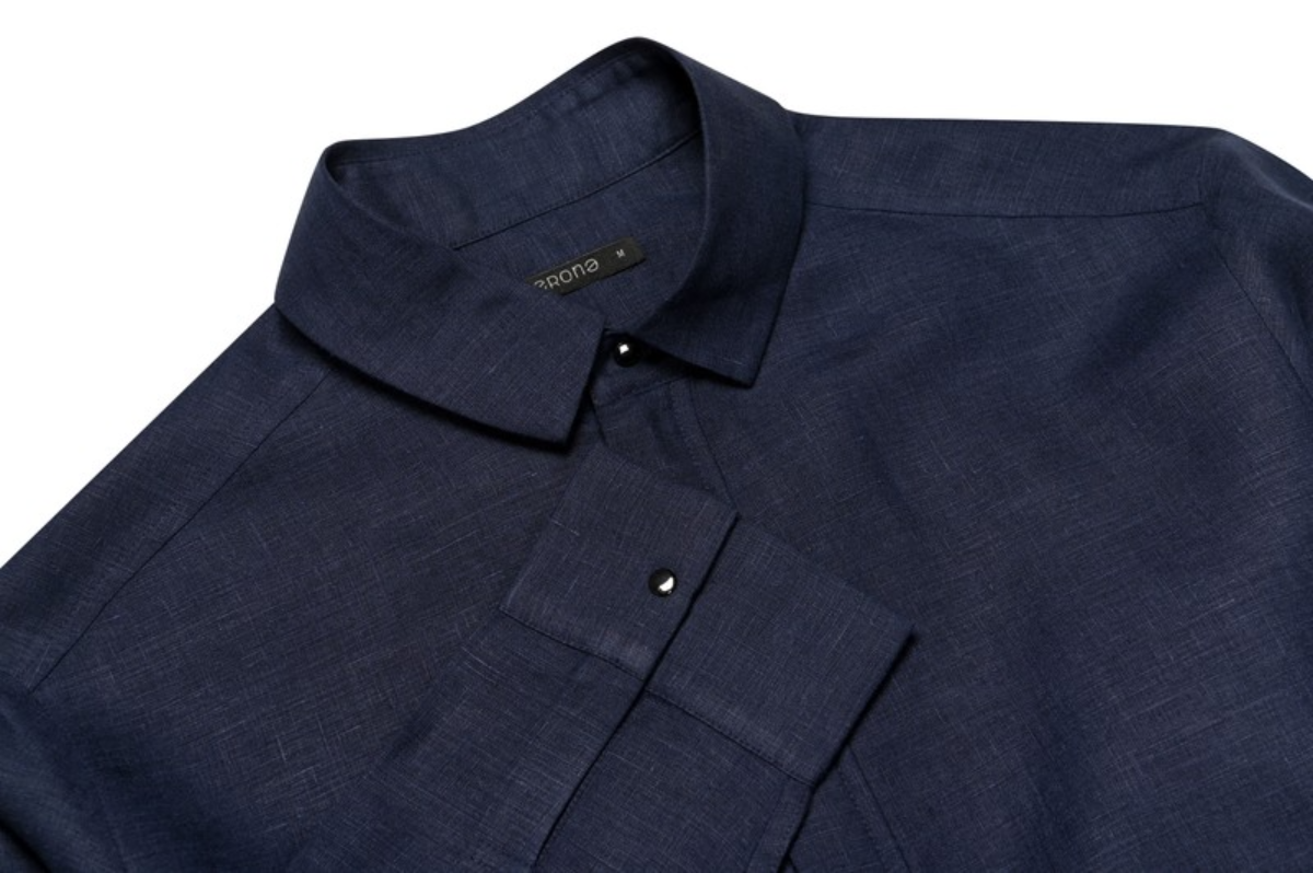 This garment is crafted from premium linen fabric certified to European Flax Standard, complying with environmental practices of farming. This fabric is cultivated using zero irrigation system, low use of fertilizer & pesticides, and no waste - all the plant is used.