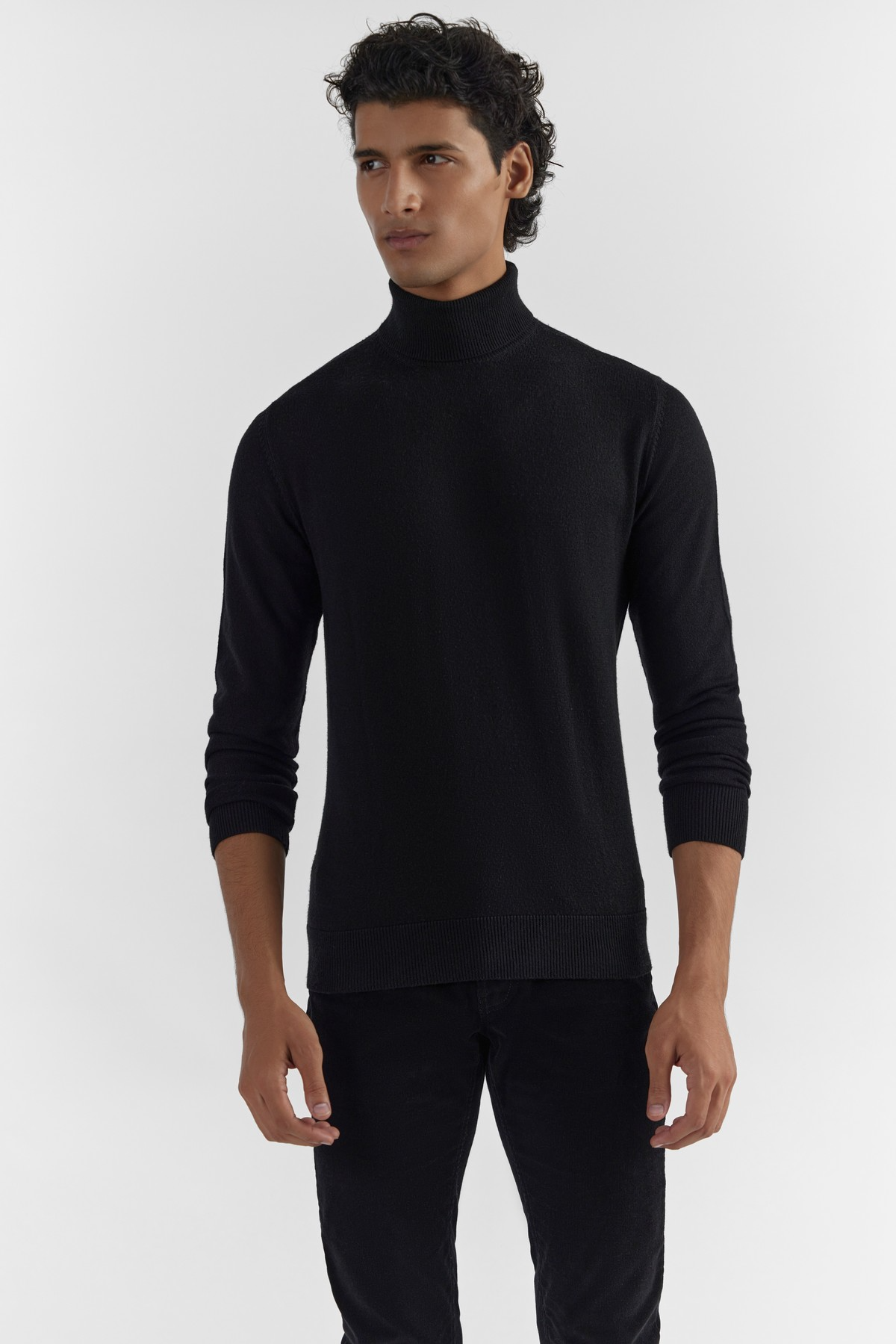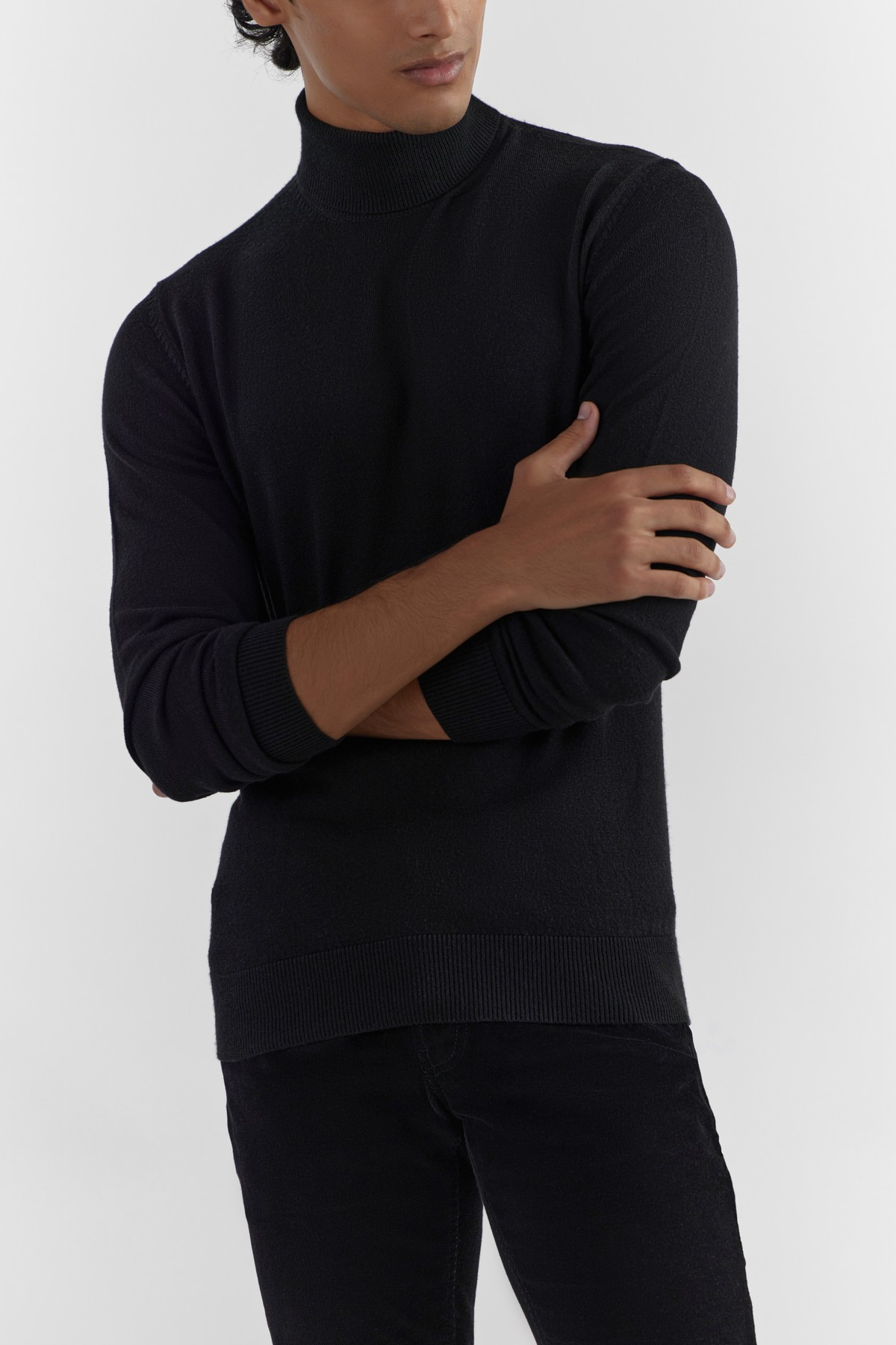 Ultra-fine premium merino knitted in a precise silhouette. Curated style offering regular fit with proportions that remain close to the body. Accentuated with turtleneck, ribbed trims and full sleeves.- Model height is 6'1" ft (185 cm ) and is wearing size M