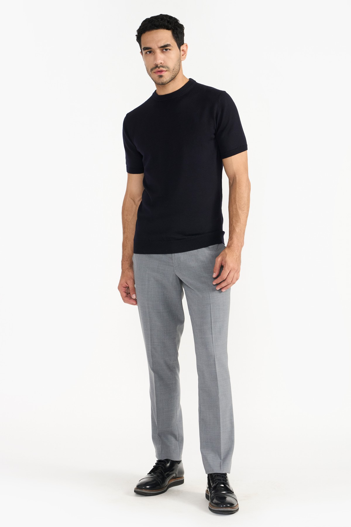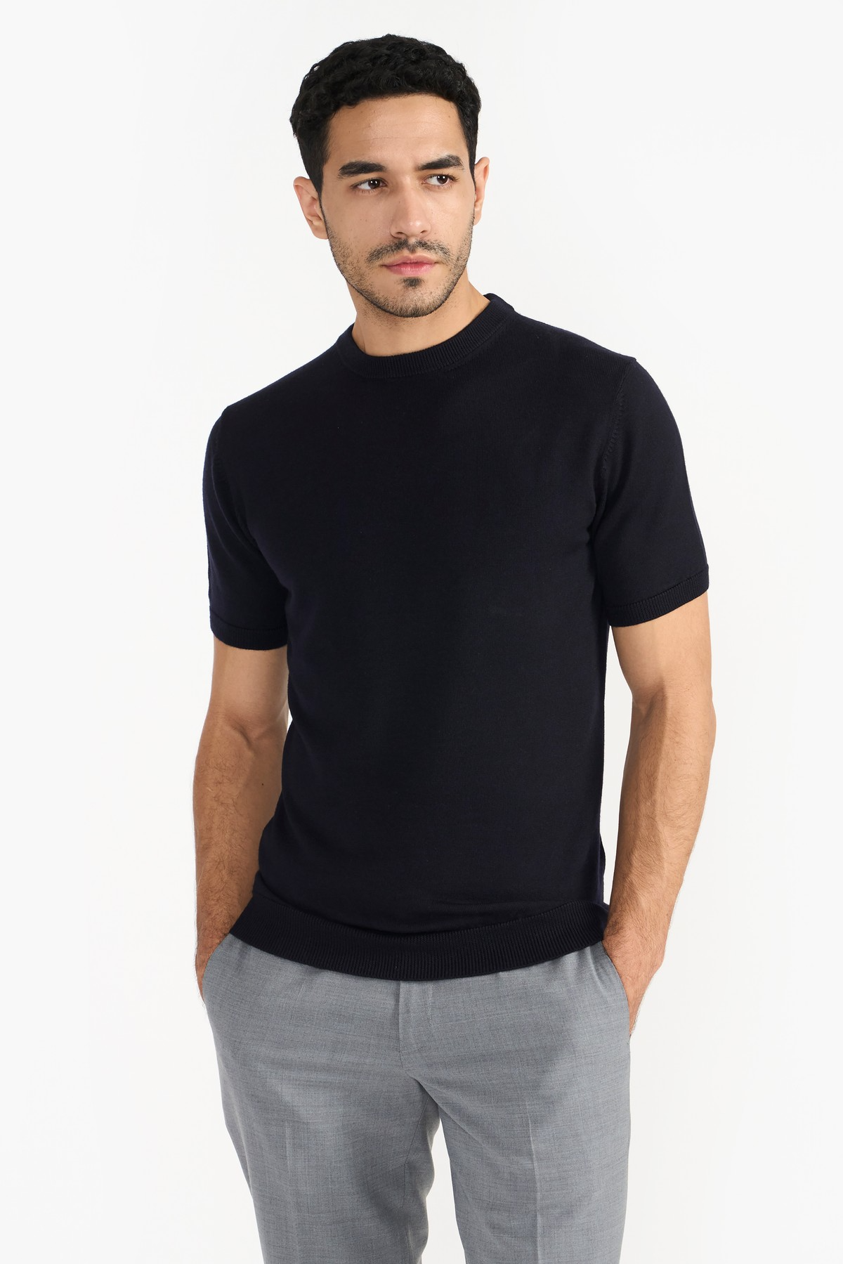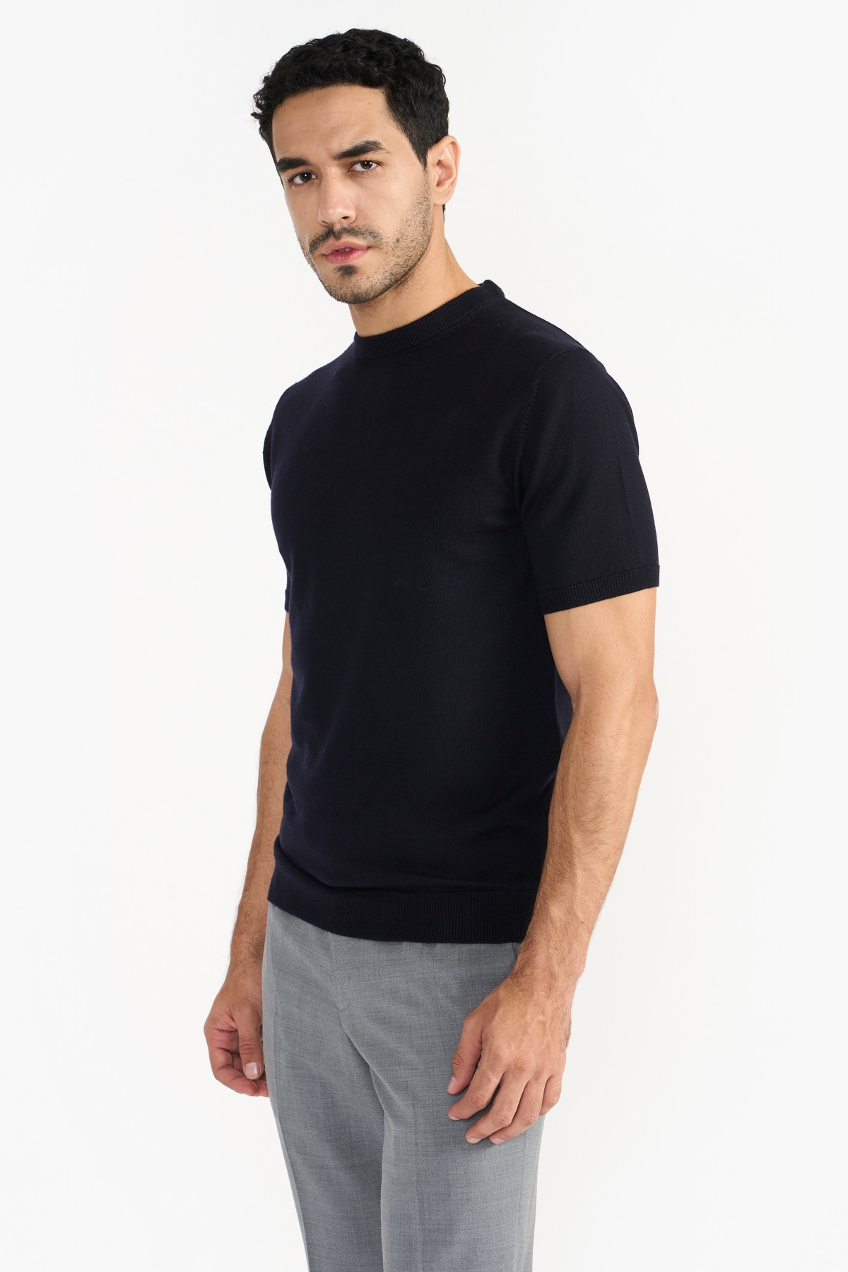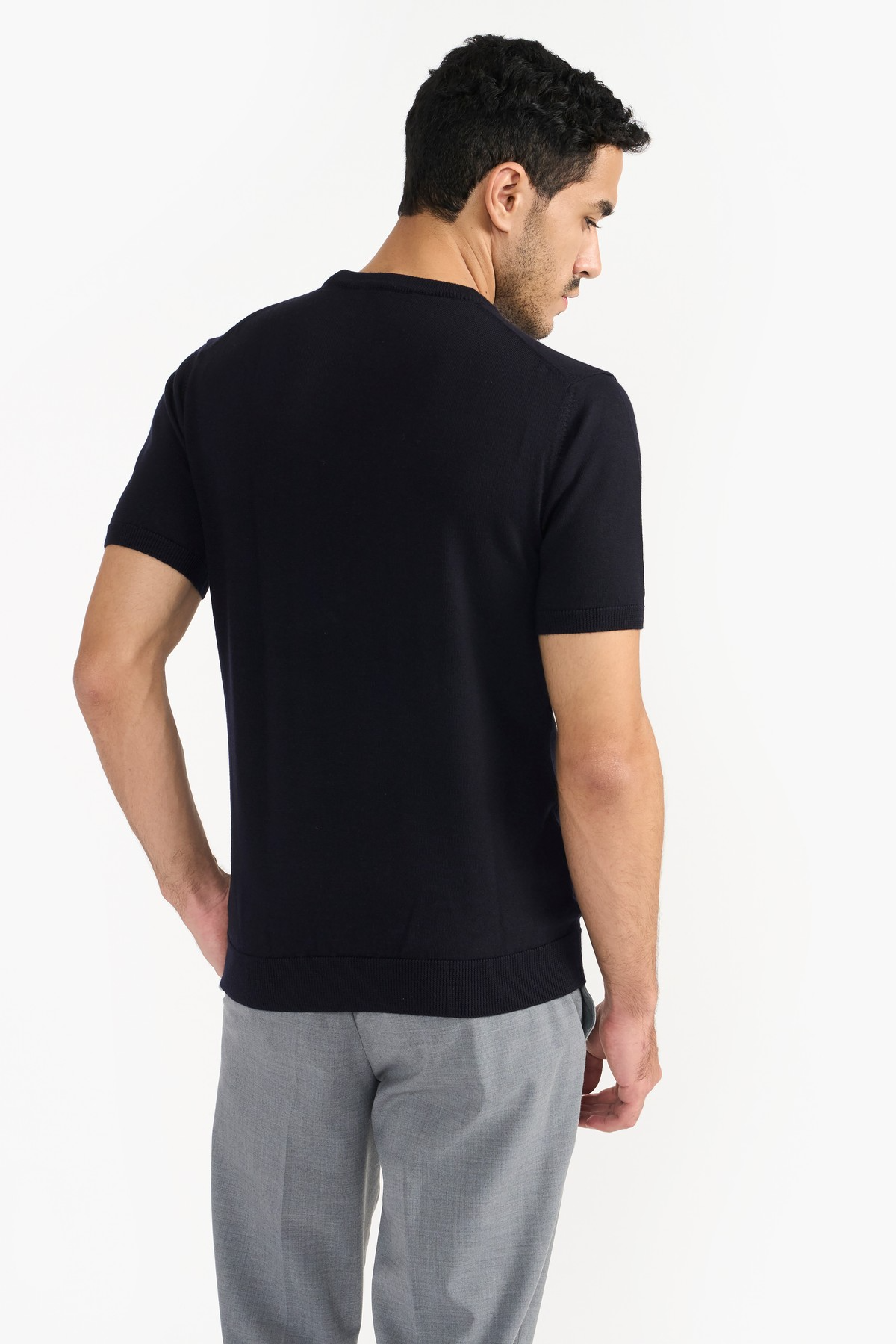 Ultrafine premium merino in precise silhouette. This crewneck sweater is lightweight and soft to touch for a luxurious feel. Featured with ribbed trims, fine knit pattern, short sleeves and regular fit. The natural merino fibre's superior quality enhances comfort and has antibacterial properties.