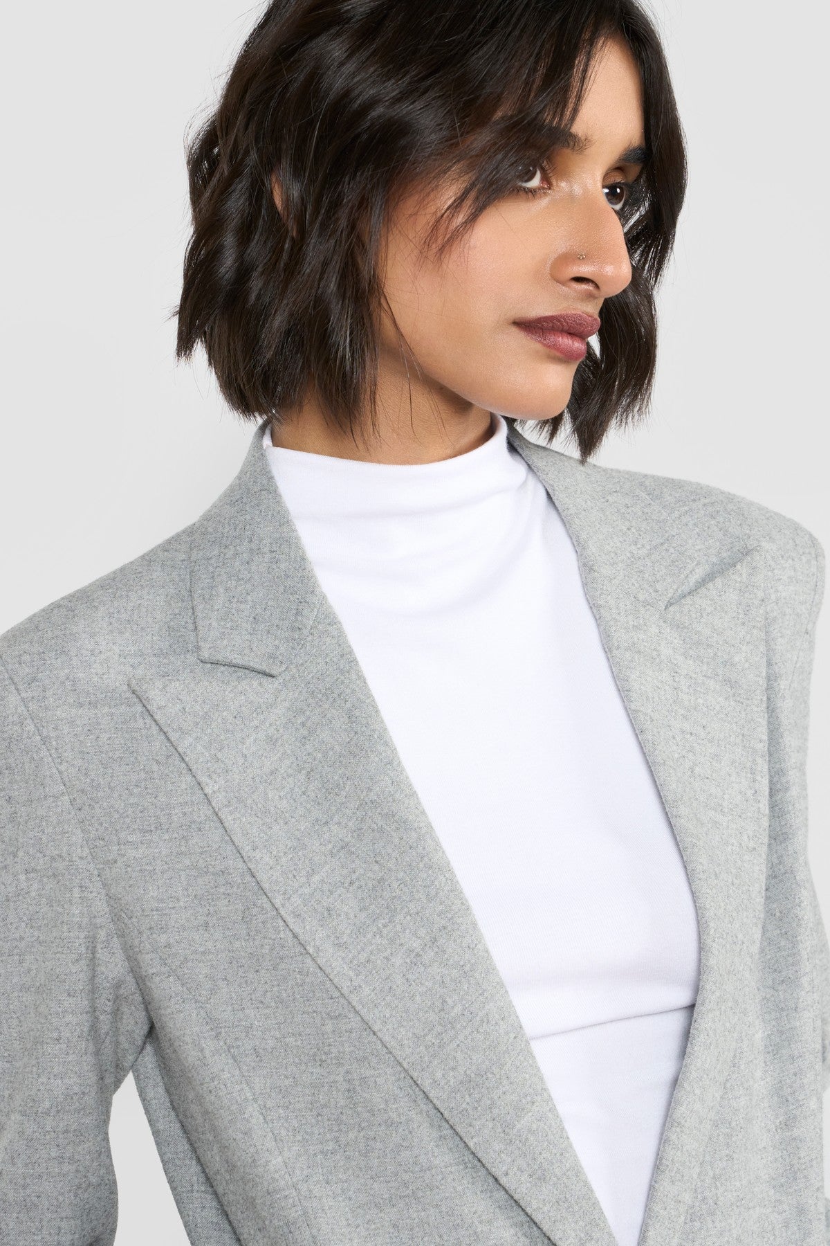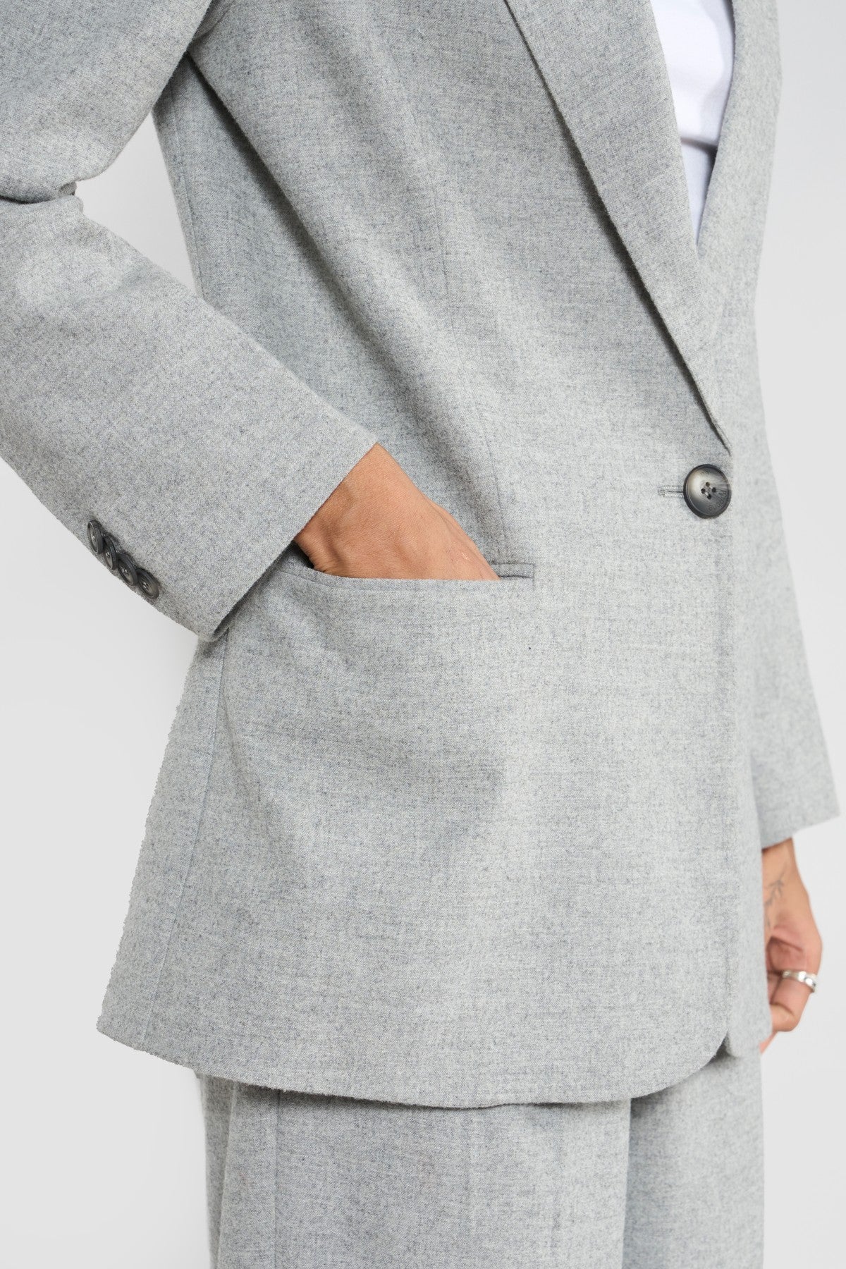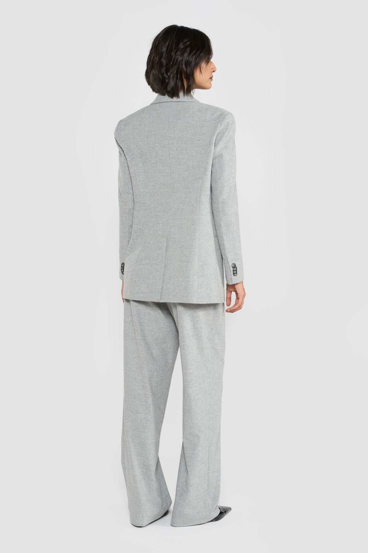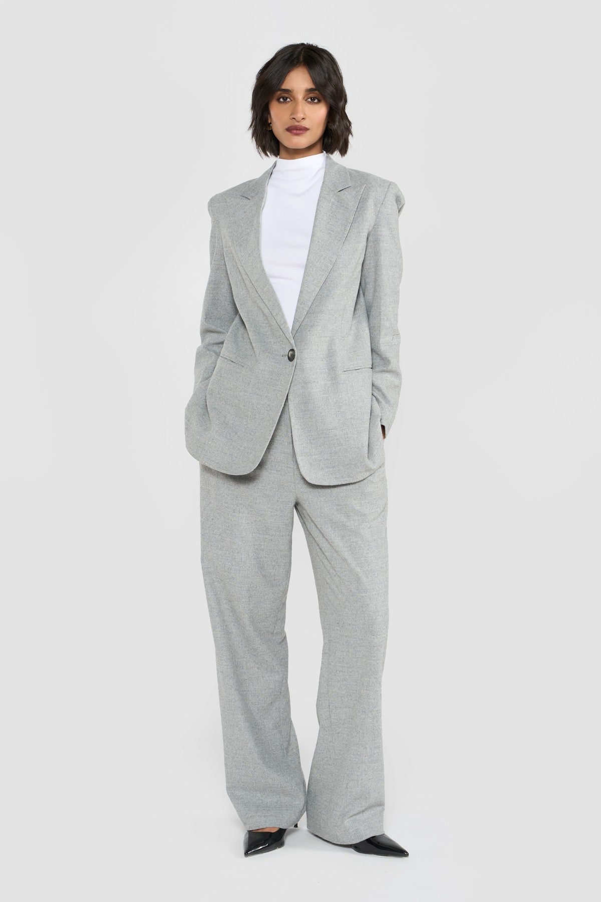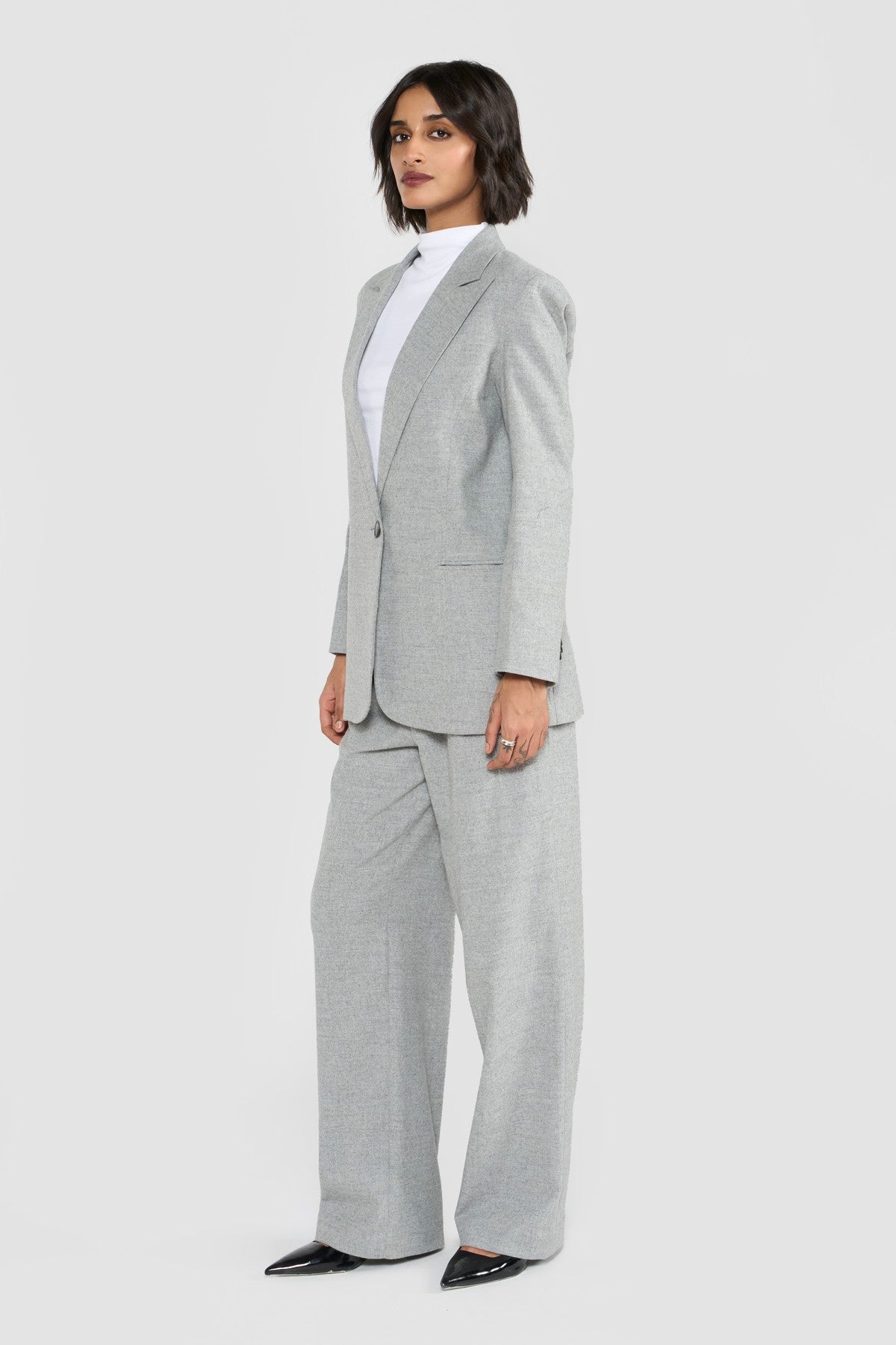 Crafted from OEKO-TEX® Certified premium wool blend, this meticulously tailored relaxed fit blazer is accented with padded shoulders and pointed peak lapels. The side panels, back darts and side flap pockets further accentuate the silhouette. Pair it with our exclusive RAYA trousers for a complete iconic look.