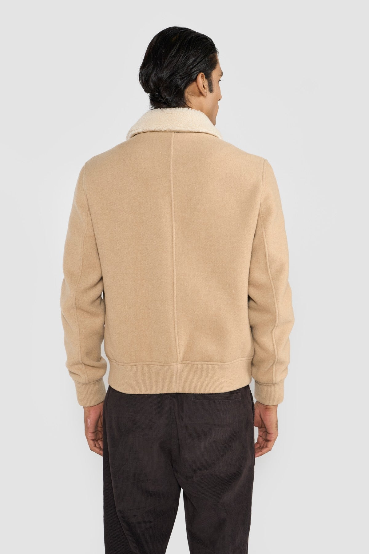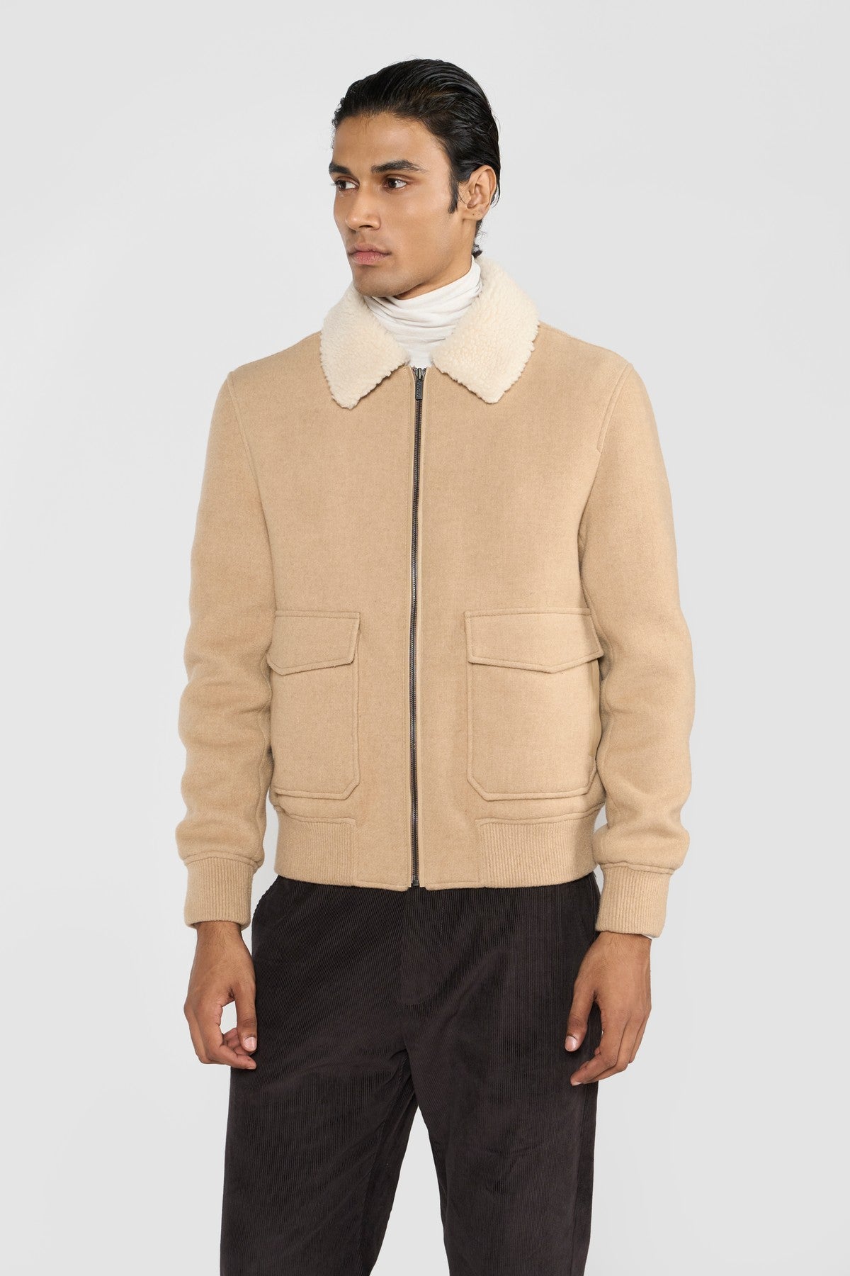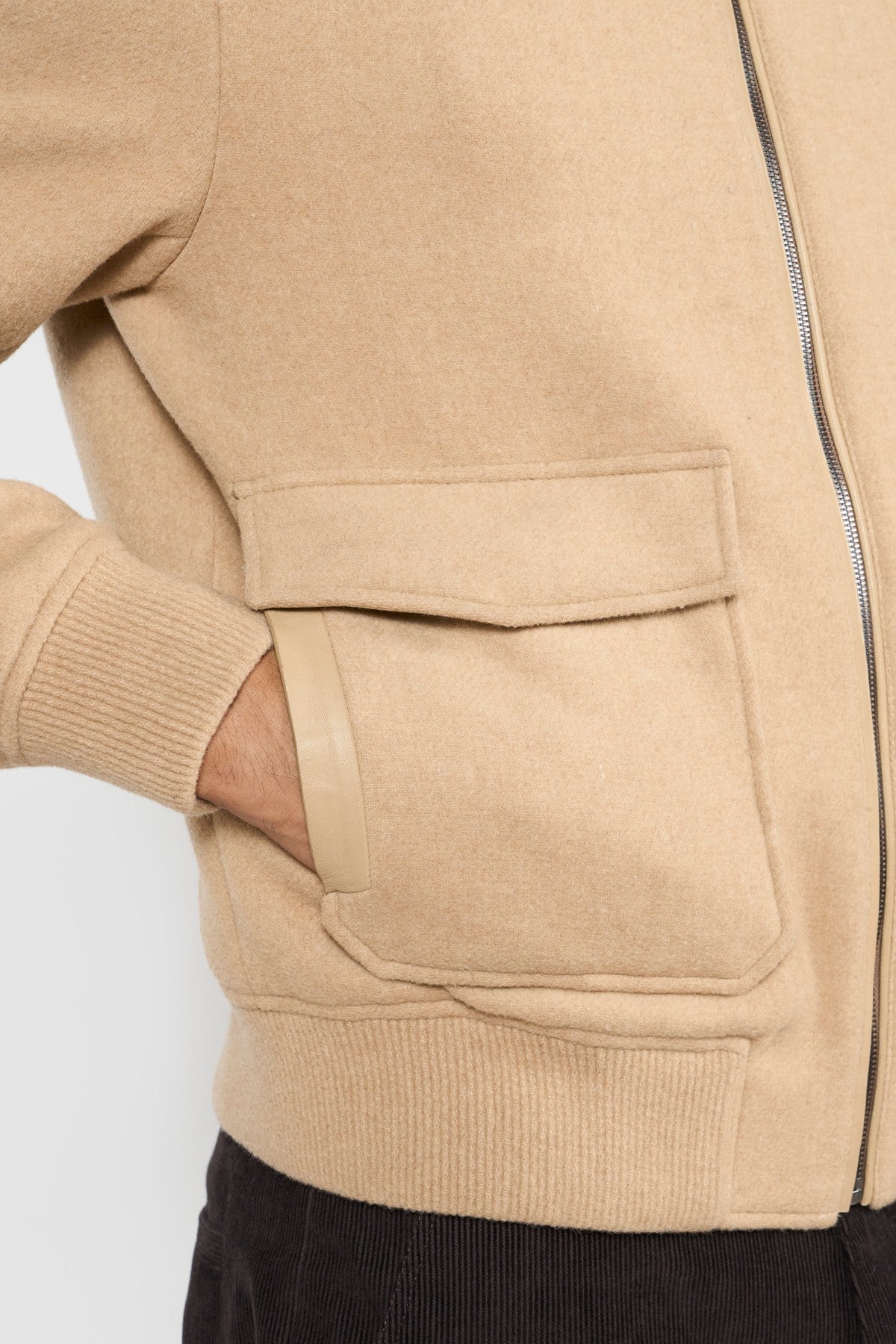 Crafted in luxurious Italian MWool® certified by the Global Recycled Standard (GRS). A contemporary bomber jacket cut to a relaxed fit is accentuated with LWG certified leather trim detail. Featured with premium zipper closure, exclusive wool rib bottom hem, flap pockets and adjustable cuff opening. A modern-day wardrobe staple.A premium, low-impact fiber that redefines sustainability. Our commitment to quality begins with a meticulous selection and thorough testing of the finest raw materials. Utilizing an innovative mechanical recycling process, we transform pre- and post-consumer garments and scraps into new textiles, all while minimizing environmental impact. Our innovative Recype® process creates vibrant, dye-free colors, enhancing our eco-friendly production.Certified by the Global Recycled Standard (GRS), MWool® ensures traceability and compliance with social and environmental standards at every production stage. By using recycled materials, MWool® eliminates the need for new wool, promoting a circular economy.Compared to virgin wool, MWool® reduces climate change impact by 99.2%, water use by 99.9%, and energy consumption by 93.3%, based on a life cycle assessment in line with international standards. MWool® fibers are also biodegradable and safe for marine environments, as confirmed by studies with the Bioscience Research Center and the University of Trieste. Experience the future of sustainable fashion with MWool®.Relaxed fit