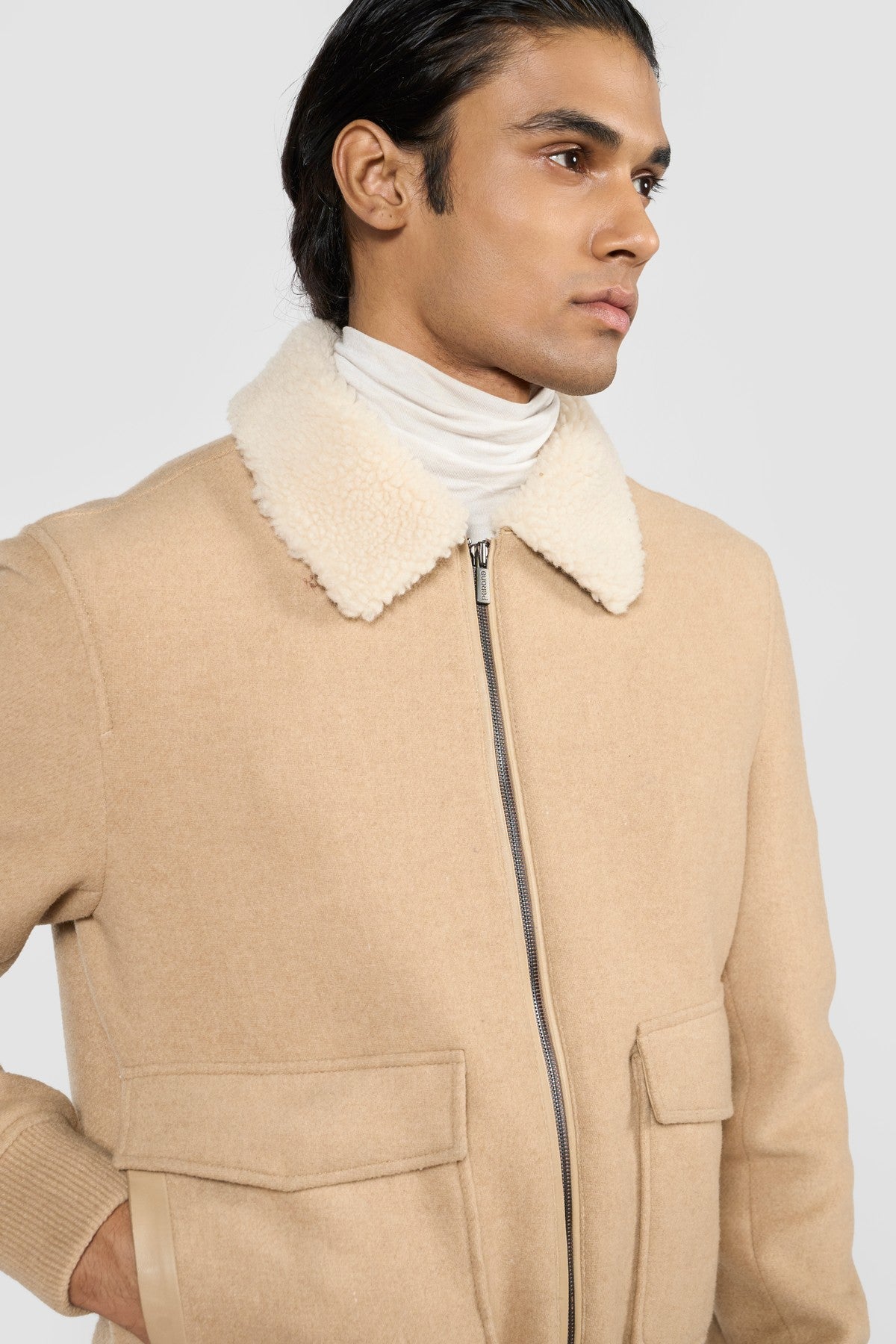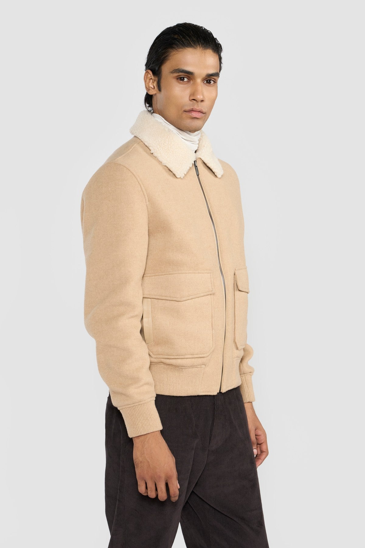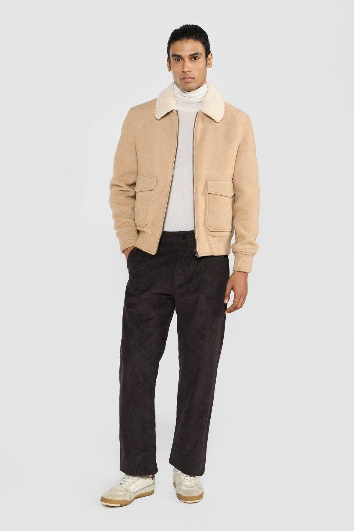 Crafted in luxurious Italian MWool® certified by the Global Recycled Standard (GRS). A contemporary bomber jacket cut to a relaxed fit is accentuated with LWG certified leather trim detail. Featured with premium zipper closure, exclusive wool rib bottom hem, flap pockets and adjustable cuff opening. A modern-day wardrobe staple.A premium, low-impact fiber that redefines sustainability. Our commitment to quality begins with a meticulous selection and thorough testing of the finest raw materials. Utilizing an innovative mechanical recycling process, we transform pre- and post-consumer garments and scraps into new textiles, all while minimizing environmental impact. Our innovative Recype® process creates vibrant, dye-free colors, enhancing our eco-friendly production.Certified by the Global Recycled Standard (GRS), MWool® ensures traceability and compliance with social and environmental standards at every production stage. By using recycled materials, MWool® eliminates the need for new wool, promoting a circular economy.Compared to virgin wool, MWool® reduces climate change impact by 99.2%, water use by 99.9%, and energy consumption by 93.3%, based on a life cycle assessment in line with international standards. MWool® fibers are also biodegradable and safe for marine environments, as confirmed by studies with the Bioscience Research Center and the University of Trieste. Experience the future of sustainable fashion with MWool®.Relaxed fit