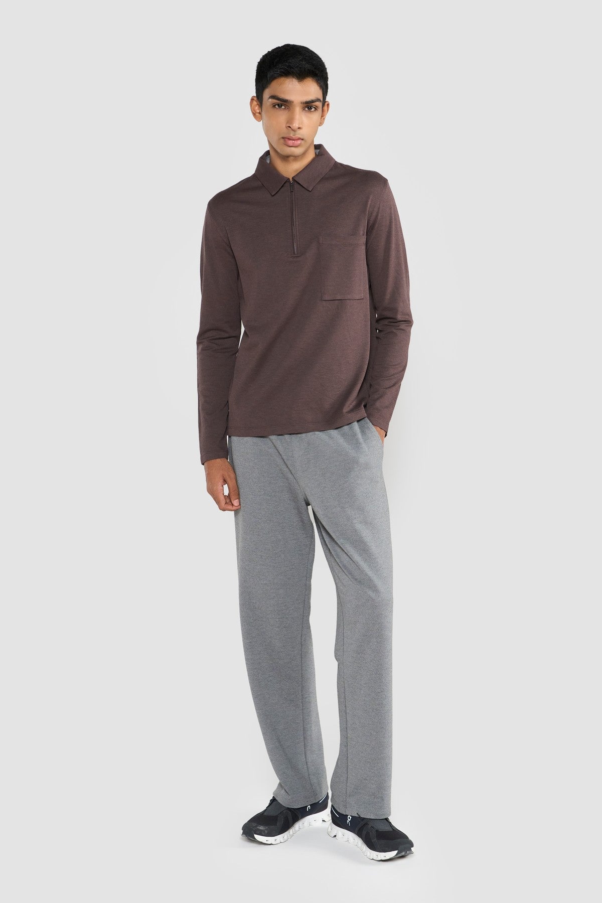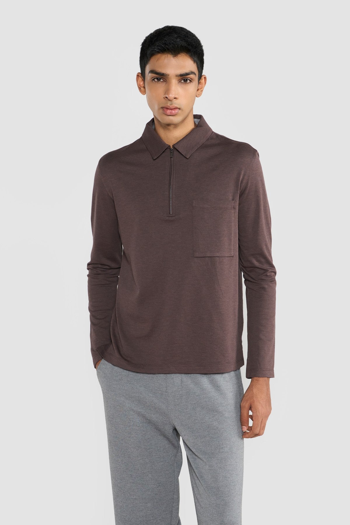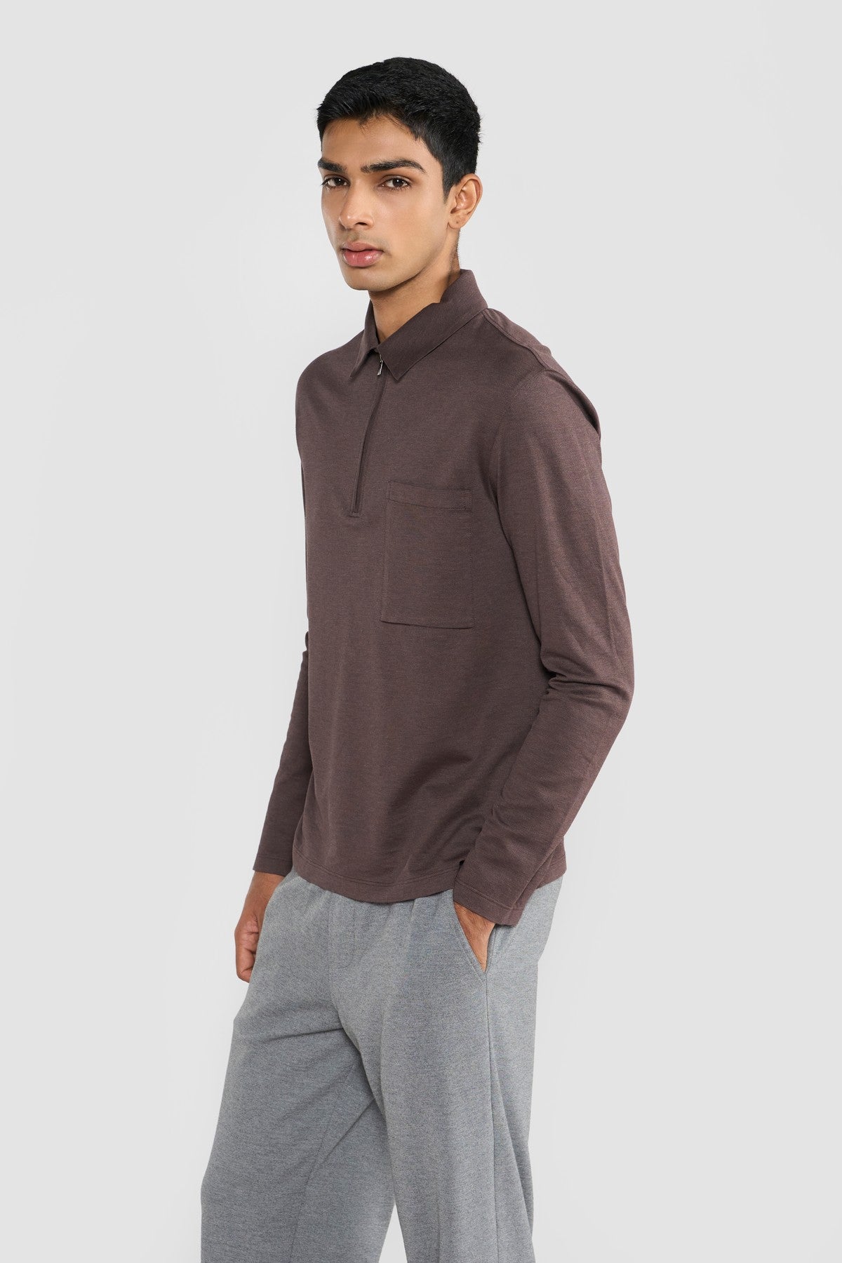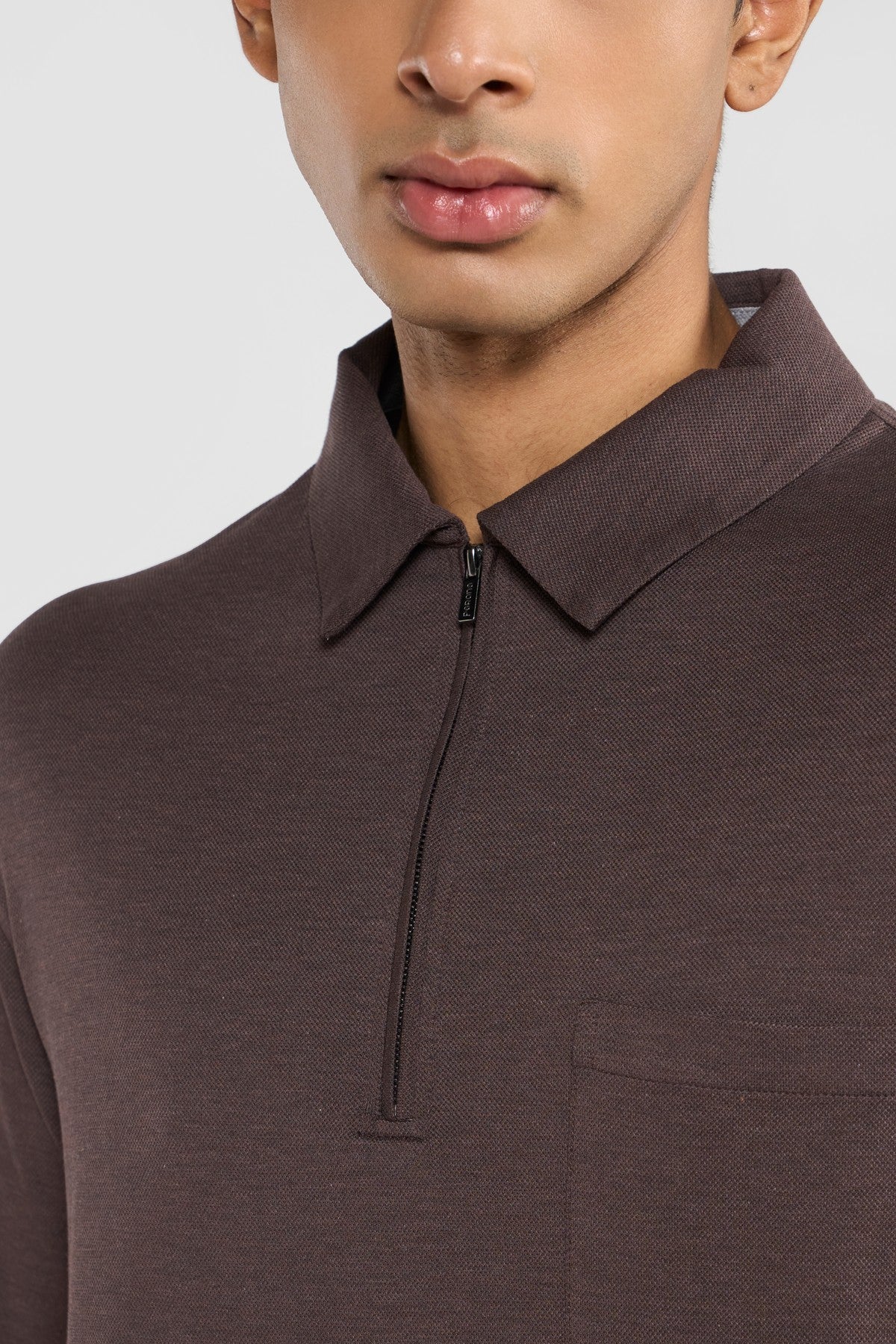 Crafted in premium Italian cotton piqué, this polo reflects Perona’s refined approach to modern essentials.A subtle two-tone mélange effect, achieved through tonal dual-colored yarns, adds depth to the clean silhouette without distraction.Finished with an aluminum-tone zipper for a contemporary edge, the slim profile, polo collar, single bottom gusseted chest pocket, full sleeves and muted grey palette create a look that is effortless, elevated, and quietly confident. The understated total taupe beige weave complements the fabric's mélange finish, offering a polished, versatile look that transitions effortlessly from casual daywear to smart-casual evenings.Relaxed Fit