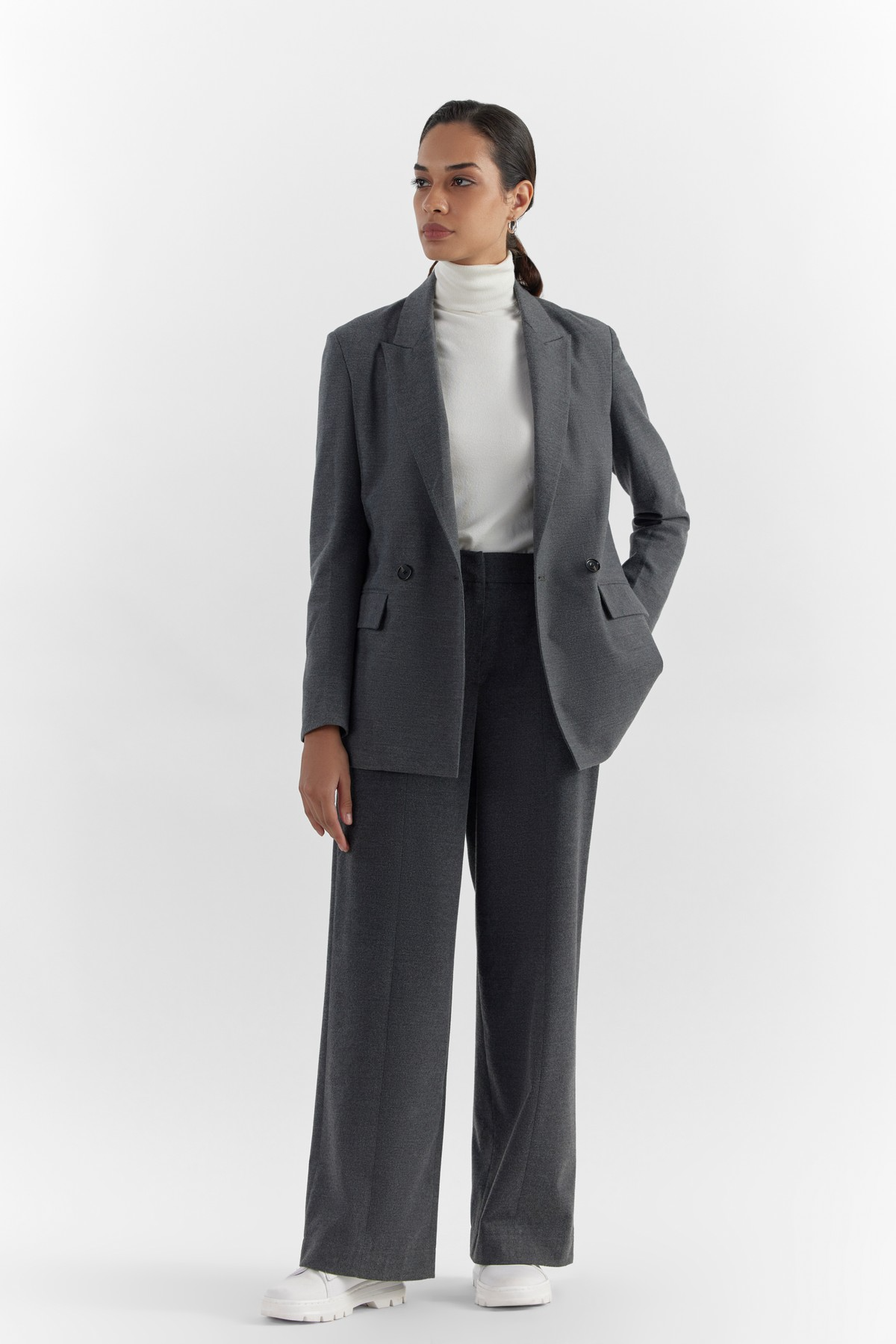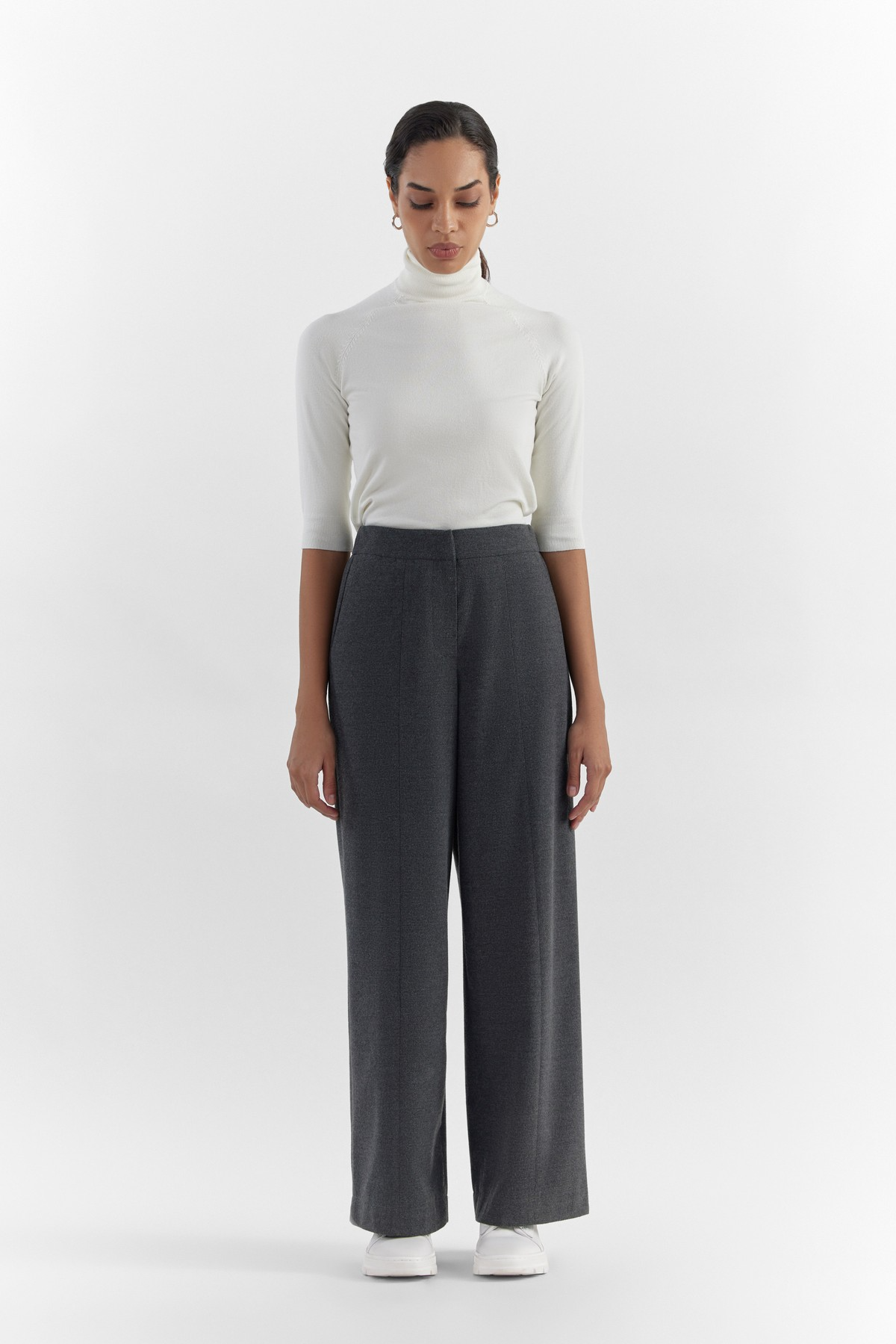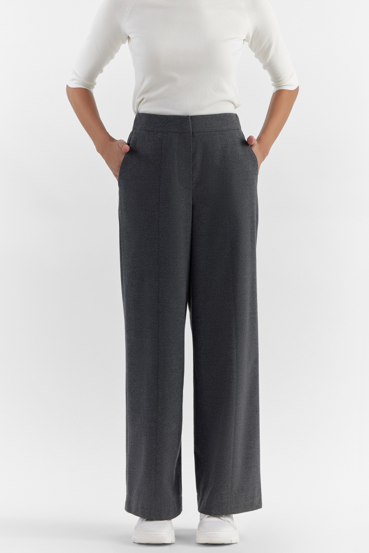These high-waisted tapered trousers are crafted from a breathable ECOVERA™ viscose blend melange. They are designed to have flattering pressed creases, front pleats, back darts and two side pockets. ECOVERA certified viscose fibres are derived from certified renewable wood sources using an eco-responsible production process. Pair it with our exclusive Ursula blazer for a complete iconic look.- Model height is 5'7" ft (170 cm ) and is wearing size 28