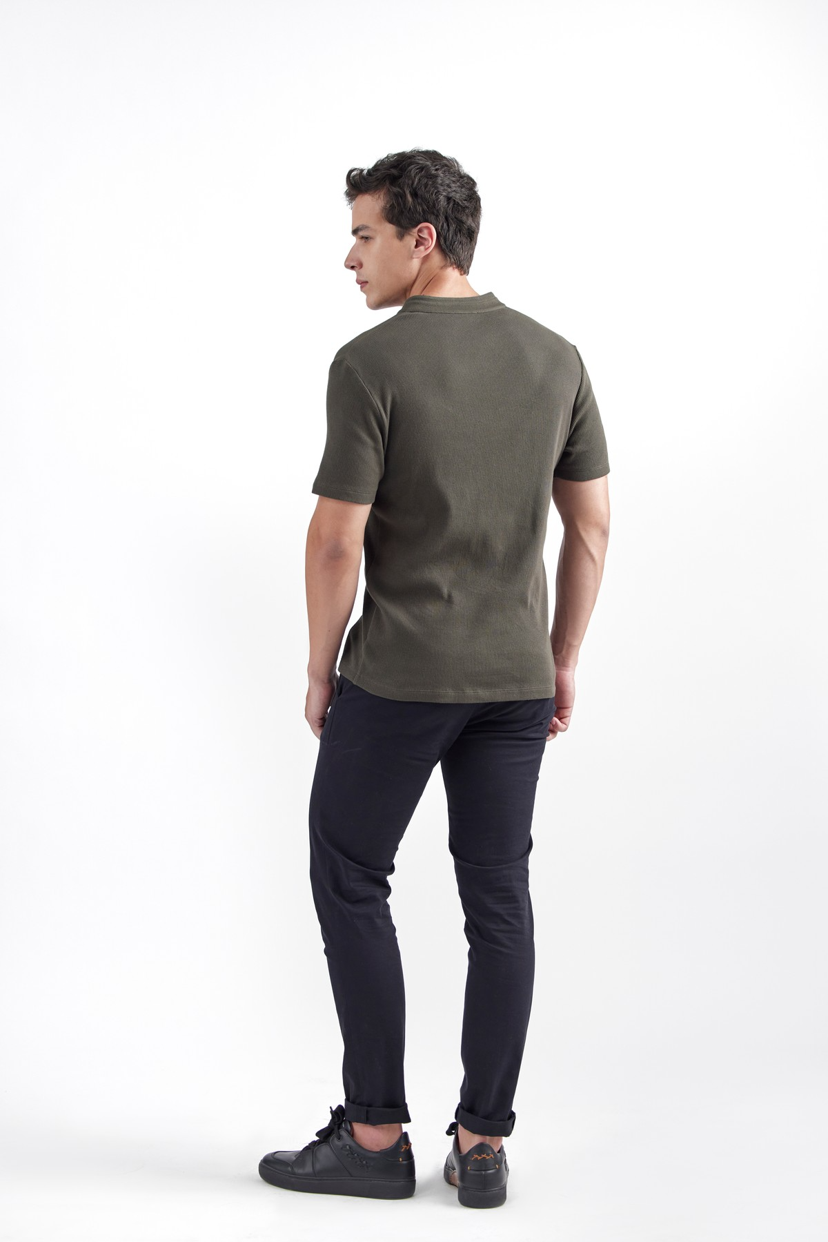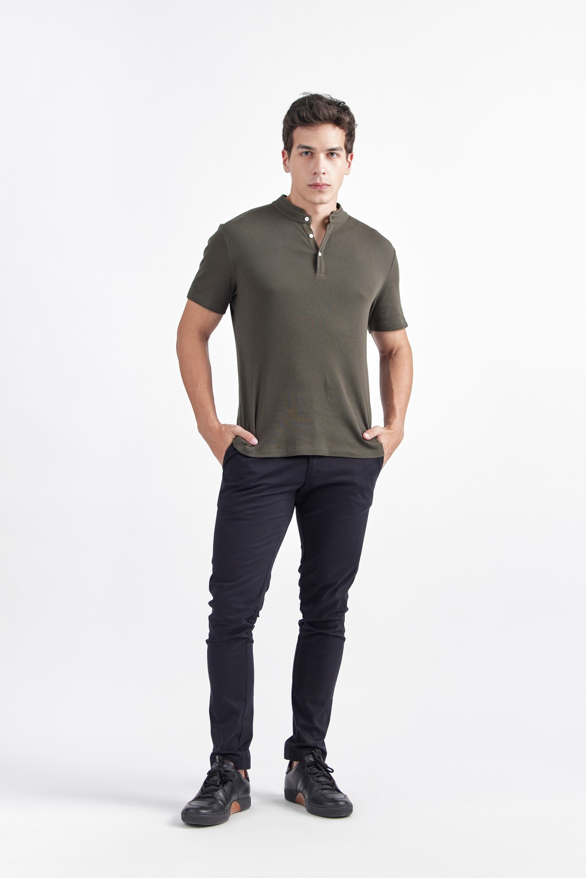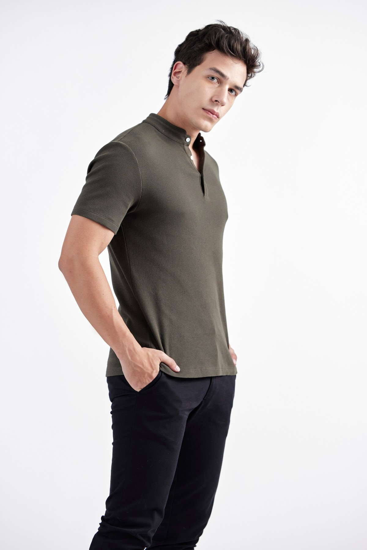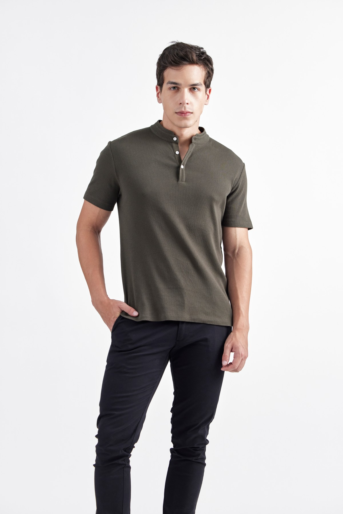 Versatile and essential. Rendered in light weight sustainably sourced premium Italian stretch cotton knitted with elevated striped panels that offers optimum breathability and comfort. WYATT is featured with buttoned up band collar and concealed placket. Relaxed yet close fitting lines to the body through the chest and shoulder add contemporary edge.