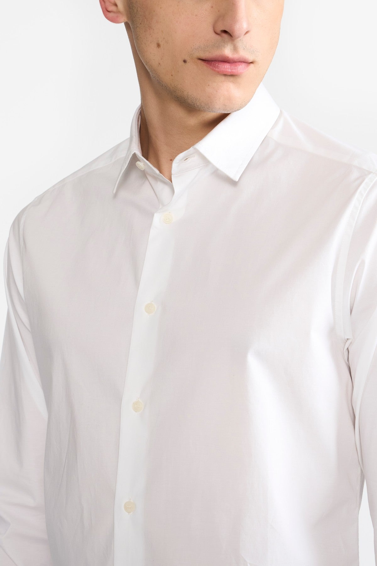 Crafted from a OEKO-TEX®, GOTS and BCI certified eco friendly premium cotton with a hint of stretch for added comfort. The solid color of the fabric accentuates its fine texture and enhances its beautiful finish. Features shirt collar, Perona engraved button closure and full sleeves that pairs perfectly with the spirit of summer. Regular yet close fitting lines to the body through the chest and shoulder add contemporary edge to this iconic essential. This airy, inherently breathable fabric seamlessly bridges casual styles with timeless classics. Our exceptionally breathable premium cotton is produced using environment-friendly dyes and lower environmental impact processes.