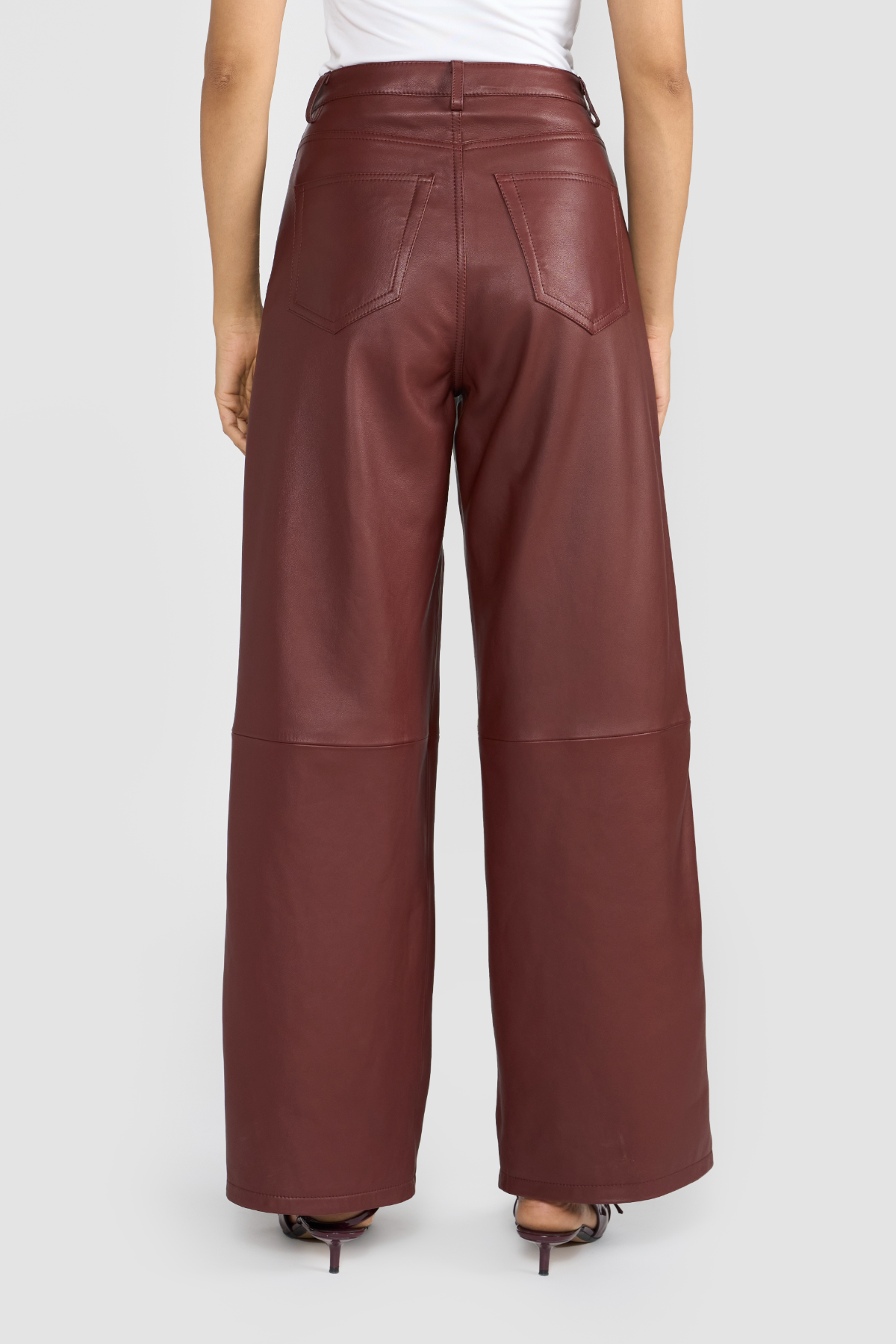 Effortlessly blending comfort with sophistication, these relaxed lamb nappa pants are a modern wardrobe essential. Crafted in LWG-certified soft, supple nappa leather, they feature a pin-tuck detail along the front that adds subtle structure and elongates the silhouette.Designed with extra room for ease of movement and an elasticated waistband for a flexible, comfortable fit, these pants offer a relaxed yet refined shape. A single back pocket adds a functional, minimalist touch.Pair it with our exclusive ZARIA blazer to create a complete, iconic look that transitions seamlessly from day to evening.